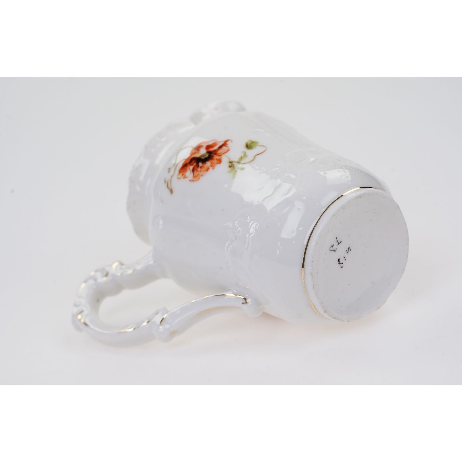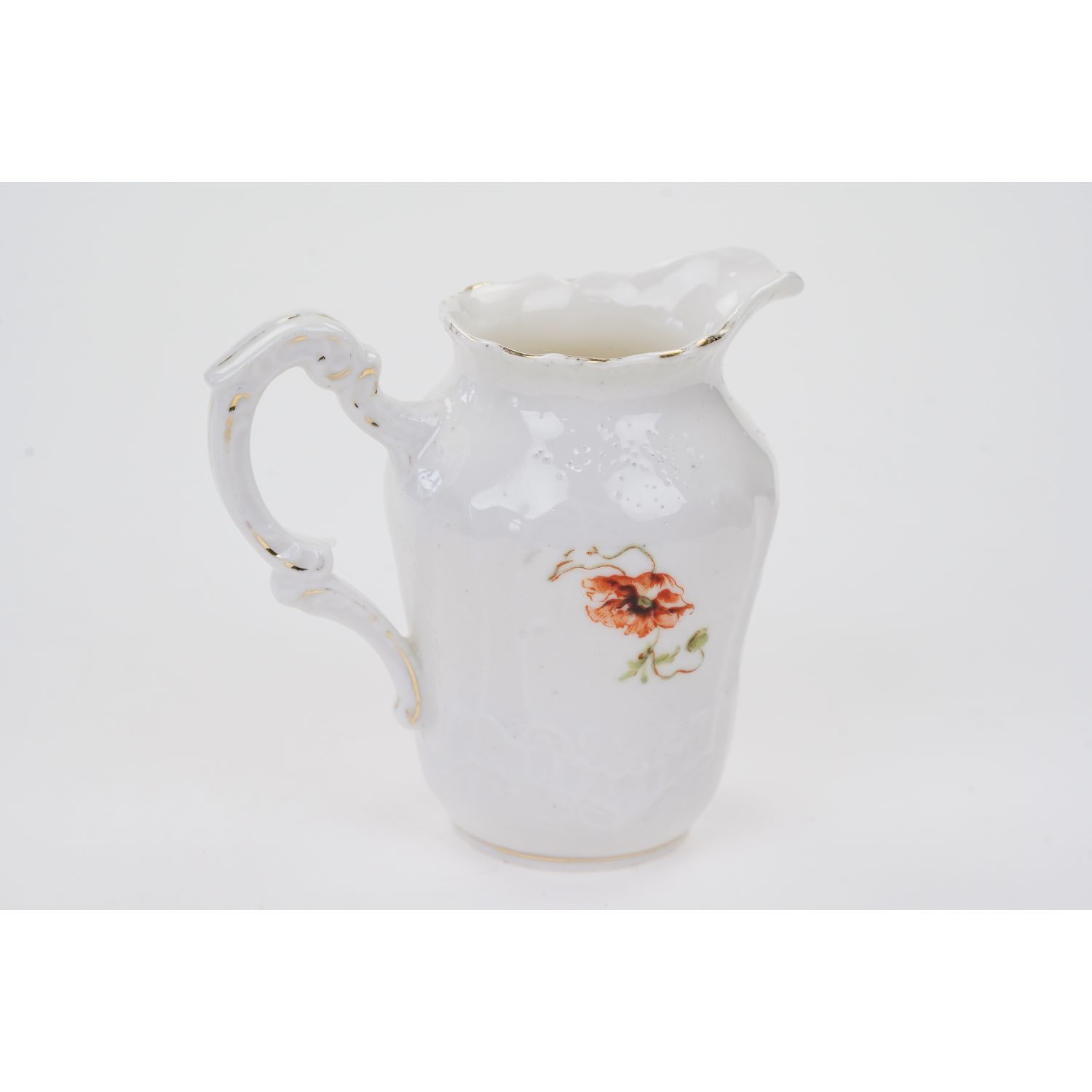 Nie posiada sygnatury. Wykonany z białej porcelany z roślinnymi reliefami. Na mleczniku z jednej strony dekoracja przedstawiająca golaski, cherubinki. Z drugiej strony mak. Kontury kiedyś złocone, dzisiaj złocenia w śladowej ilości.
