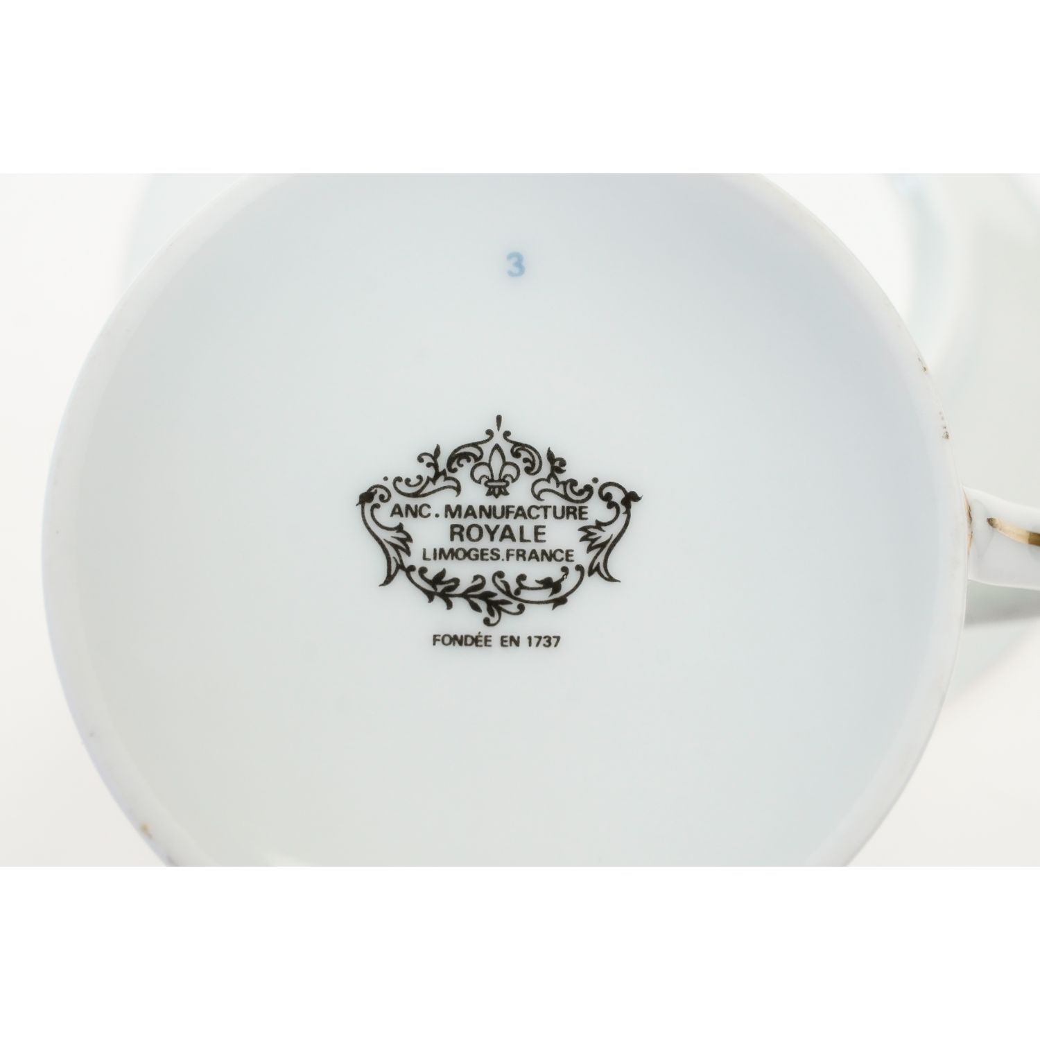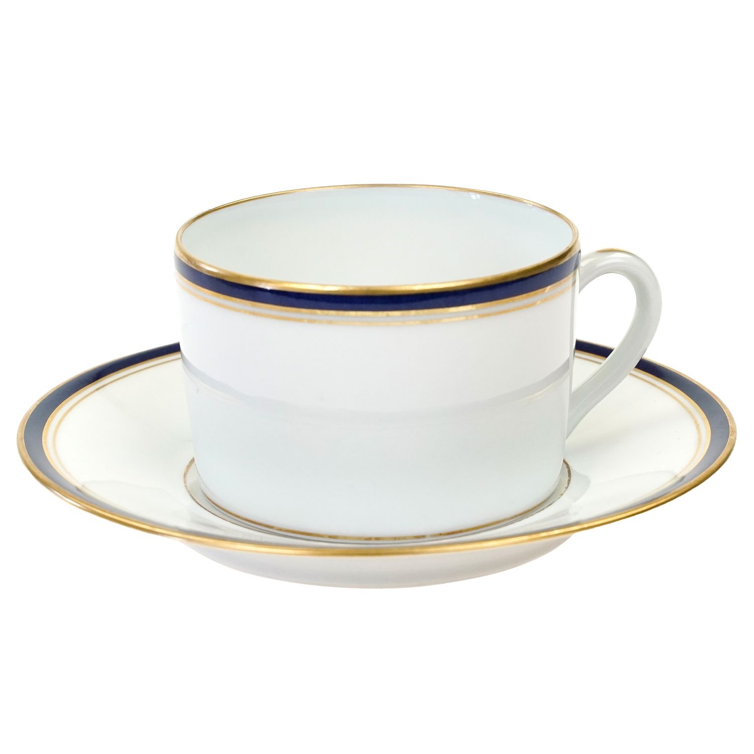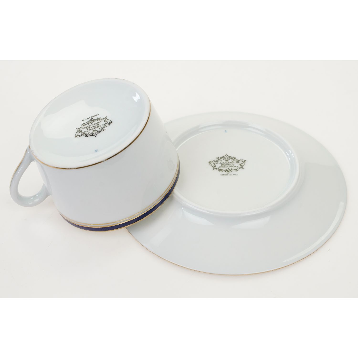 ANC. MANUFACTURE ROYALE LIMOGES FILIŻANKA ZE SPODKIEM Z KOBALTOWO-ZŁOTYM SZLACZKIEM