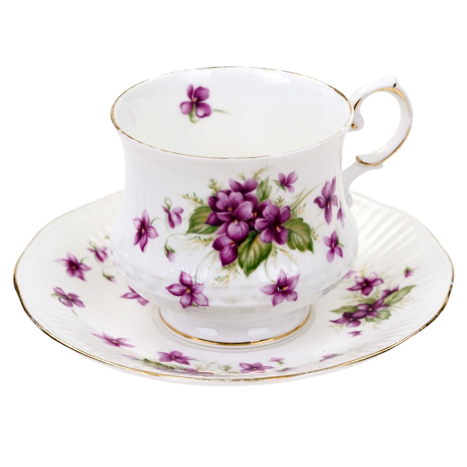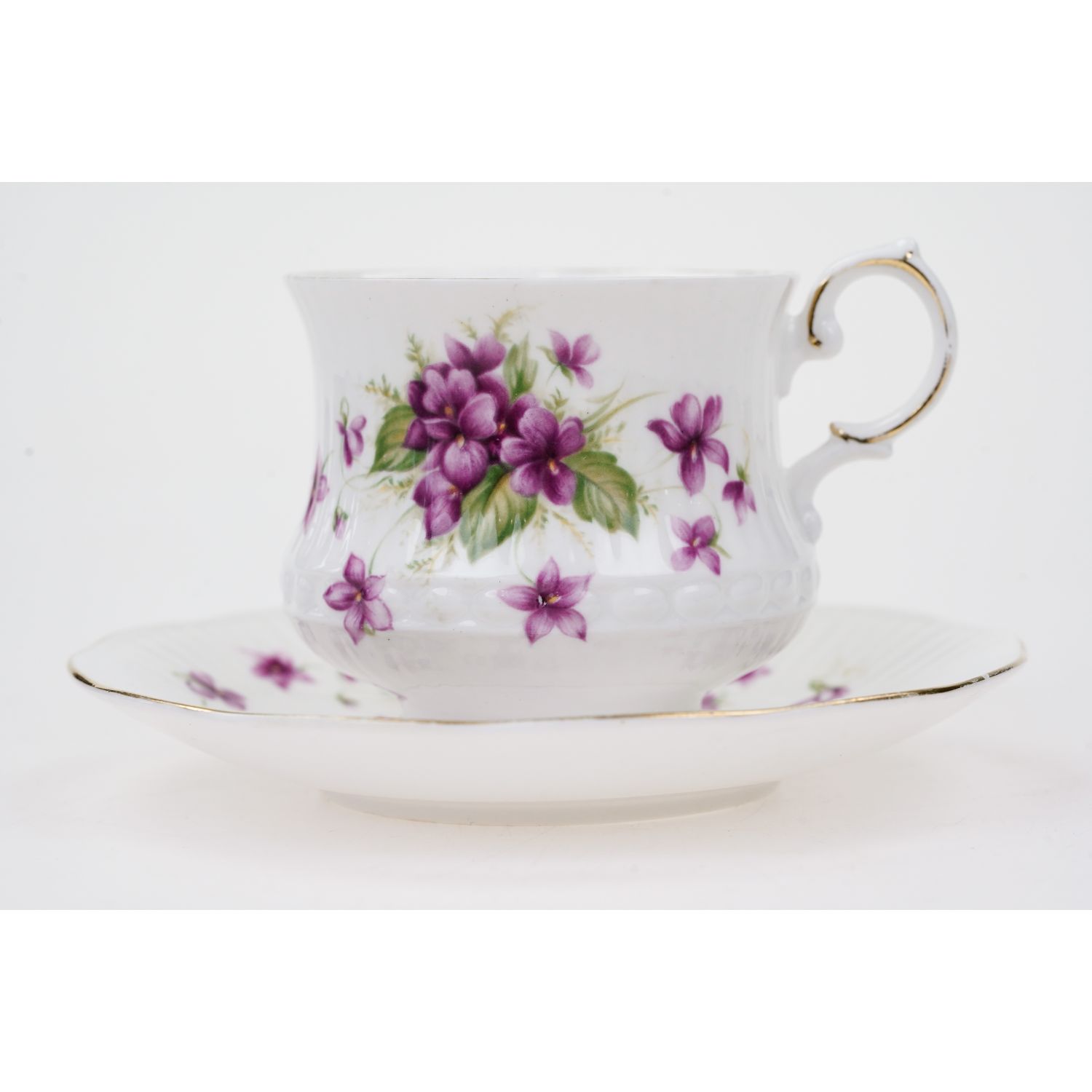 ANGLIA ROSINA VIOLETS FILIŻANKA ZE SPODKIEM FIOŁECZKI