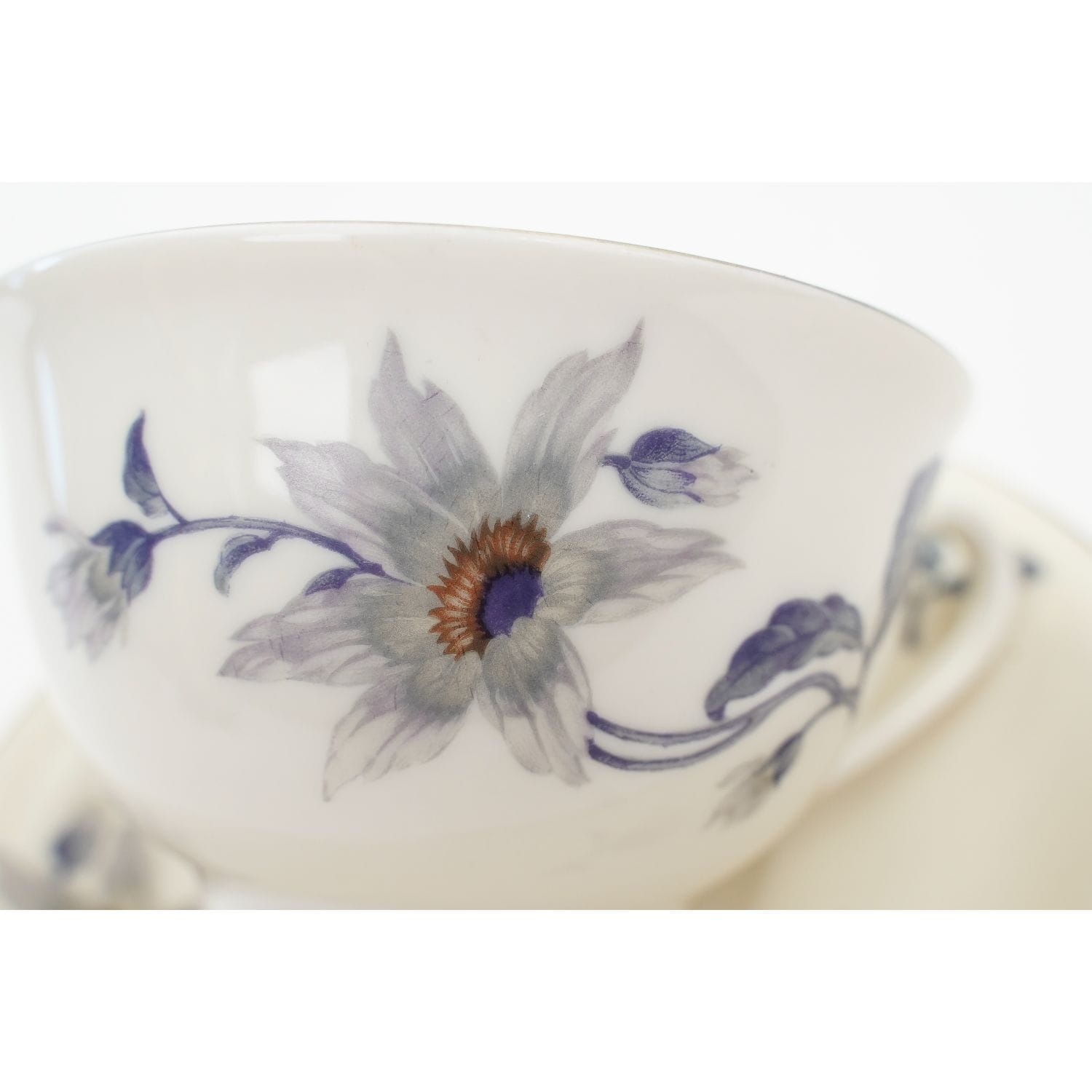 ARZBERG KOŚĆ SŁONIOWA I SZARO-NIEBIESKIE KWIATY FILIŻANKA ZE SPODKIEM
