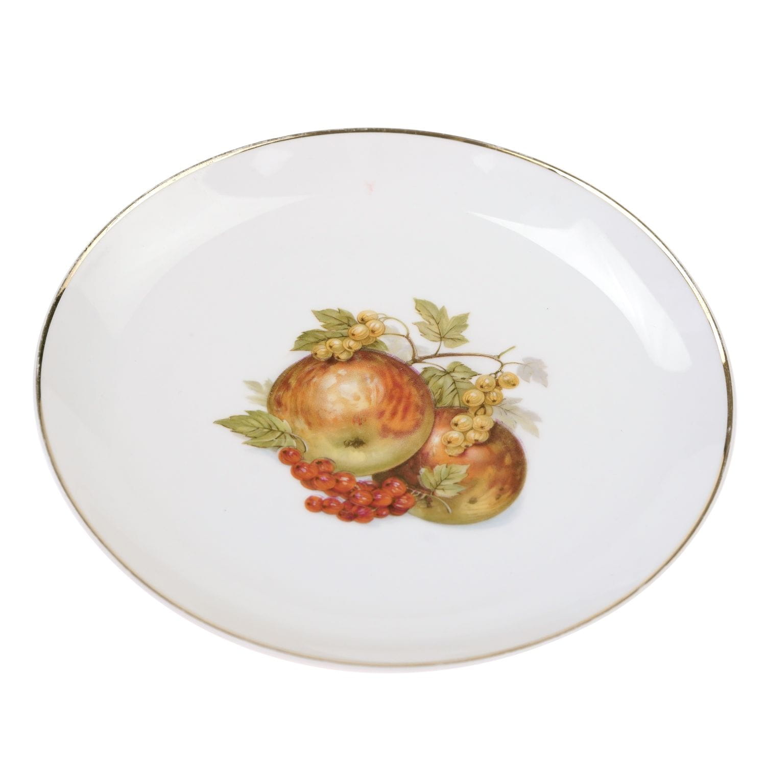 Pochodzi z Bawarii z Arzberg z Porzellanfabrik Arzberg AG. Sygnowana znakiem stosowanym od 1947 roku. Porcelana w odcieniu lekko złamanej bieli o bardzo prostej, ale eleganckiej formie. Udekorowana na dnie dużą, wyrazistą kalkomanią przedstawiającą barwny, bukiety soczystych owoców; jabłka i porzeczki. Całości dopełnia złota konturówka na górnej krawędzi.