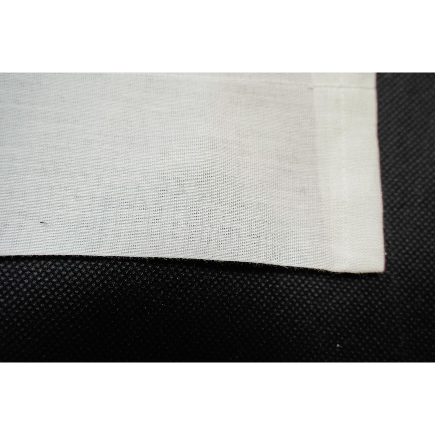 Wykonana z delikatnej, dość prześwitującej bawełny w odcieniu lekko złamanej bieli. Udekorowana szeroką bawełnianą pasmanteryjną koronką. U góry uszyty tunelik umożliwiający zawieszenie na drążku. Nad tunelikiem jest 5,5 cm grzywka, która po namarszczeniu układa się w fikuśną falbankę.