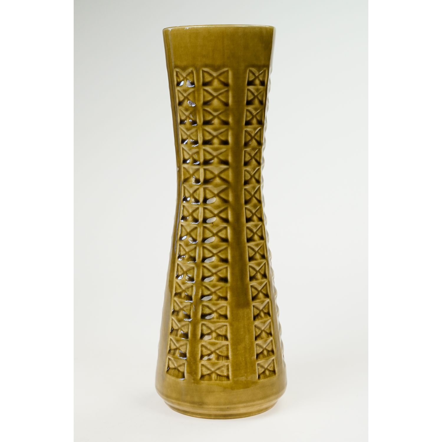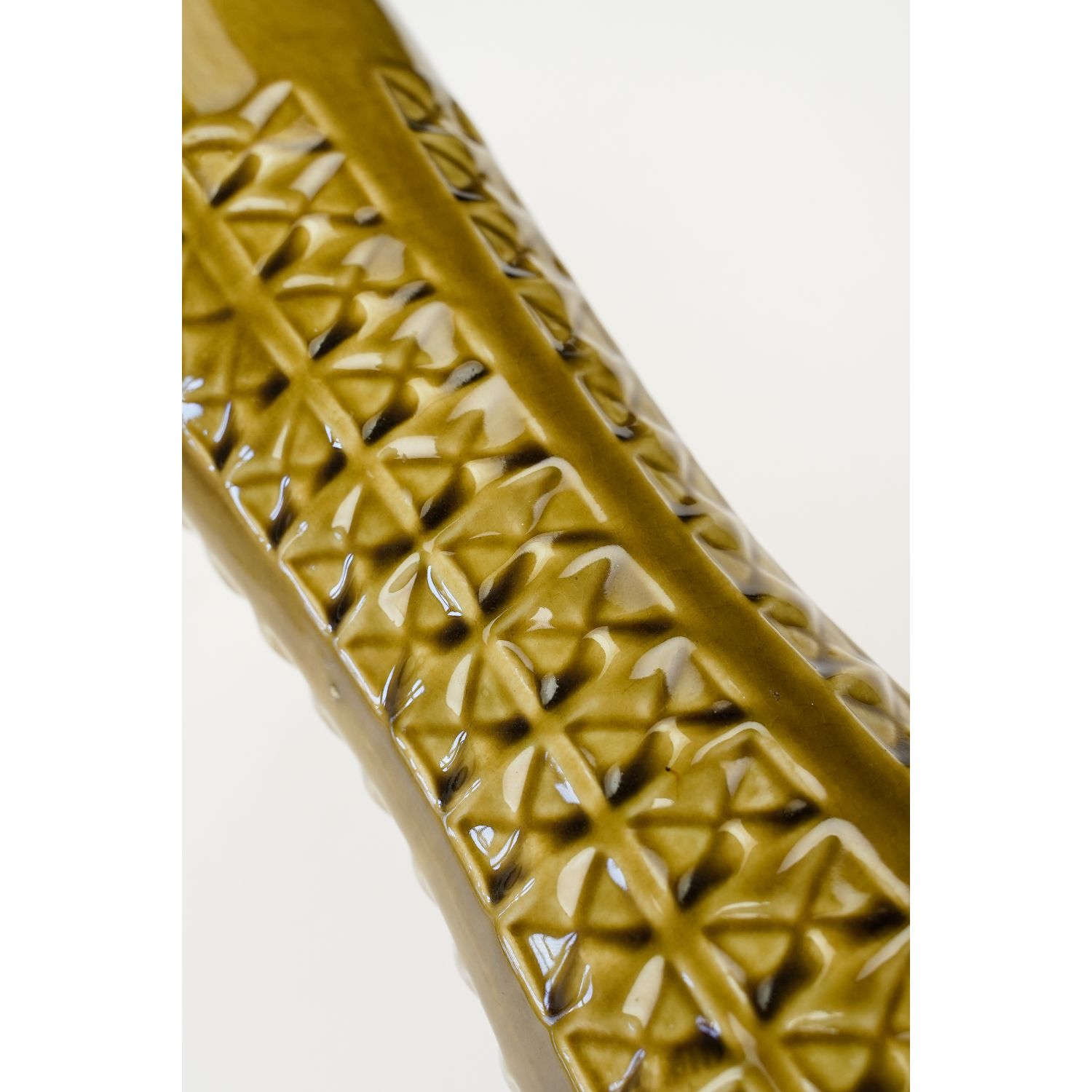 BAY KERAMIK OCHROWY WAZON Z GEOMETRYCZNY RELIEFEM