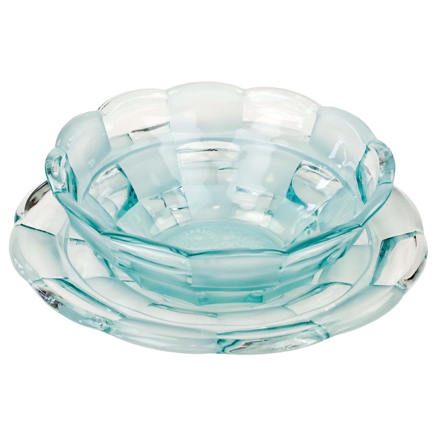 Bardzo ładna, spora misa i patera ze szkła w kolorze błękitnym.