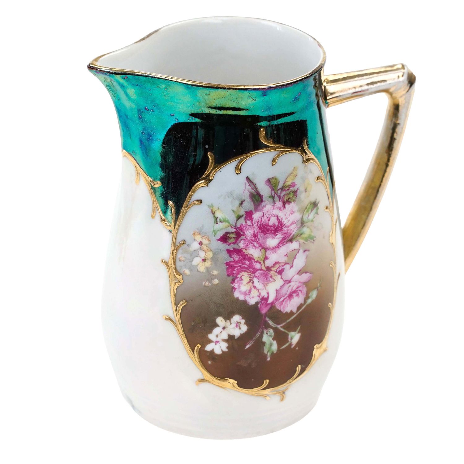 Jeżeli fabryki należące do stowarzyszenia nie posiadają własnej marki, opatrują swoje wyroby powyższym symbolem i odpowiadającym mu numerem poniżej. Okres używania znaczka to mniej więcej początek 1908 roku do około połowy 1912 roku. Pod sygnaturą cyfra 75 = Zwickauer Porzellanfabrik, Zwickau. Porcelana biała, grubsza opalizowaną powłoką i zielonkawą malaturą. Od frontu medalion z kwiatami w złotym obramowaniu. Kontury też złocone. Ucho w pełni złocone, ale trochę już przetarte.