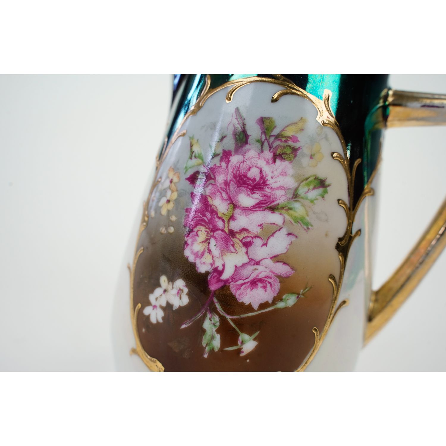 Nie jest sygnowany, ale obok oferuję dzbanek do kawy, który jest sygnowany znakiem Stowarzyszenia Niemieckich Fabryk Porcelany w celu podniesienia przemysłu porcelanowego (Vereinigung deutscher Porzellan-Fabrikanten zur Hebung der Porzellan-Industrie GmbH.), z siedzibą w Berlinie, działającego w okresie od 1900 do 1912 roku.