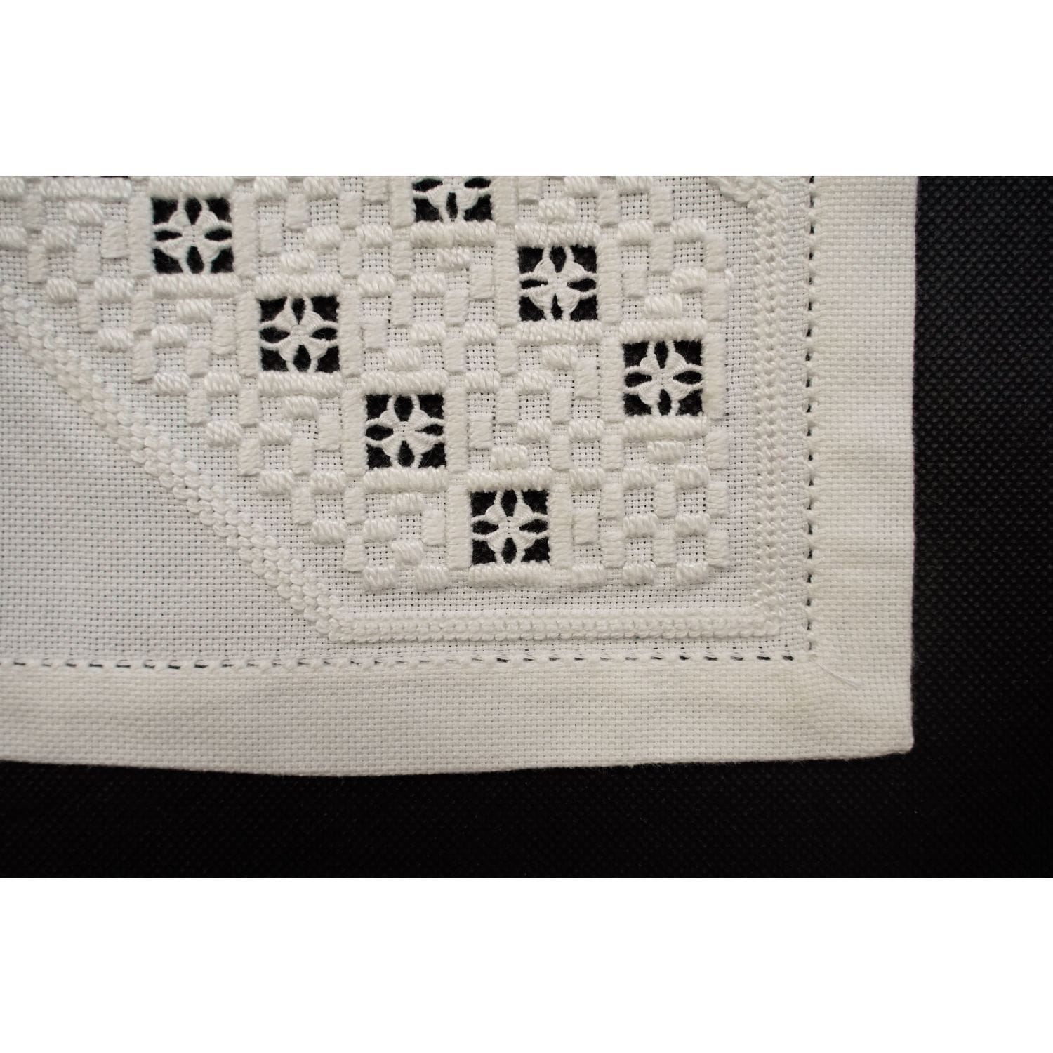 BIAŁY OBRUS Z HAFTEM TYPU HARDANGER 74 x 71 cm