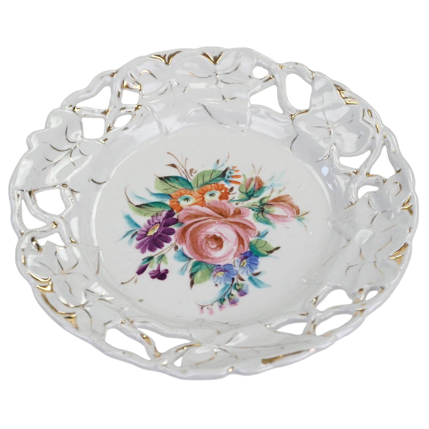 BIEDERMEIER AŻUROWA PATERKA RĘCZNIE MALOWANA BUKIET KWIATÓW