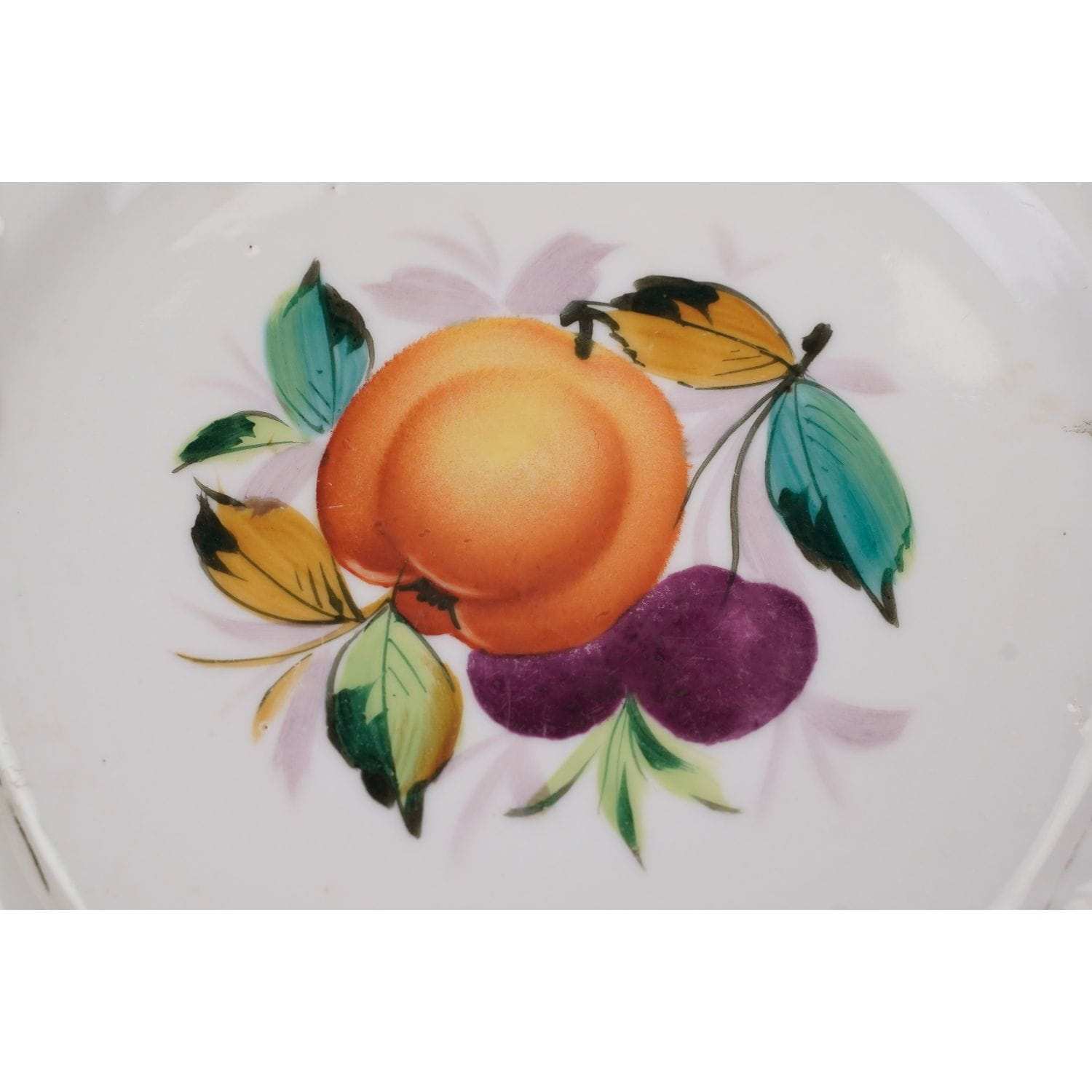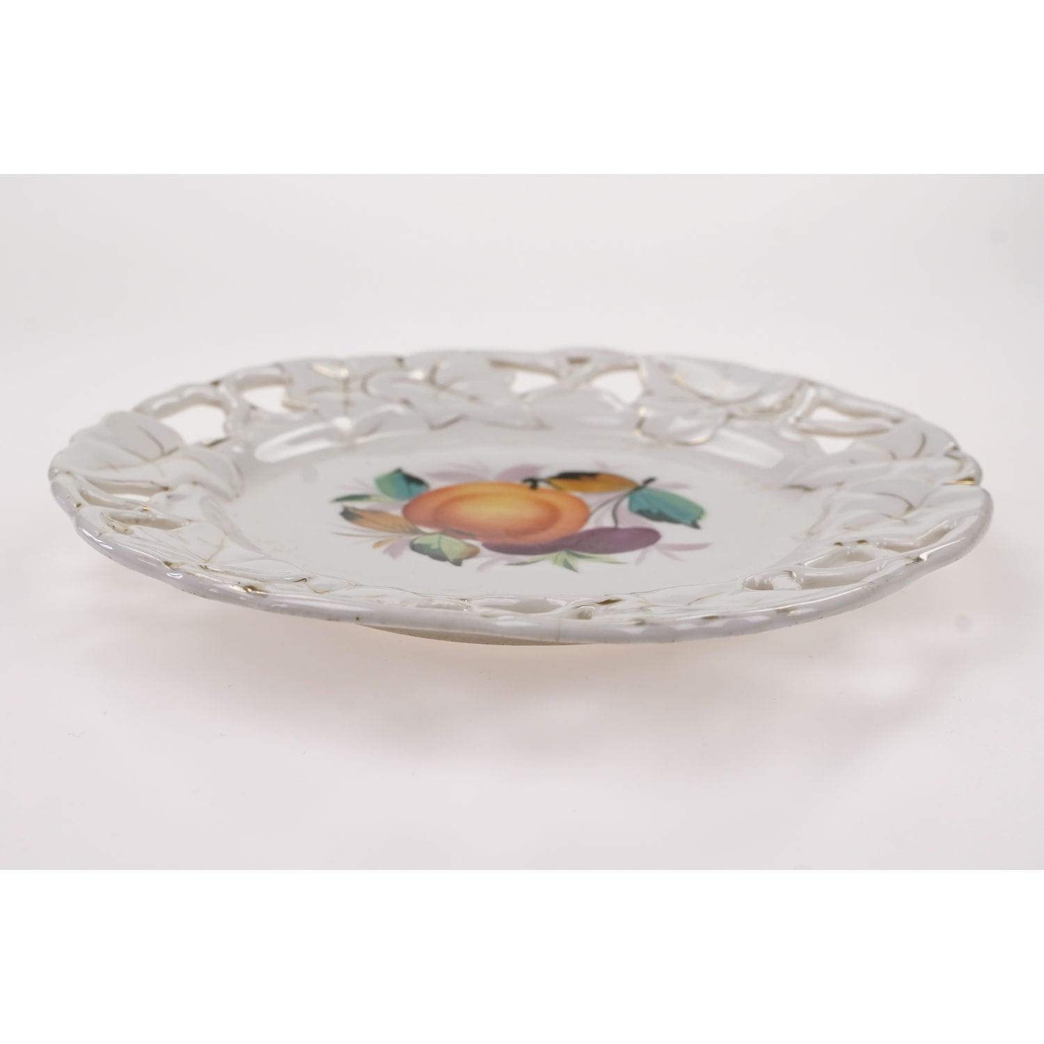 BIEDERMEIER OWOCE RĘCZNIE MALOWANY AŻUROWY TALERZ ZABYTEK JABŁKO I WIŚNIE