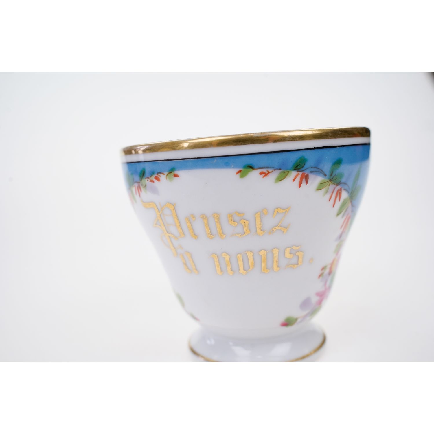 BIEDERMEIER RĘCZNIE MALOWANA DUŻA FILIŻANKA Z FRANCUSKIM NAPISEM