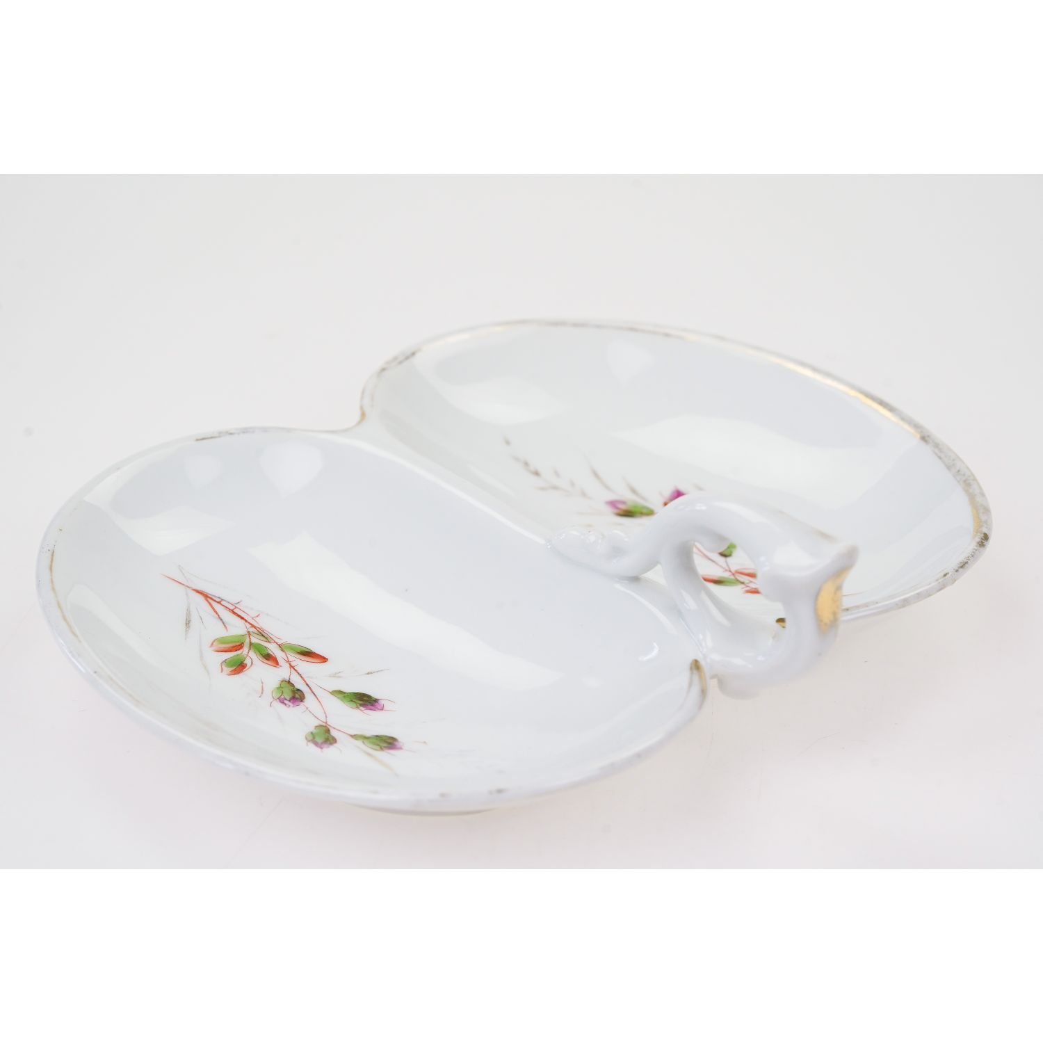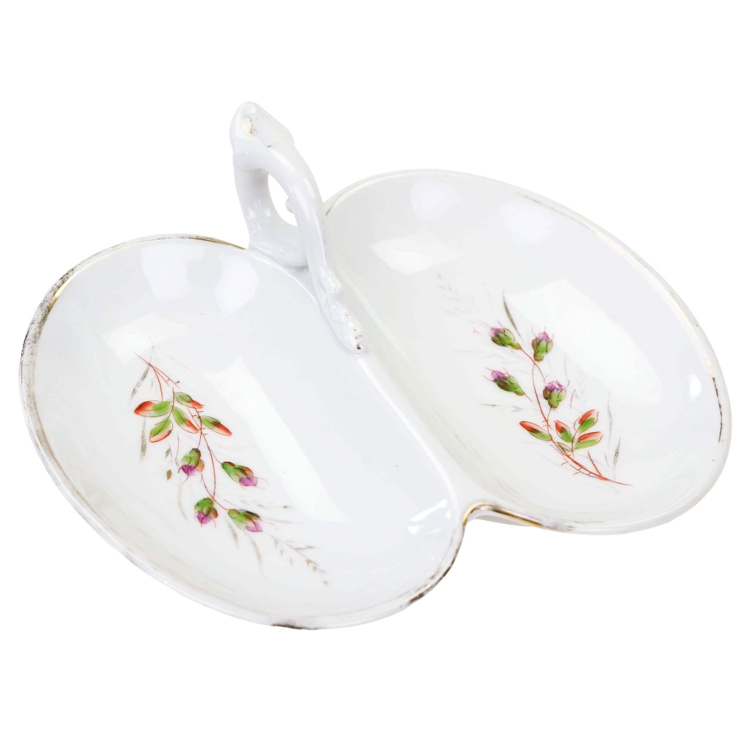 Świetna, antyczna dzielona patera, kabaret z uchwytem ręcznie malowany.