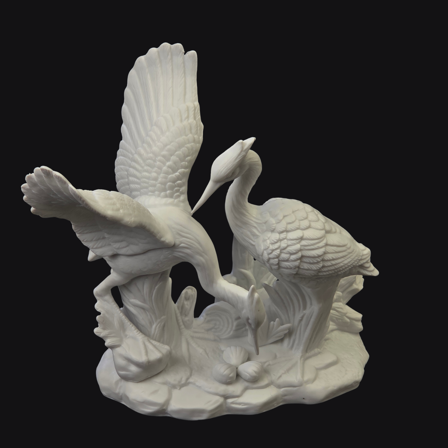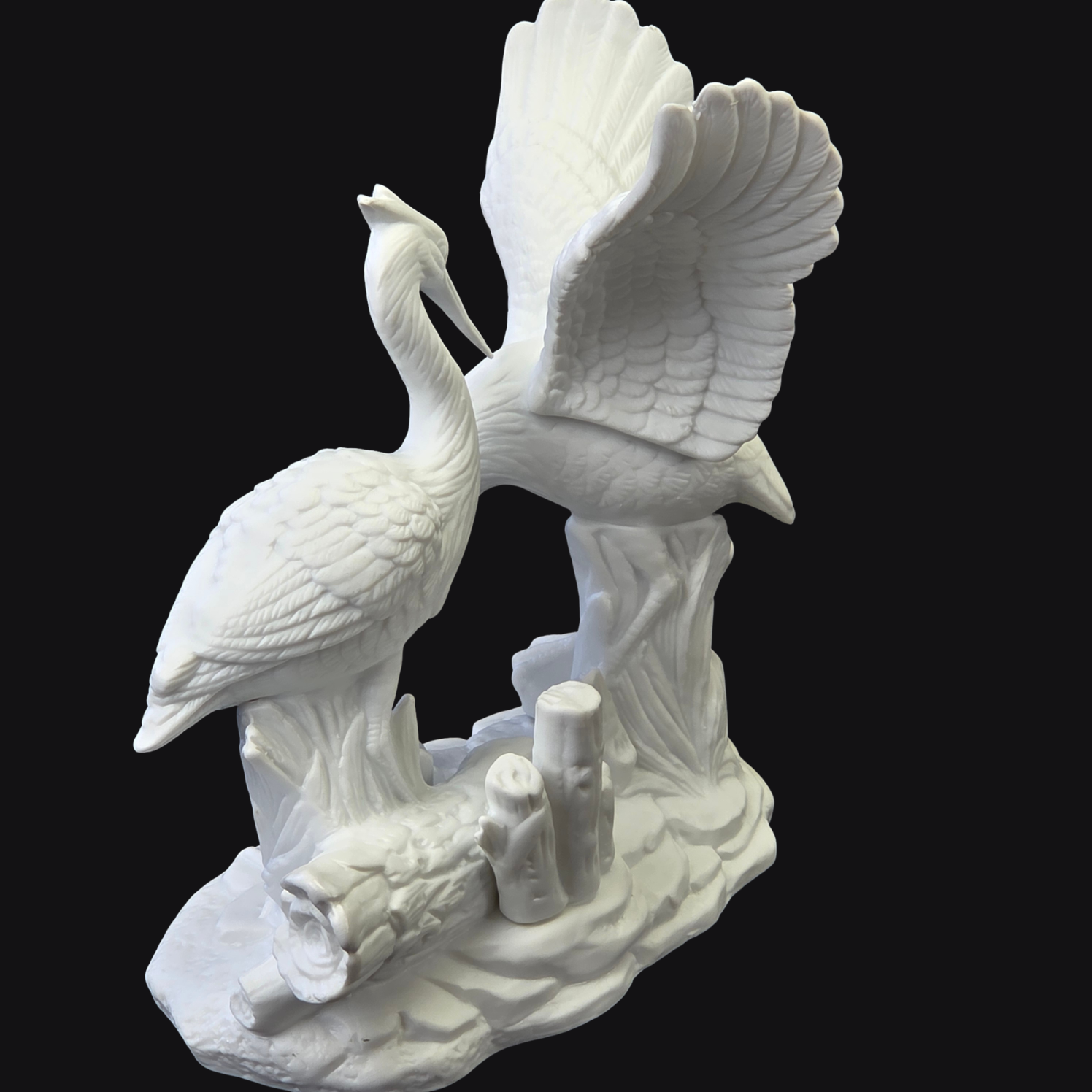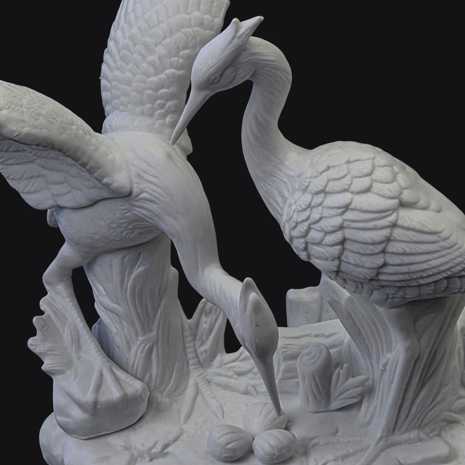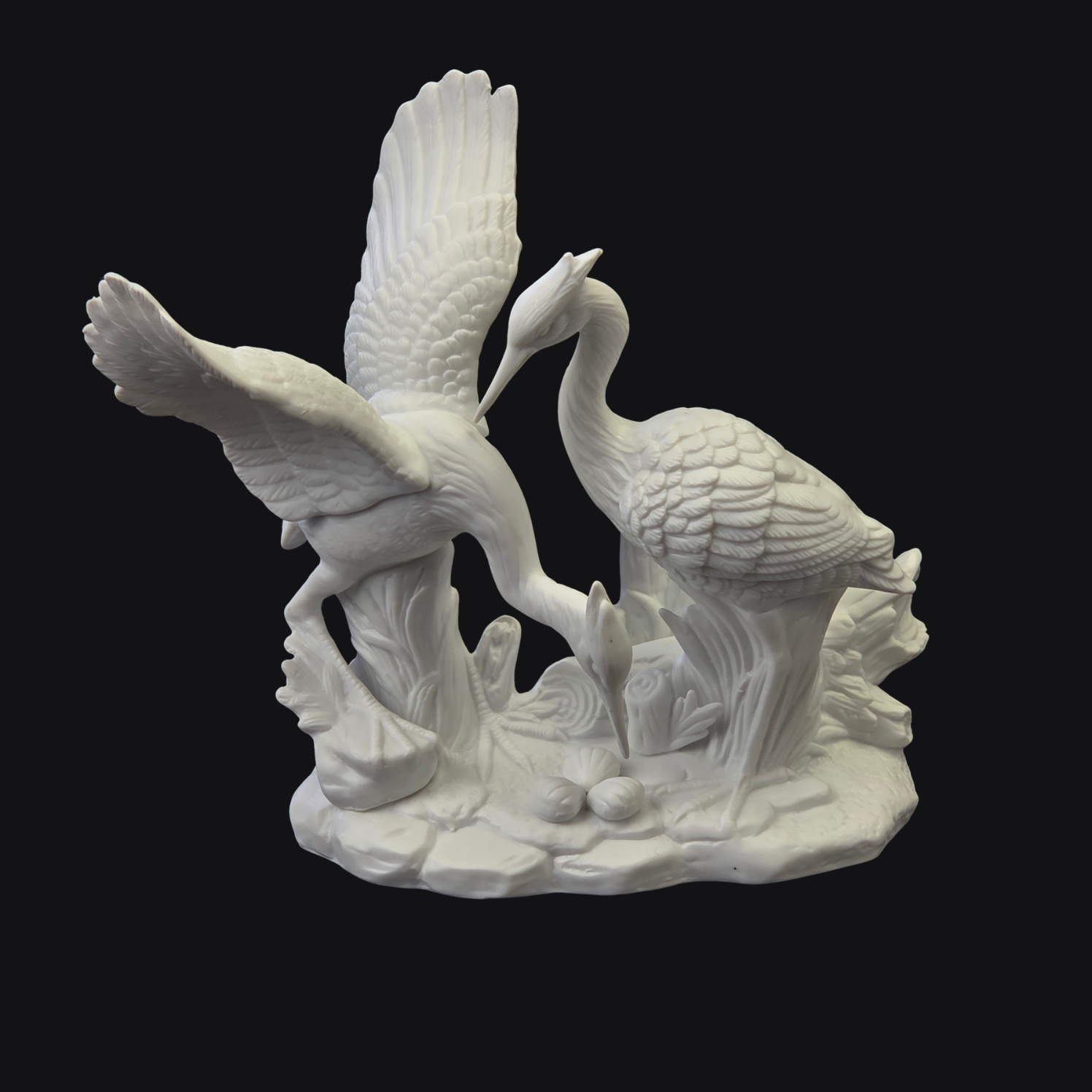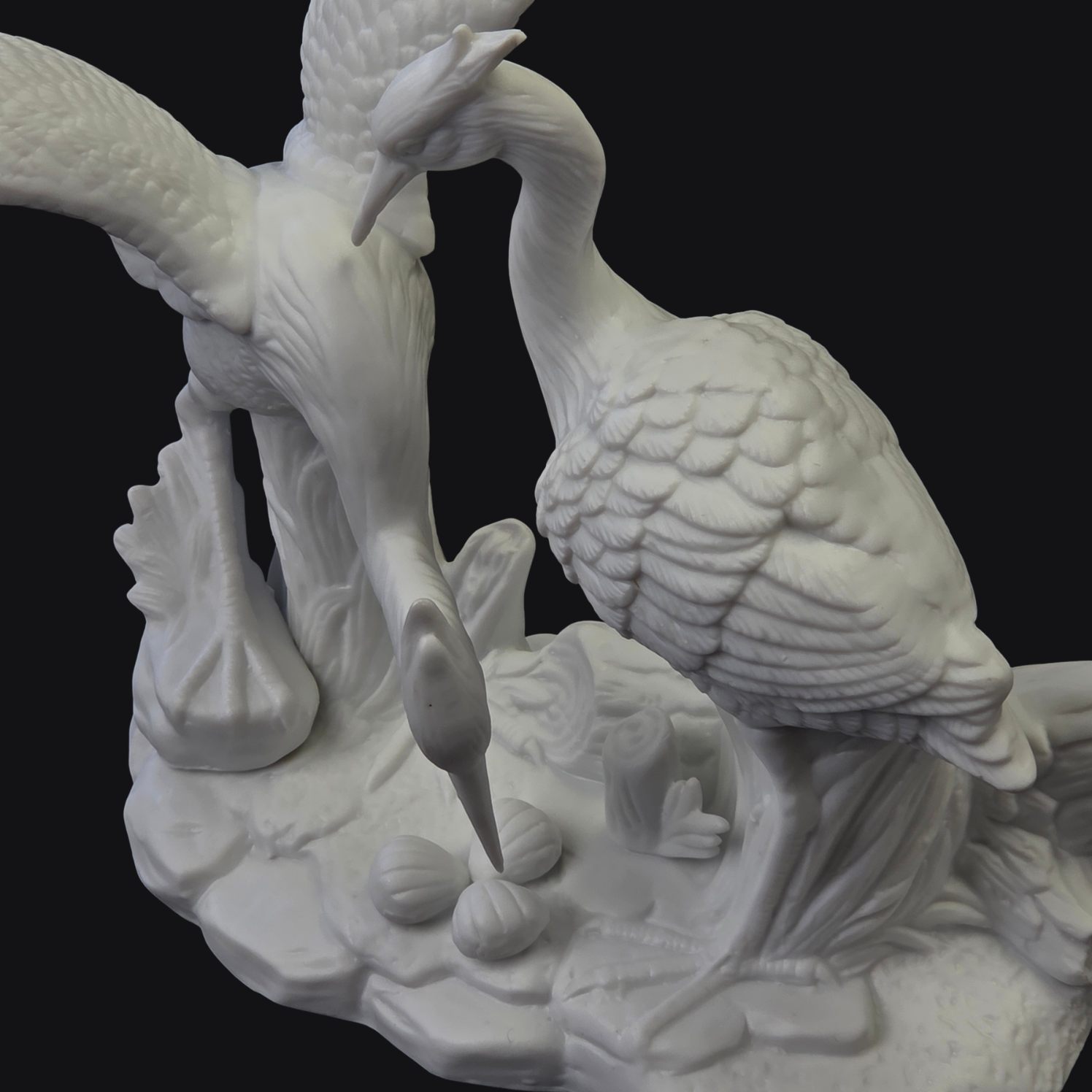 Piękna, biskwitowa figura przedstawiająca parę żurawi.