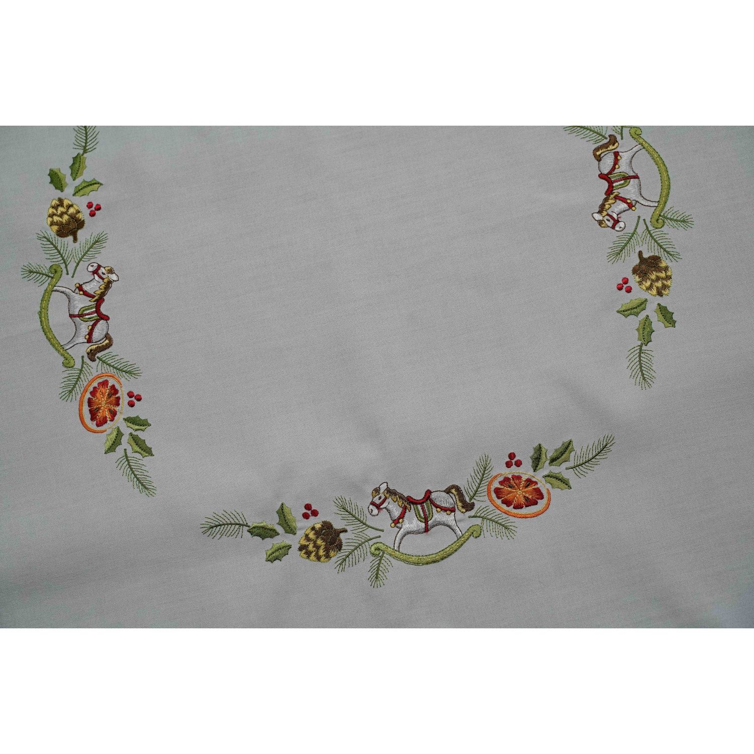 BOŻE NARODZENIE BIAŁY OBRUS Z BARWNYM HAFTEM O MOTYWIE ŚWIĄTECZNYM 84 X 84 CM