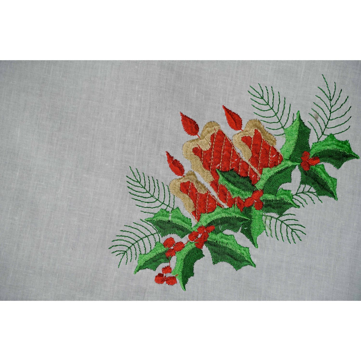 Bardzo przyjemny obrus dekorowany motywami świątecznymi w tradycyjnych barwach.