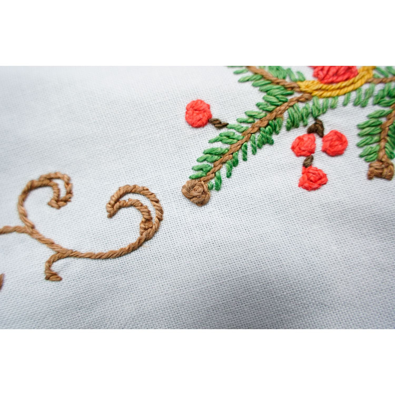 Bardzo ładny, wyszywany ręcznie obrus z motywami świątecznymi.