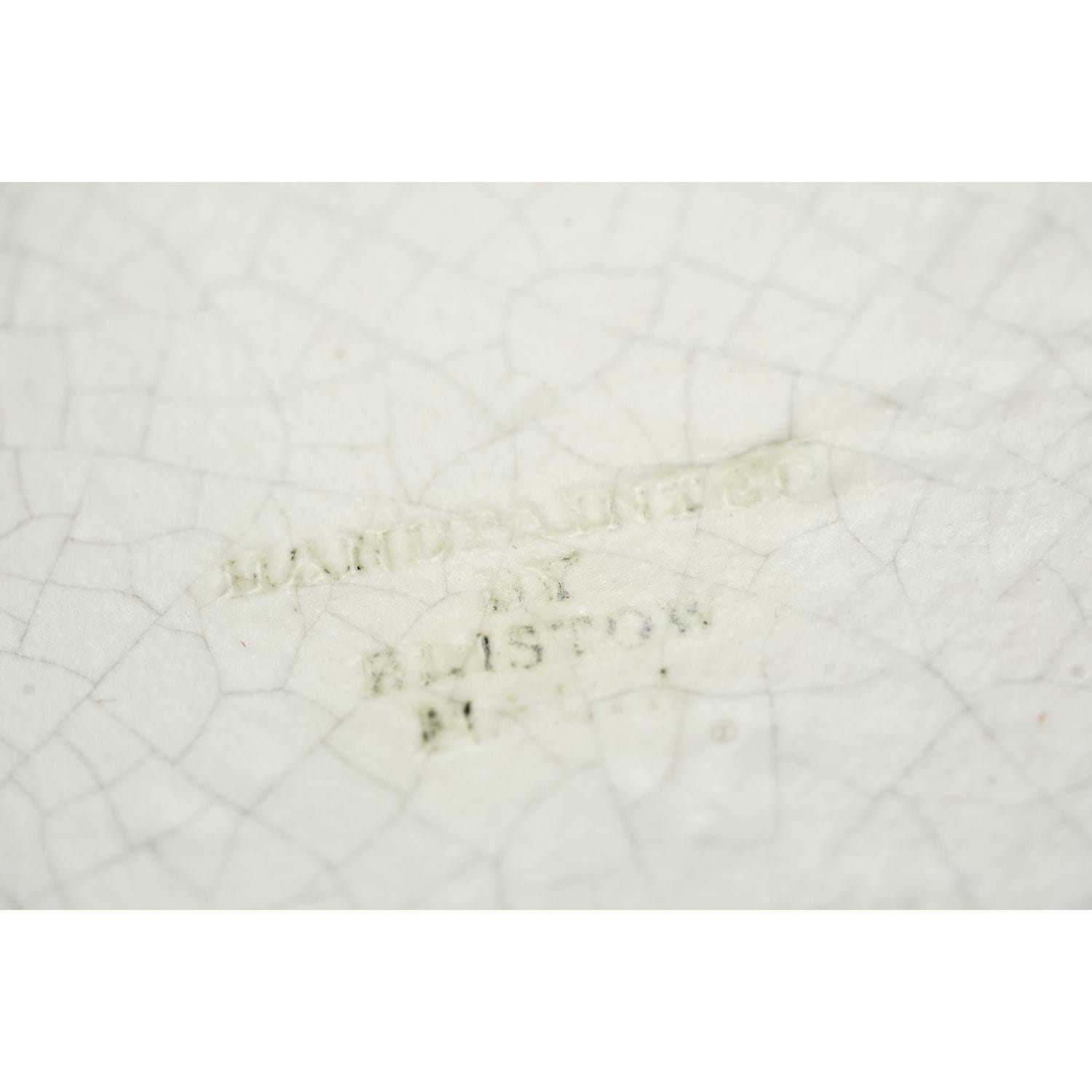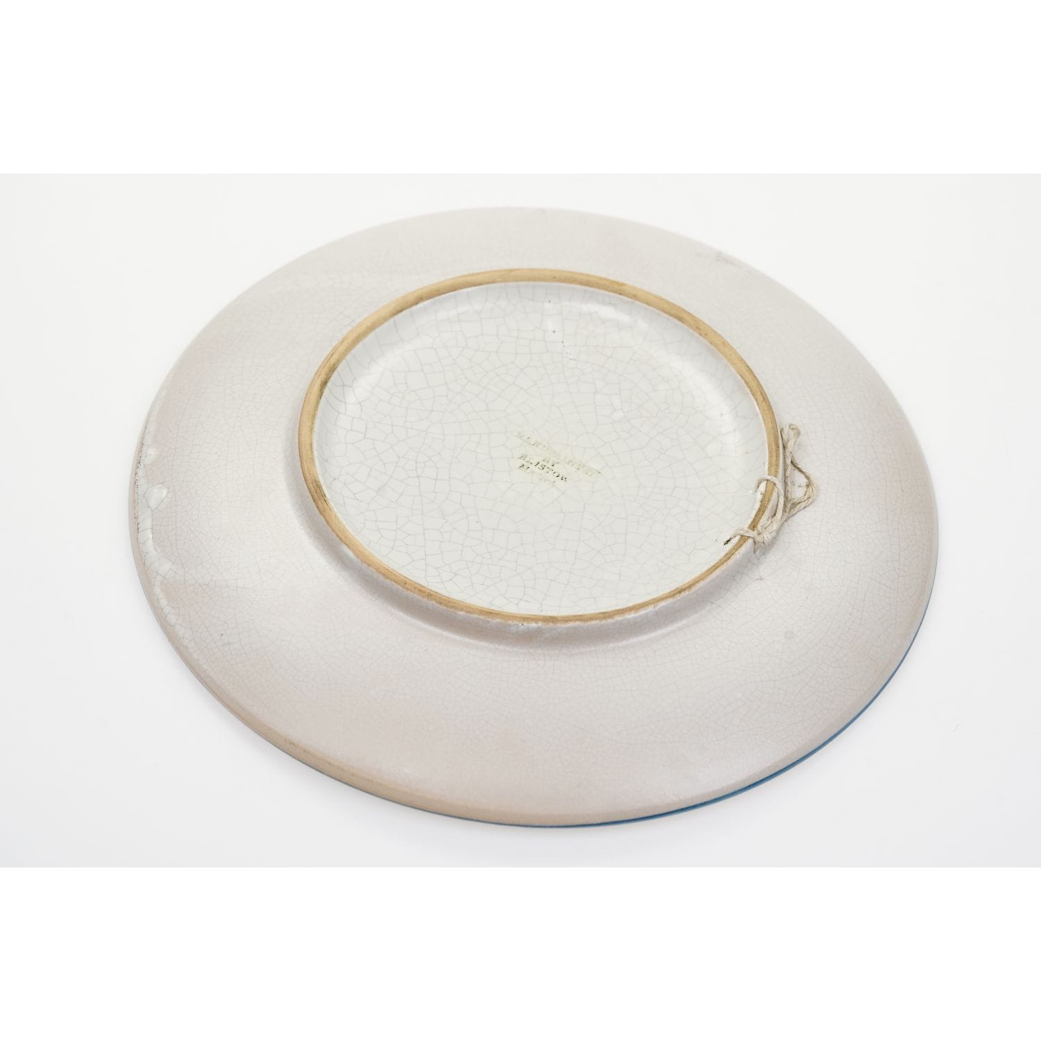 Pochodzi z Malty z Bristow Potteries Ltd. Od spodu sygnowana. Całość w szaro-kremowym kolorze, lekko szkliwiona z siateczką "spękań" imitującą wiekową krakelurę. Na tym tle na lustrze kiść winogron. Na kołnierzu zielone, nieregularne dekoracje. Fabrycznie przystosowana do zawieszenia na ścianie.