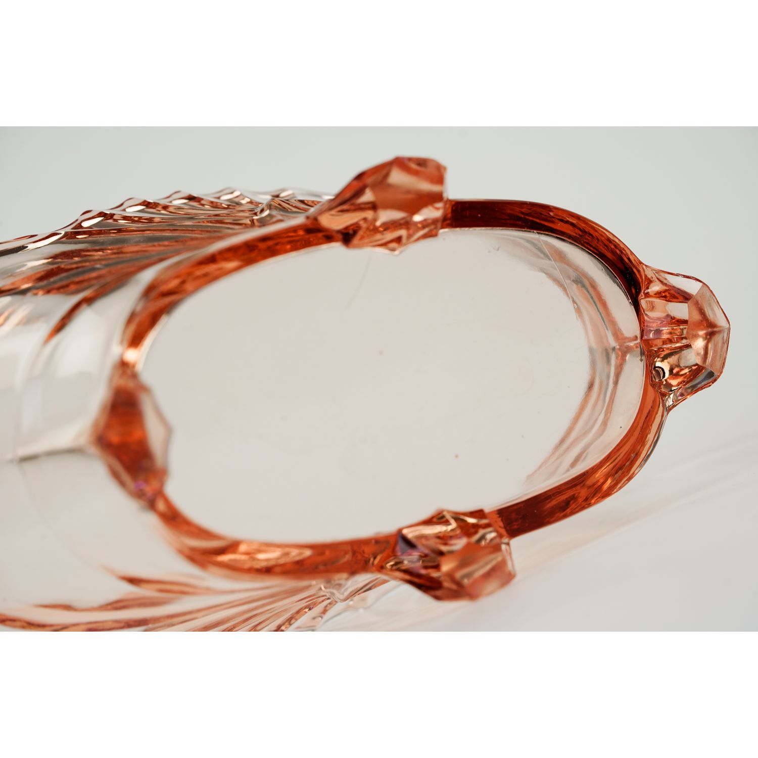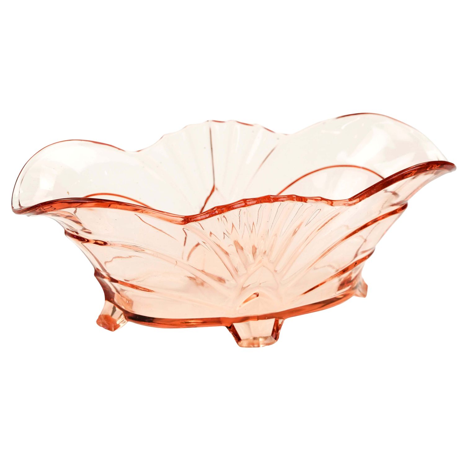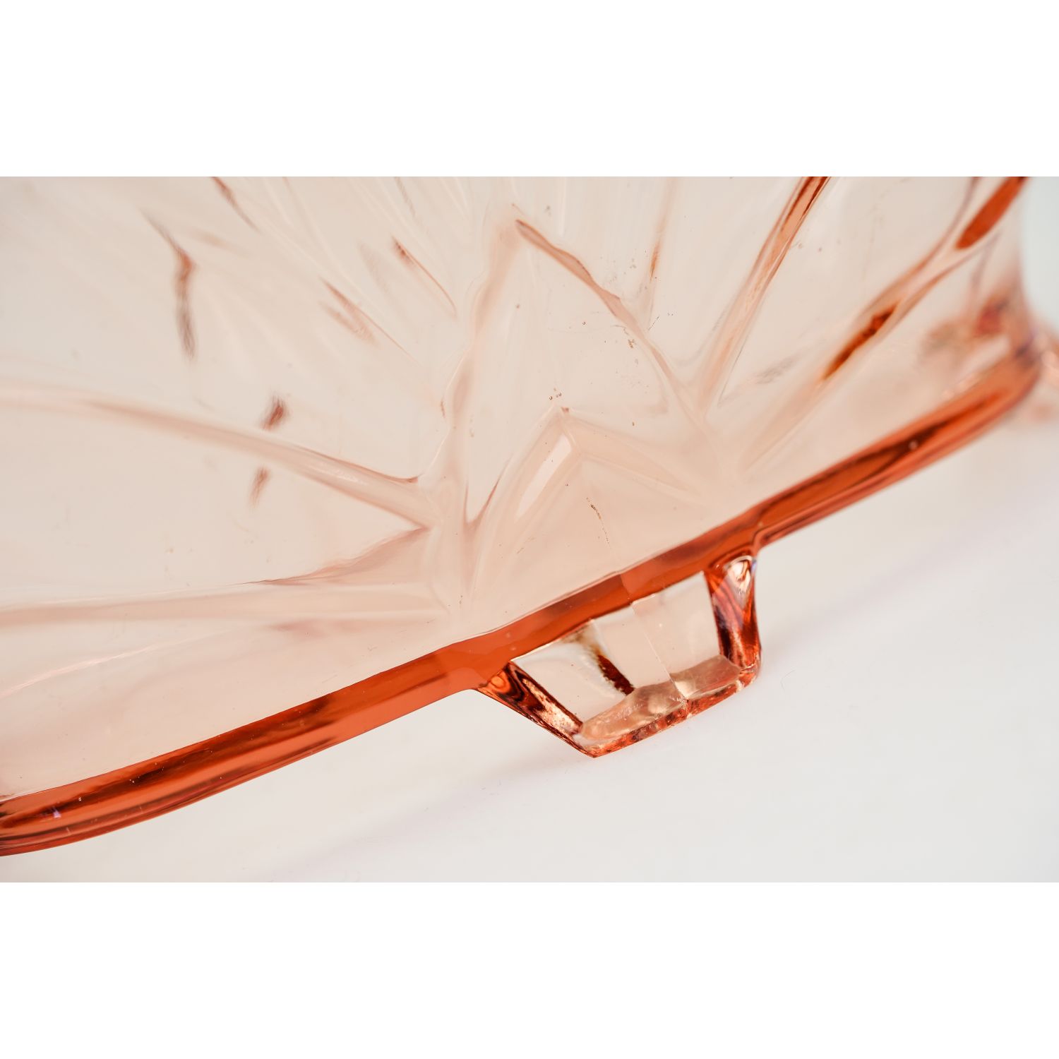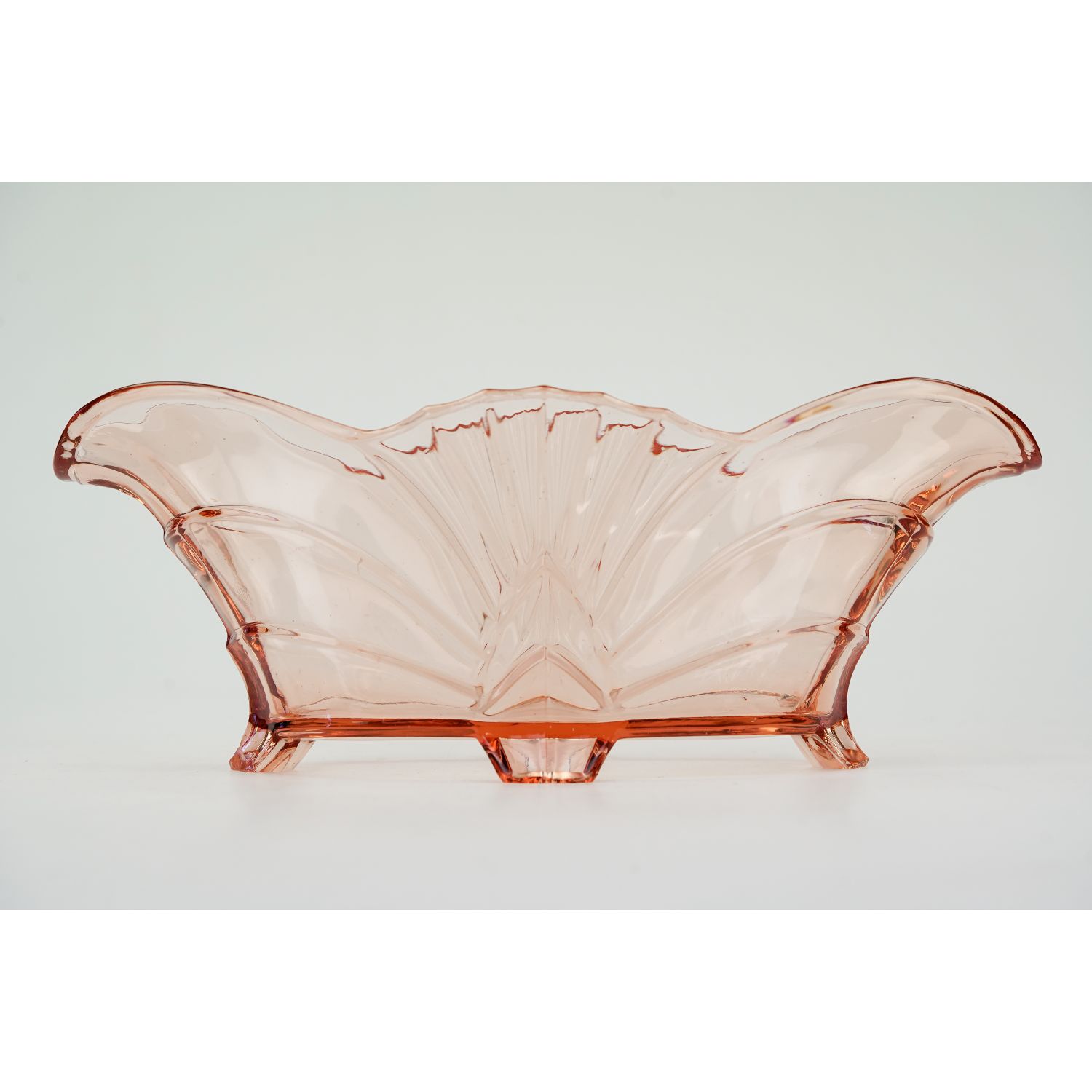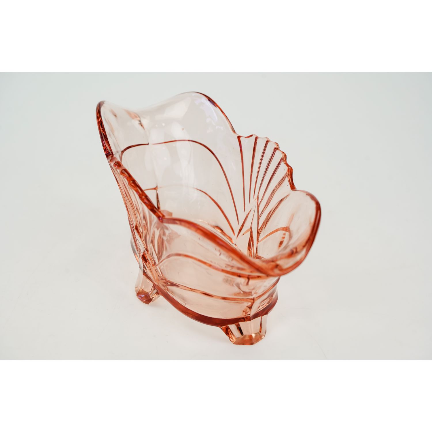 Pochodzi z Brockwitz, katalogowy numer z 1936 roku, to 9072. Szkło prasowane, barwione w masie. Piękna forma, osadzona na czterech nóżkach.