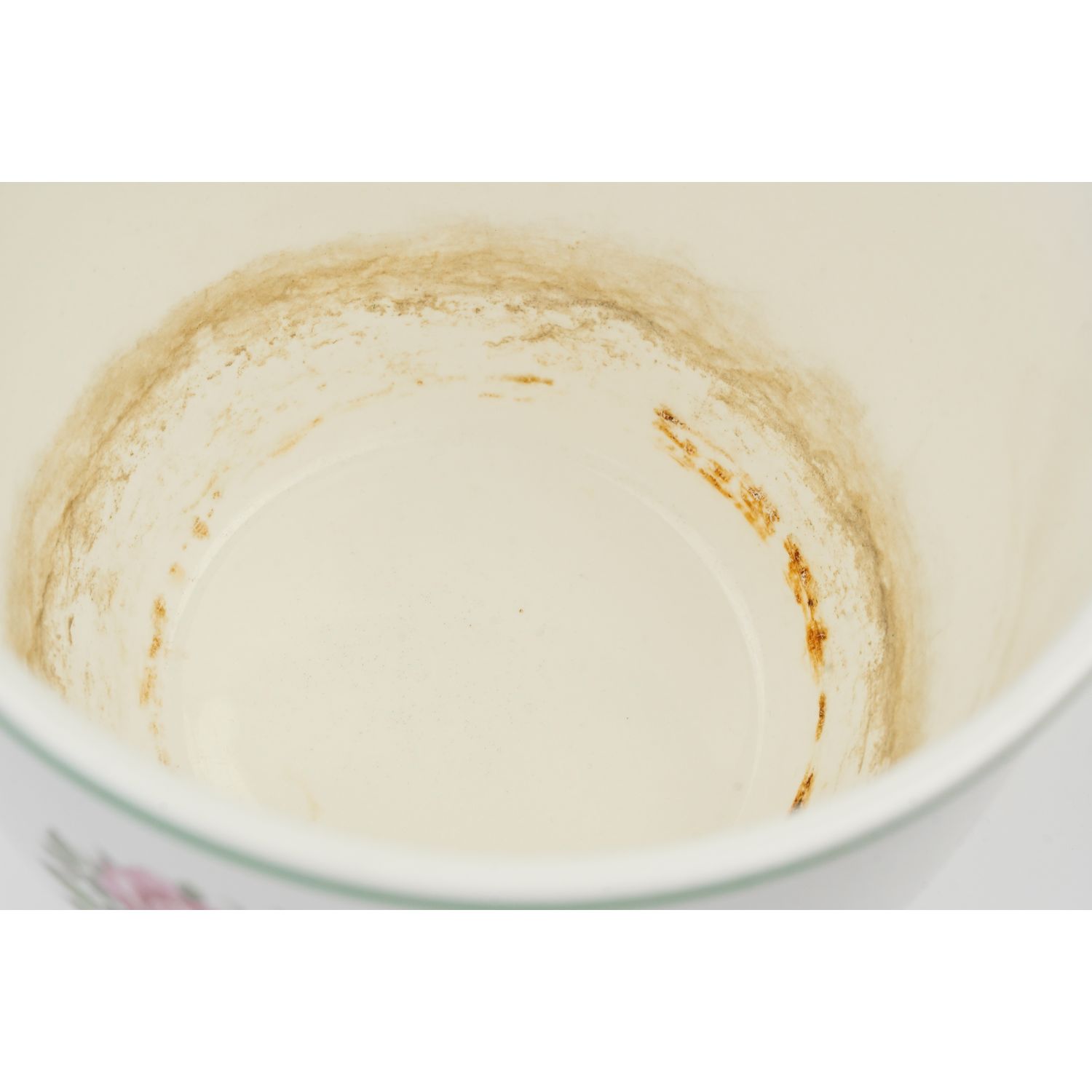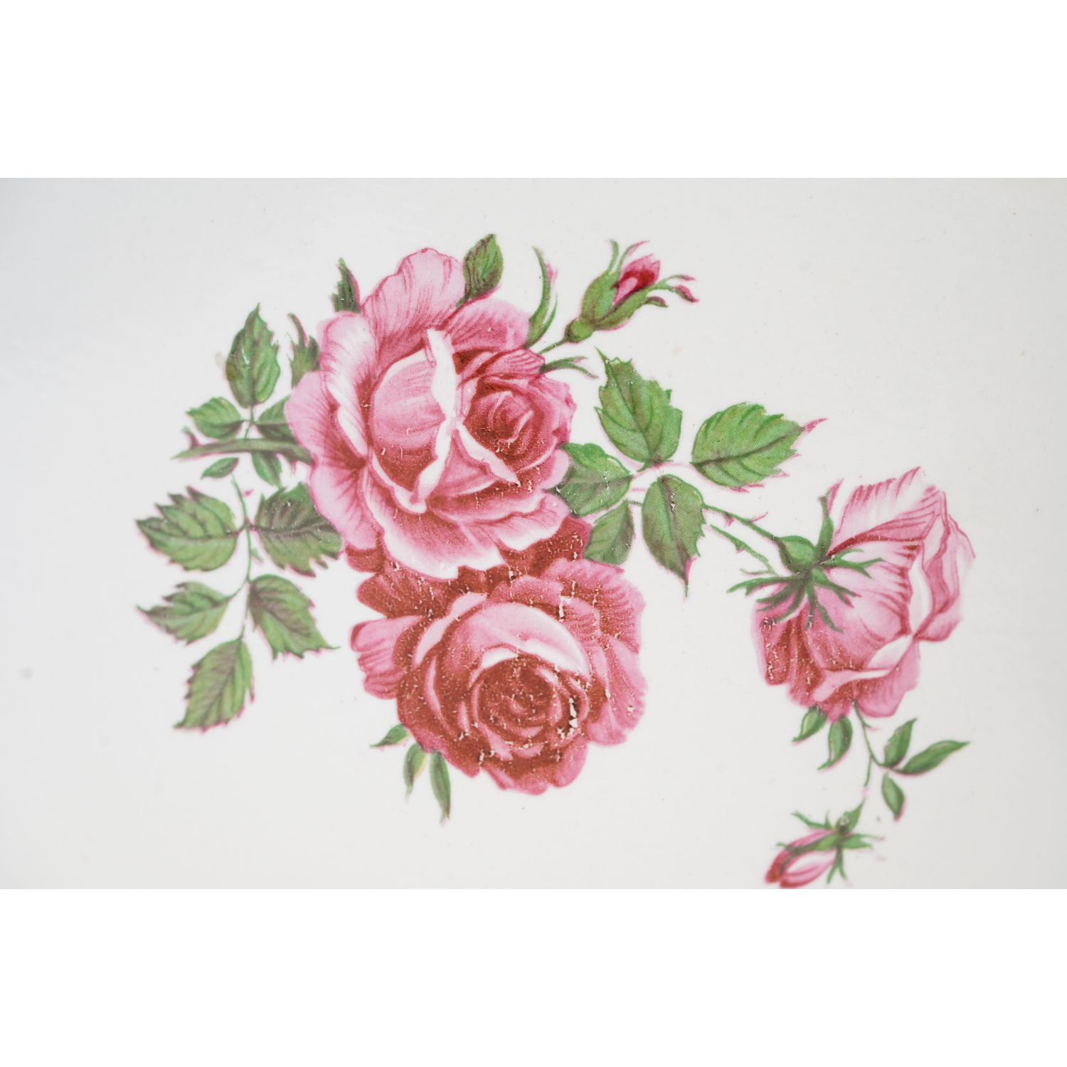 Sygnowana numerycznym wyciskiem w masie. Całość w odcieniu bieli z kanelowaniem w dolnej części. Na całej powierzchni róże. Kontury w zielonych obwódkach.