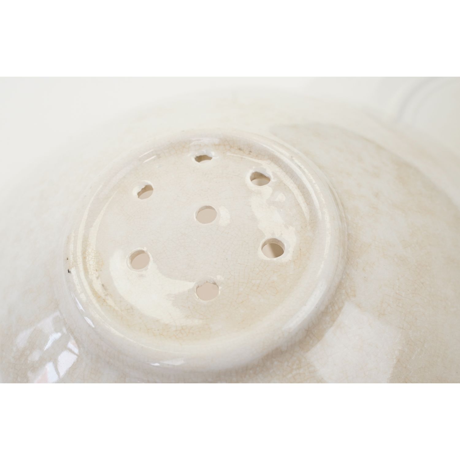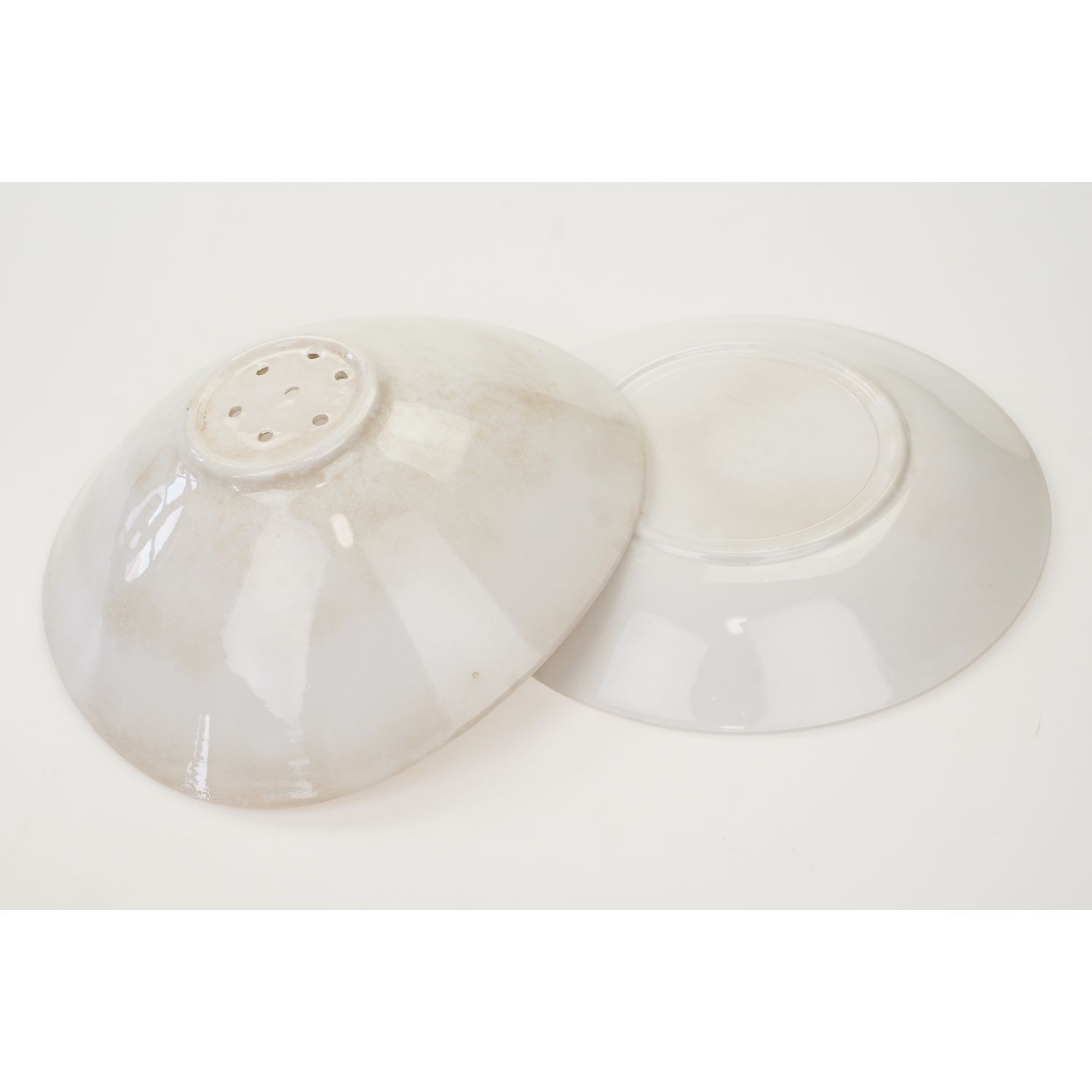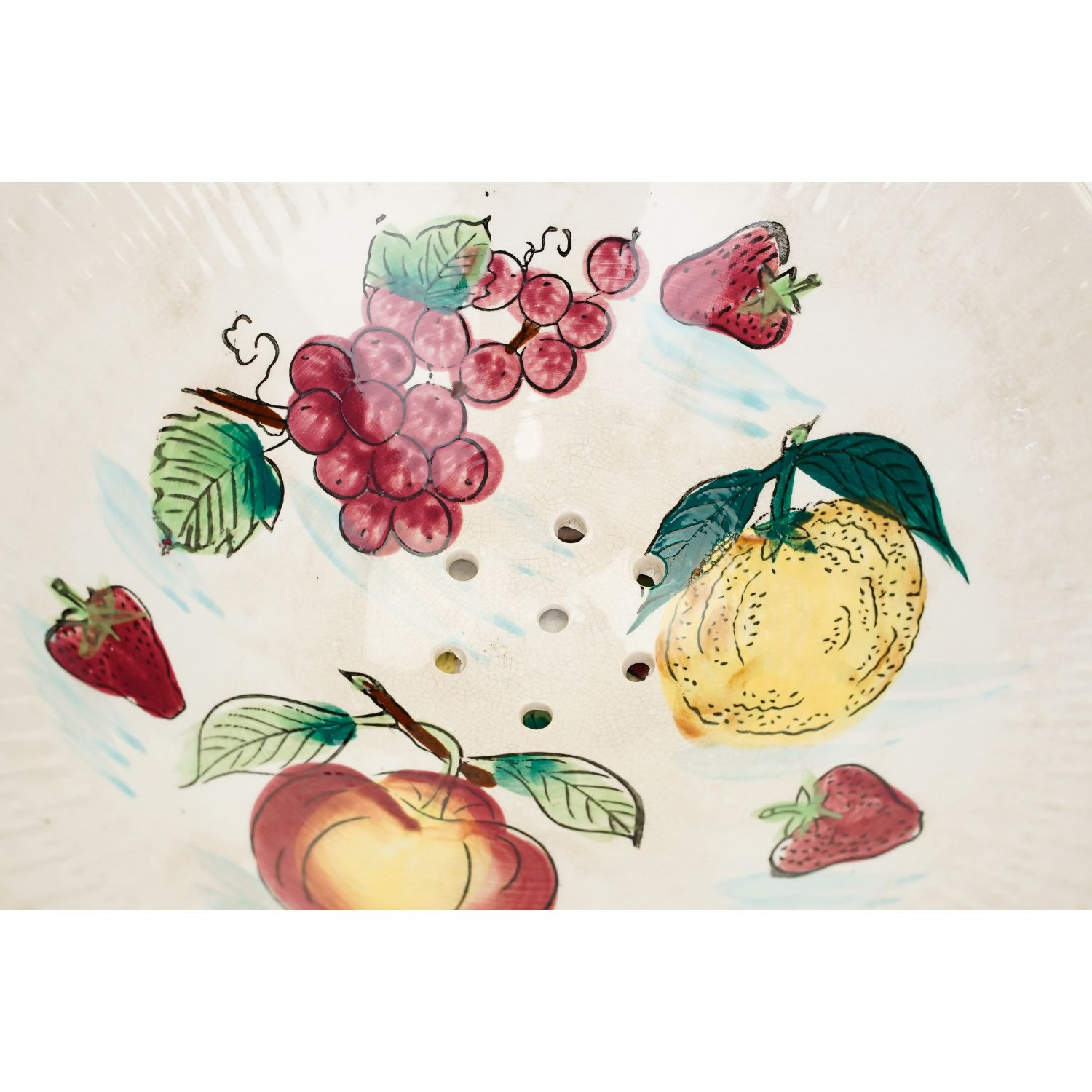 Nie posiada sygnatury. Dolna część, to prosta patera dekorowana rysunkami różnych owoców. Górna część, to misa-sito. Na niej też umieszczono owocowe dekoracje. Krawędzie kanelowane. Przedmiot wyjątkowo praktyczny, umożliwiający serwowanie owoców po umyciu!