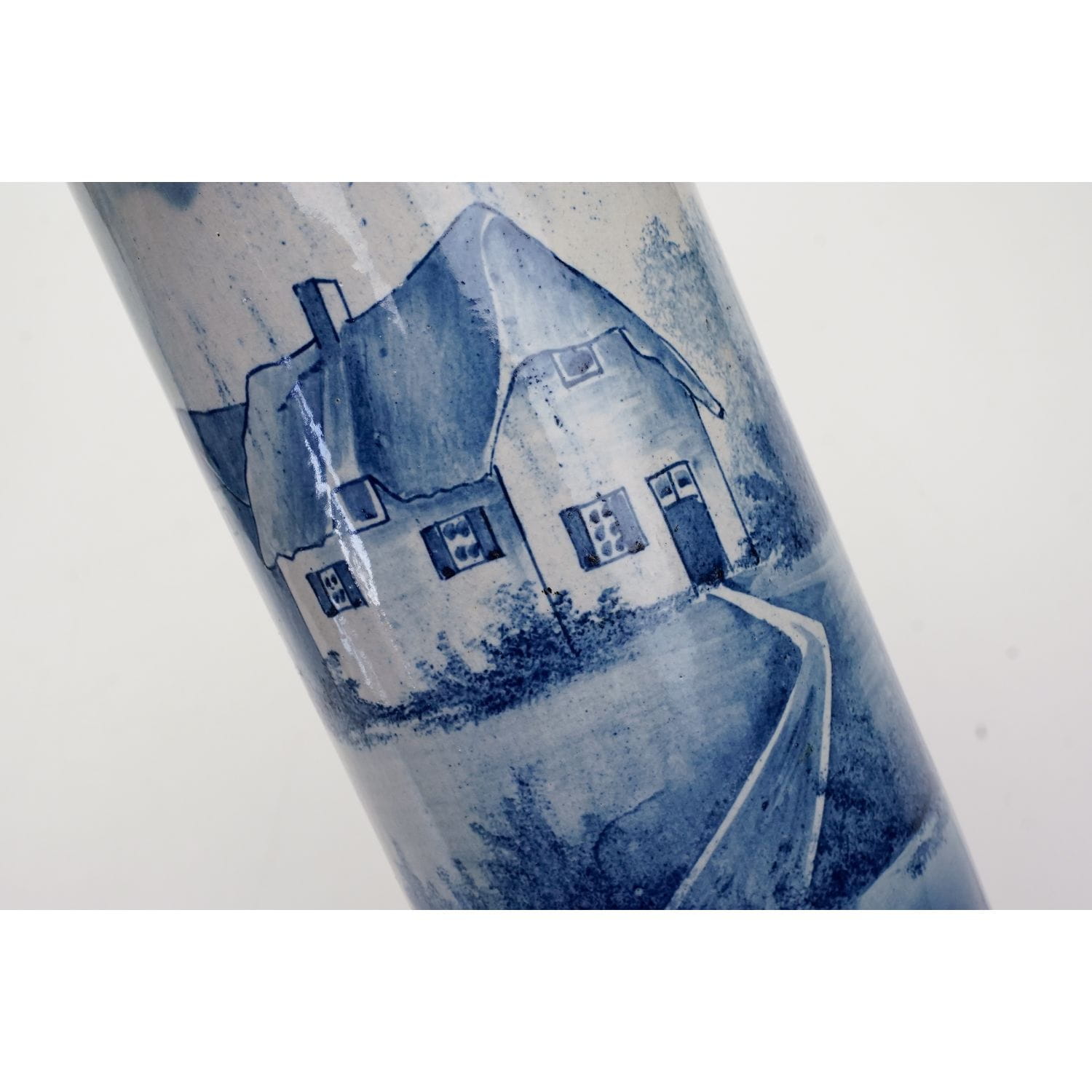 CERAMICZNY RĘCZNIE MALOWANY WAZON Z CHATĄ W TYPIE DELFT