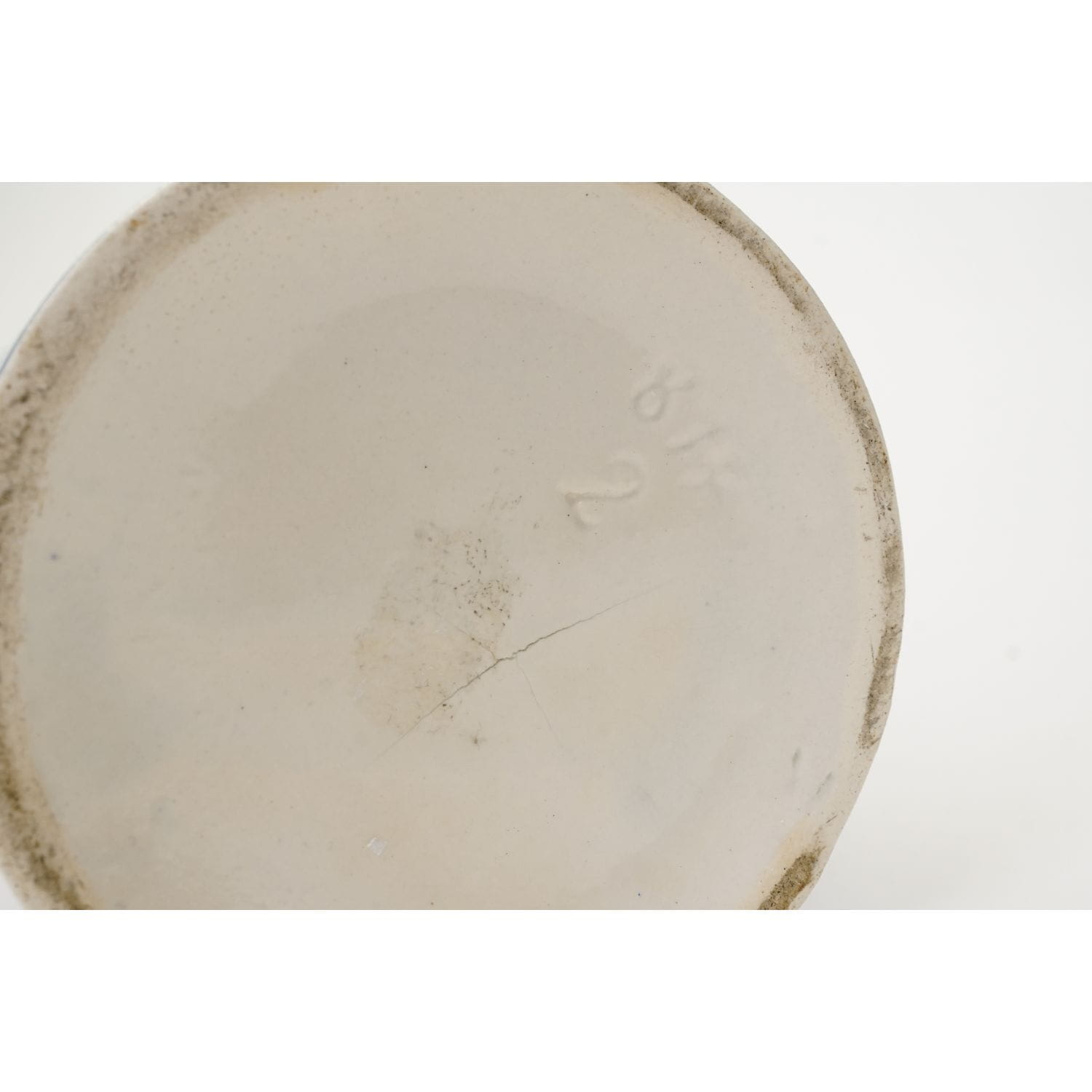 Stan całości zaledwie dobry. Pajączek od spodu i płaski odprysk na podstawie. Włosowate pęknięcie przy górnej krawędzi o długości 4,5 cm