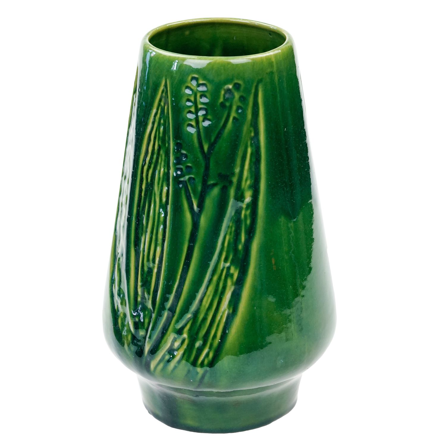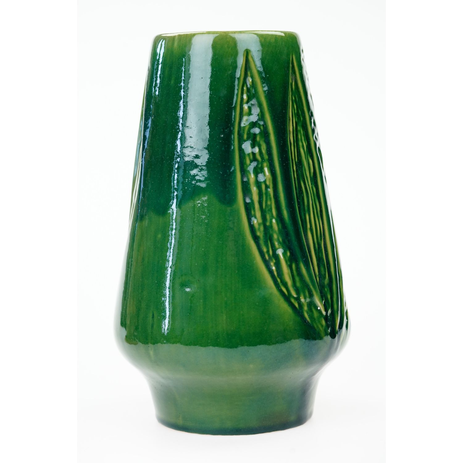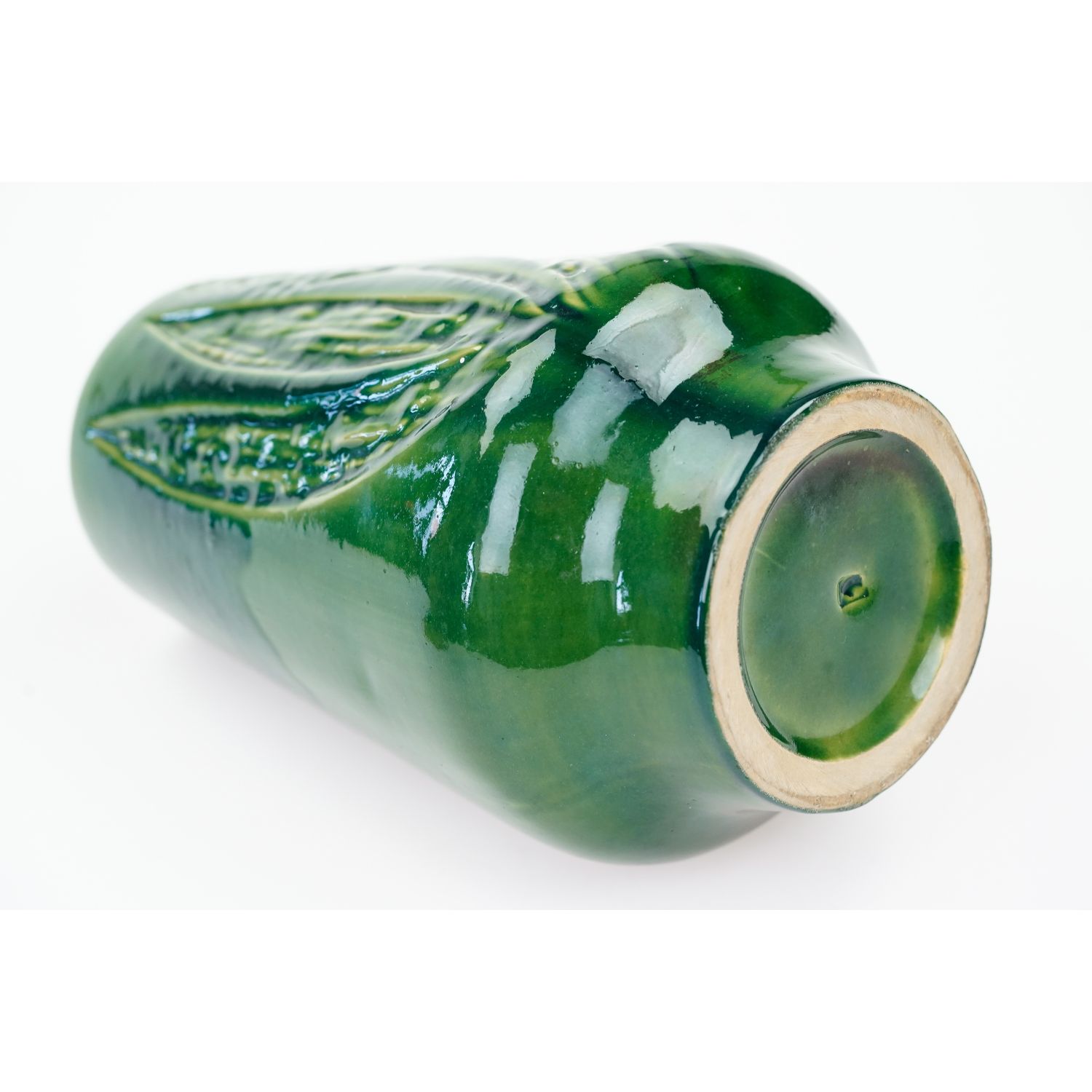 CERAMIKA BIAŁYSTOK ZIELONY WAZON Z LIŚCIASTYMI RELIEFAMI