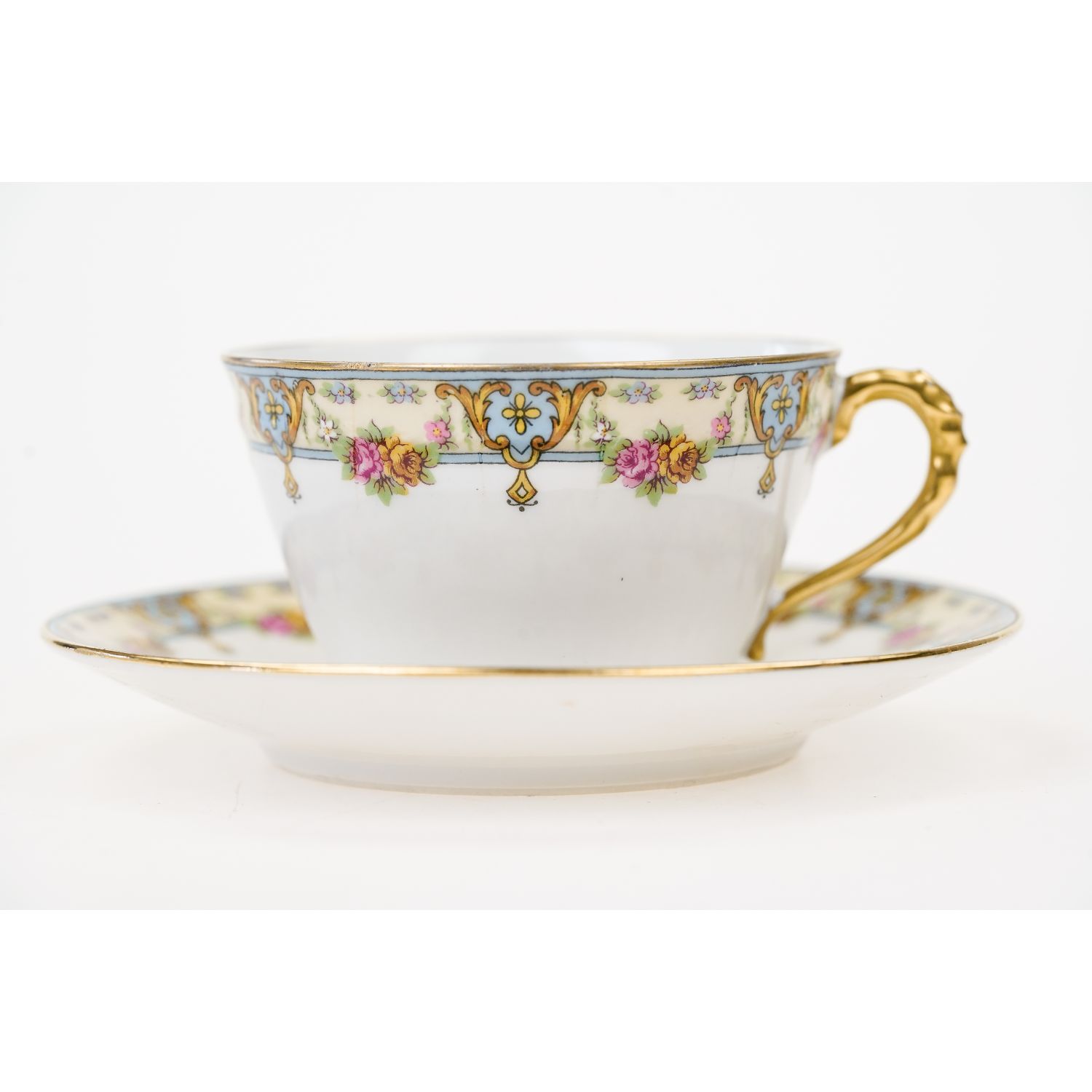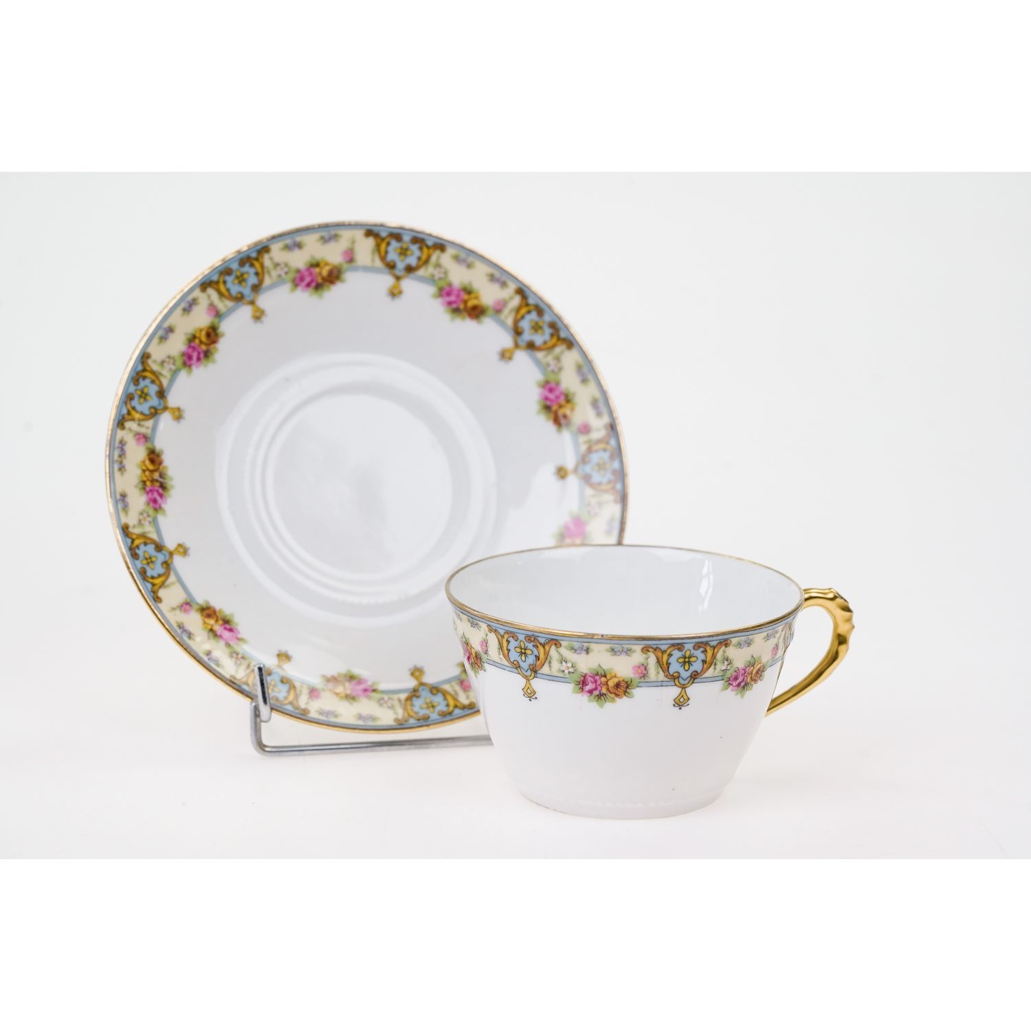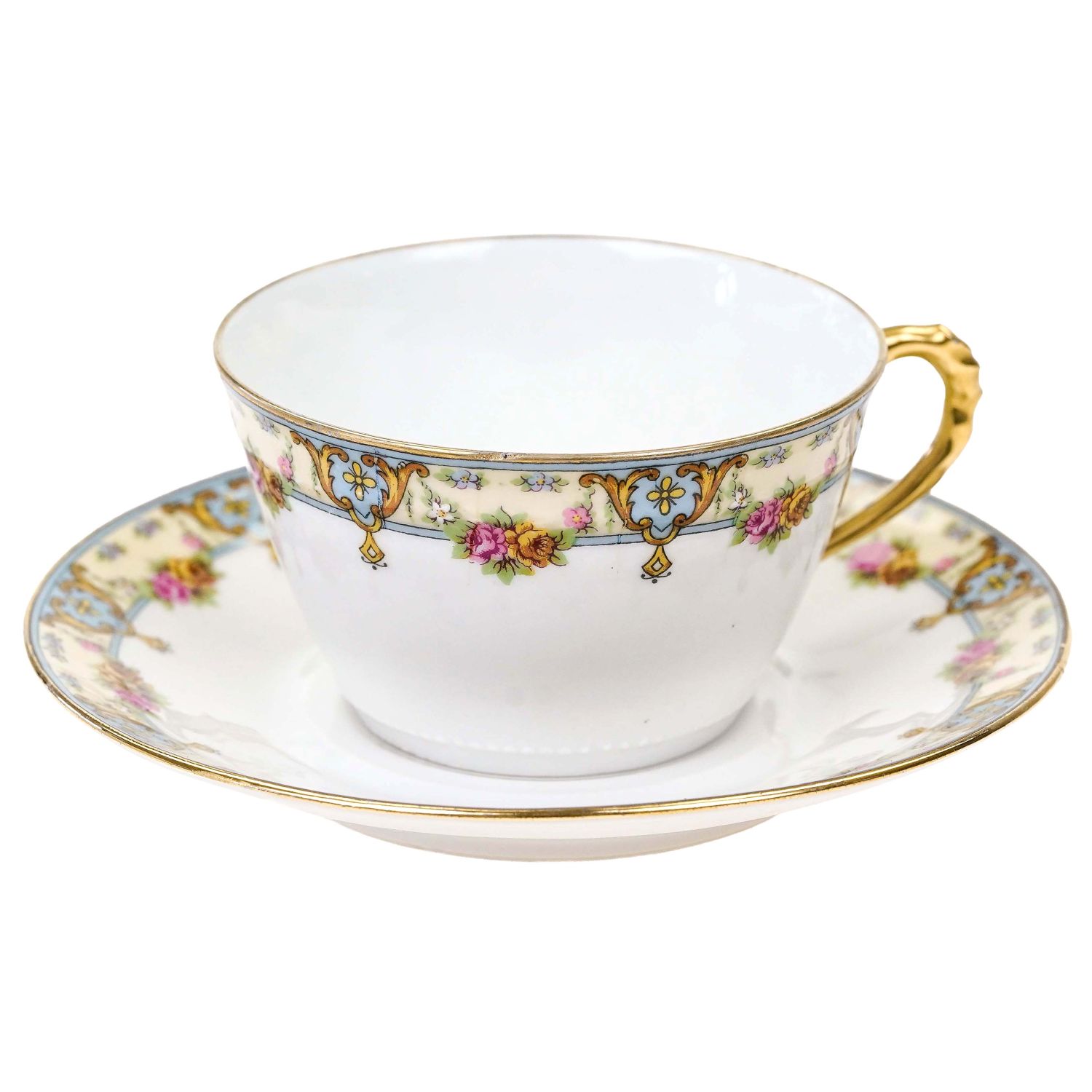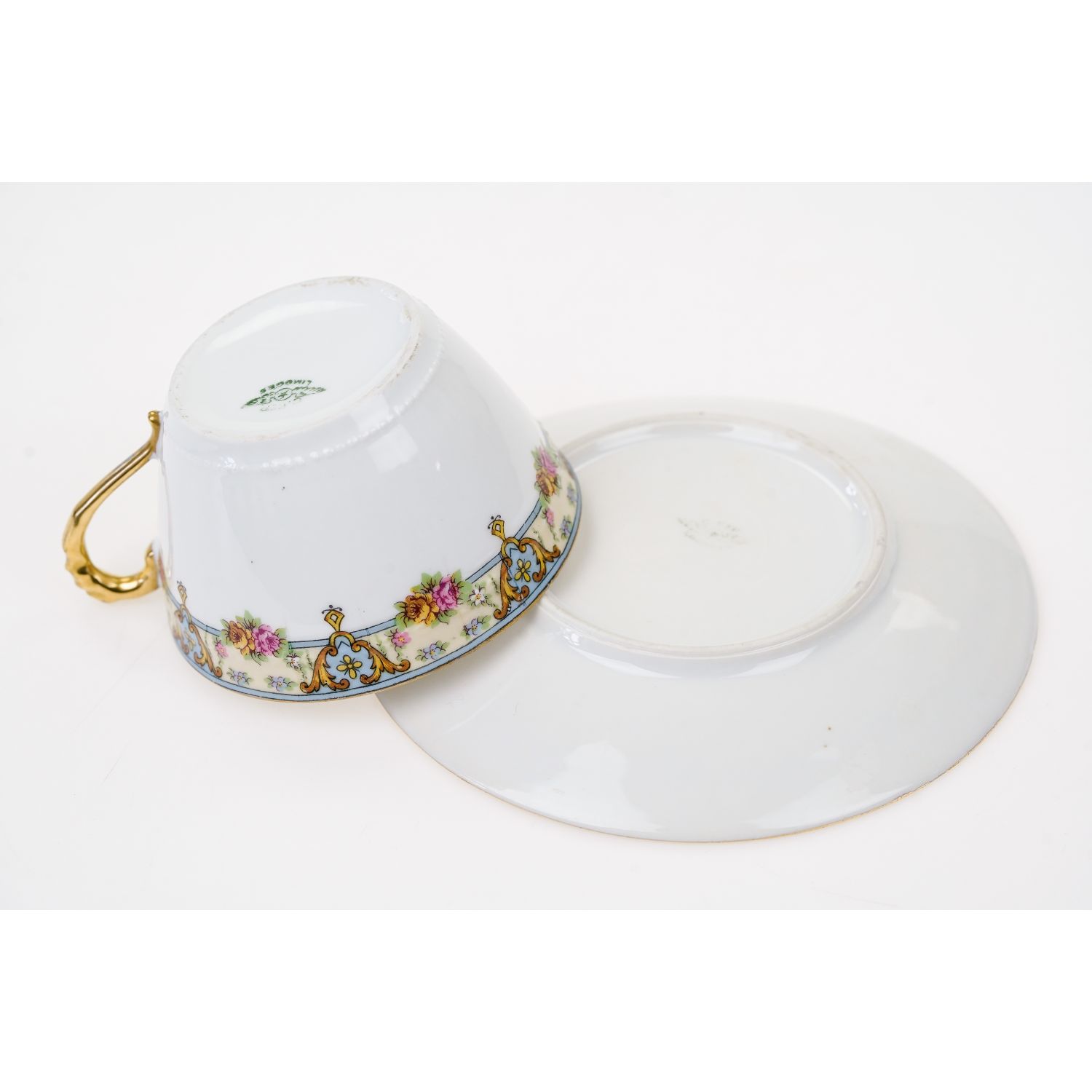 CHABROL FRERES & PORIER LIMOGES FILIŻANKA ZE SPODKIEM KWIATOWY SZLACZEK