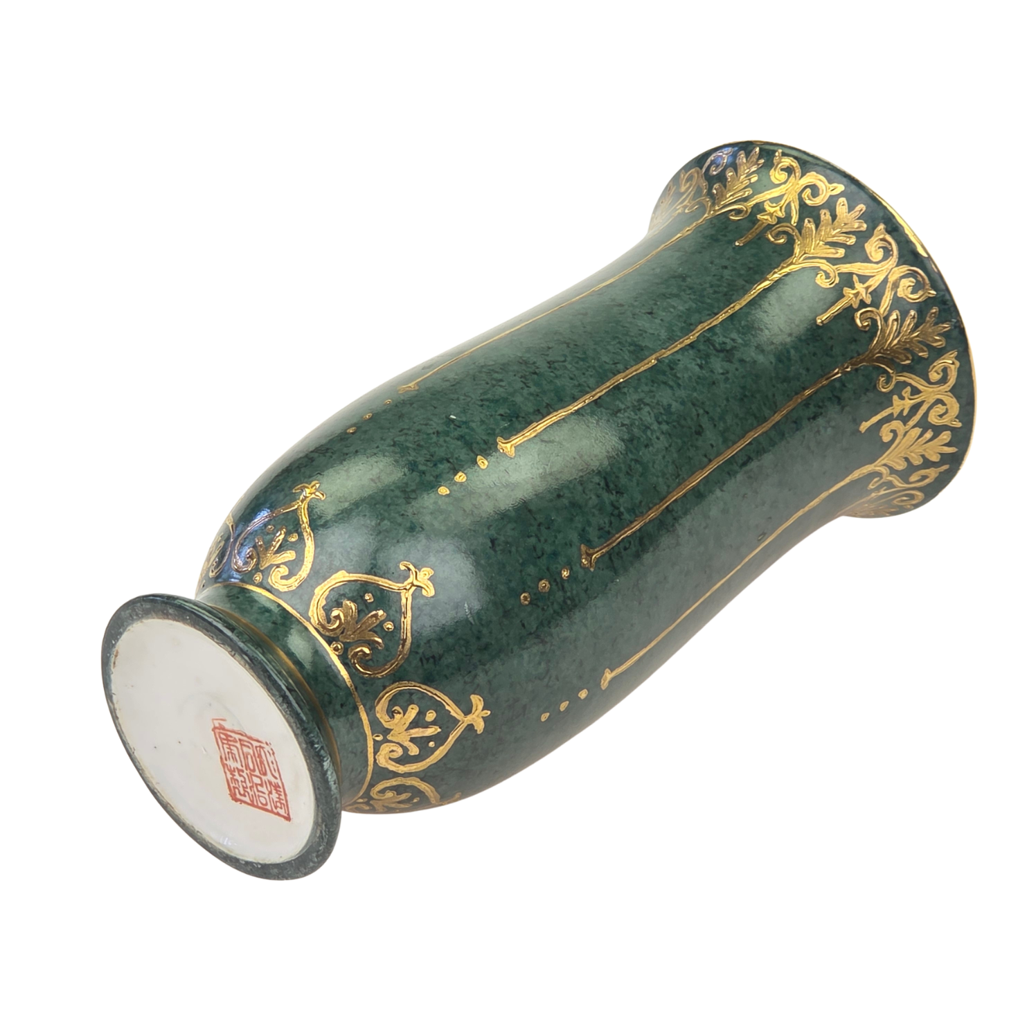CHIŃSKI WAZON Z LAT 50-TYCH ZIELONY MARMURKOWY Z GOLD RELIEFAMI