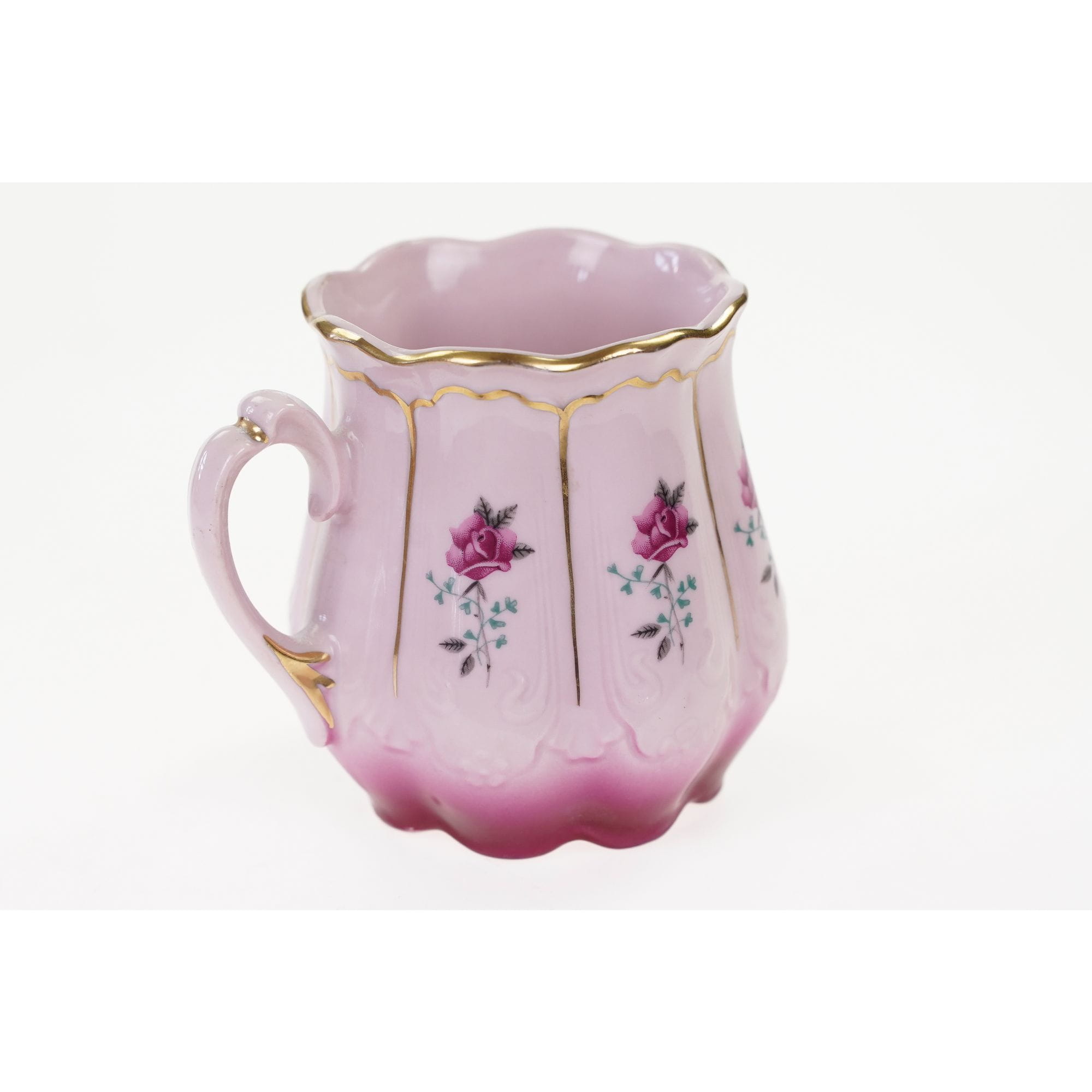 CHODOV CIENIOWANY KUBEK Z RÓŻOWEJ PORCELANY KWIATY I ZŁOCENIA