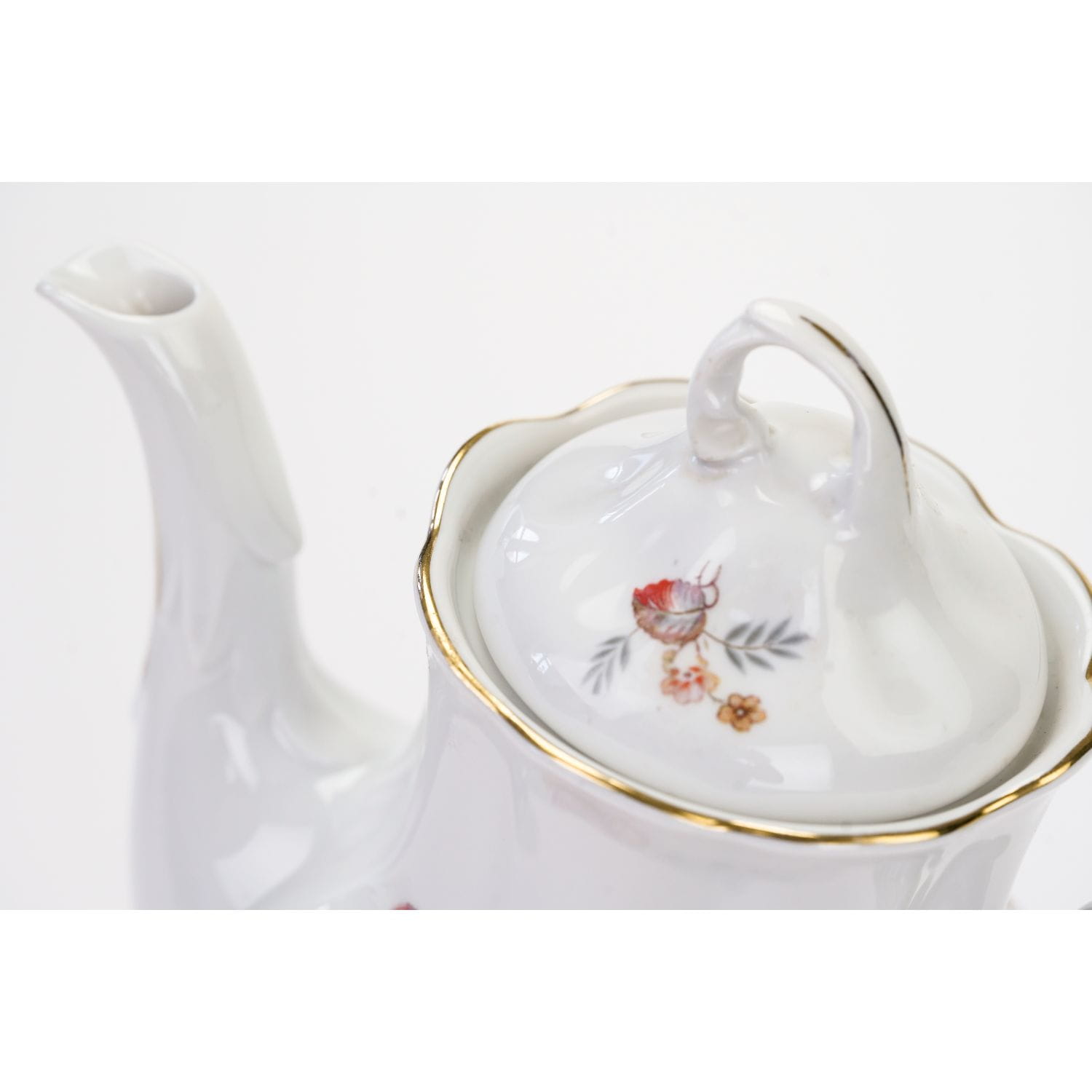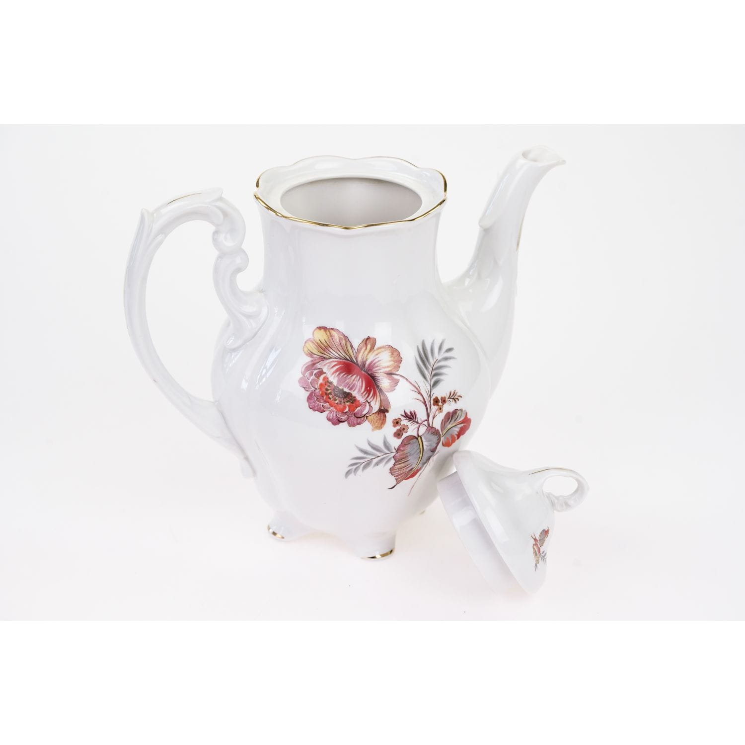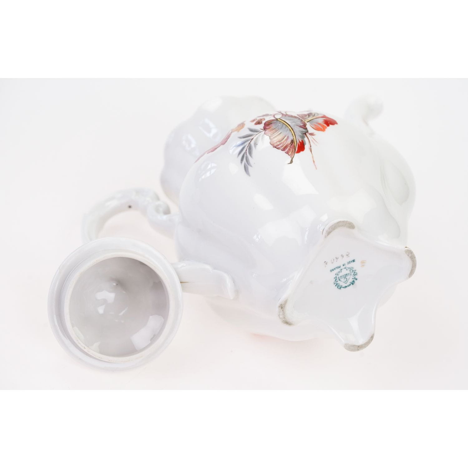 Wykonany w Chodzieskich Zakładach Porcelany i Porcelitu. Ponadczasowy model Charlotte. Wykonany z porcelany w kolorze złamanej bieli, wysokiej klasy. Zdobiony pięknym kwiatowym motywem; dużymi bukietami kwiatów w jesiennych barwach. Kontury w złoceniu. Niezwykle piękna forma rzuca się od razu w oko. Pokrywa leży luźno.