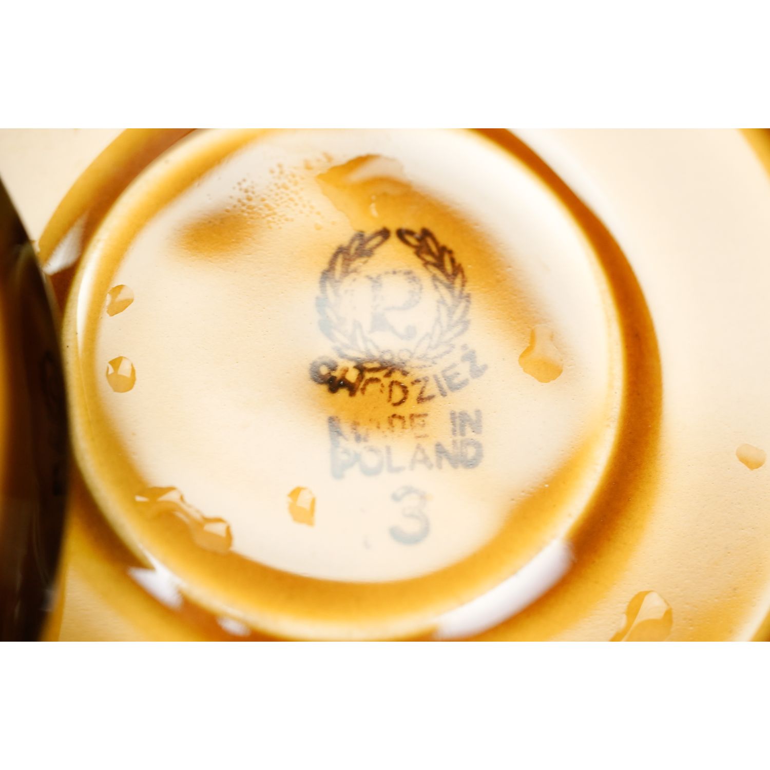 Wykonany według projektu (projekt formy) Eugeniusza Renkowskiego – „Ira”, upiększony bardzo wyraźnym, zgeometryzowanym reliefem, przedstawiającym kółeczka wpisane w trójkąty. Całość w odcieniu miodowym, szkliwiony.