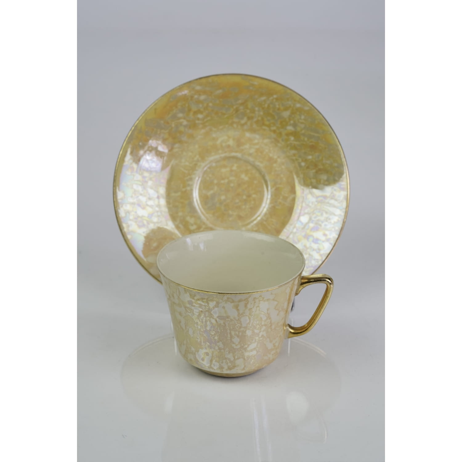 CHODZIEŻ MARMURKOWY OPALIZOWANY SZARY SERWIS DO KAWY ZE ZŁOCENIAMI 4 OSOBY