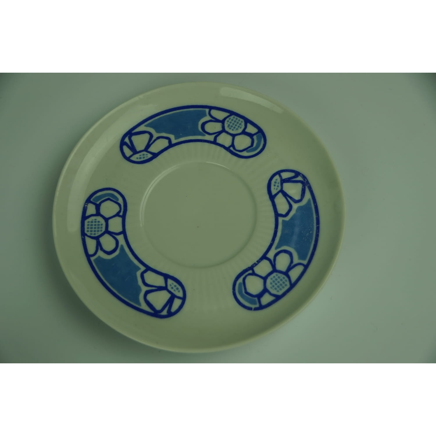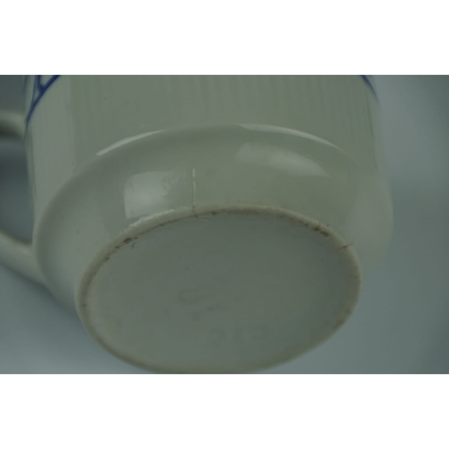 Pochodzi z Chodzieskich Zakładów Porcelany i Porcelitu, fason Roman, którego autorem był prawdopodobnie Eugeniusz Renkowski. Ciekawa forma o prostych kształtach, ze szlaczkami kanelowań, z którymi zdecydowanie kontrastuje niebieska, kwiatowa dekoracja inspirowana motywami ludowymi. Wykonana w latach 60/70-tych XX wieku. Sygnatura fabryki i sygnatury numeryczne i wycisk w masie.