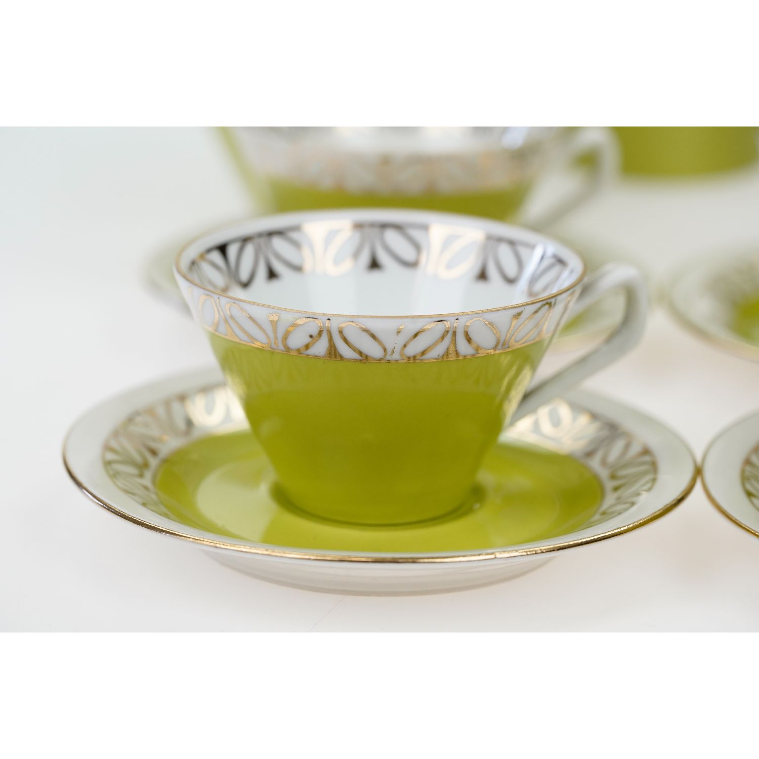 CHODZIEŻ W. GÓRSKI ELŻBIETA SELEDYNOWY SERWIS DO KAWY 4 OSOBY KOLOROWE LATA 70-TE