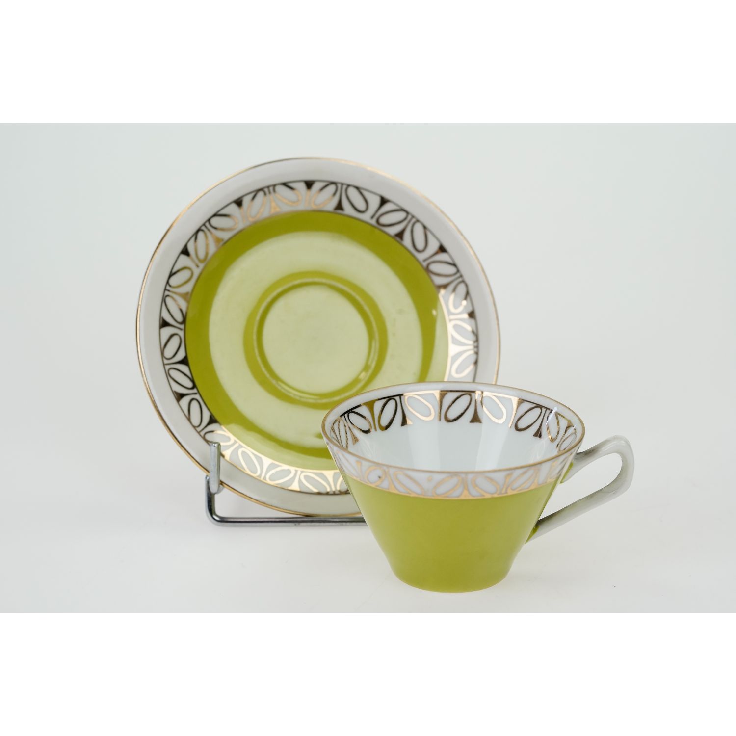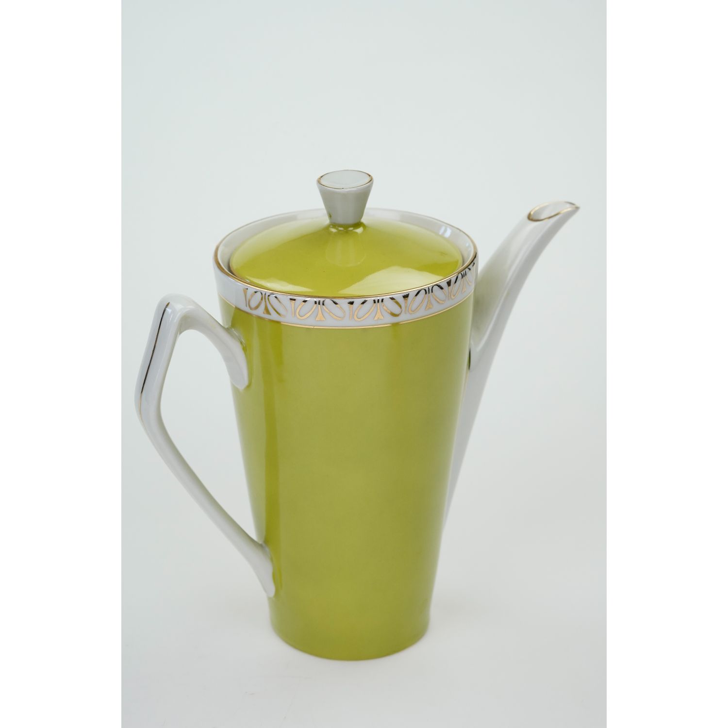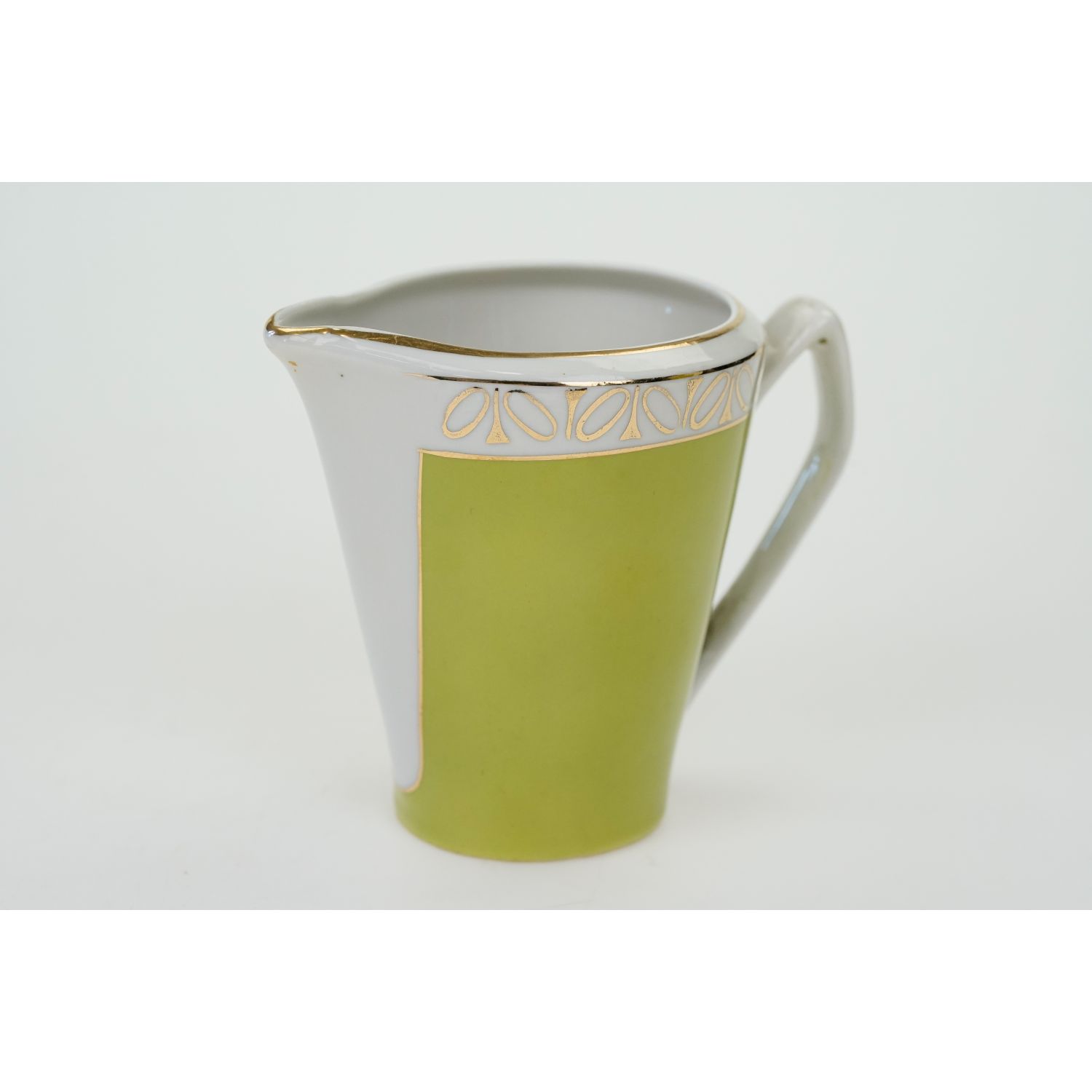 Pochodzi z Chodzieży z serwisu Elżbieta, wykonanego według projektu W. Górskiego z 1958 roku. Porcelana w kolorze białym pokryta natryskowo seledynowo-limonkową malaturą, kPrzy krawędziach złote, abstrakcyjne szlaczki. Z uszami sterczącymi ku górze i załamanymi pod kątem. Uszka, sterczynki i krawędzie złocone, pozostawione w białym kolorze.