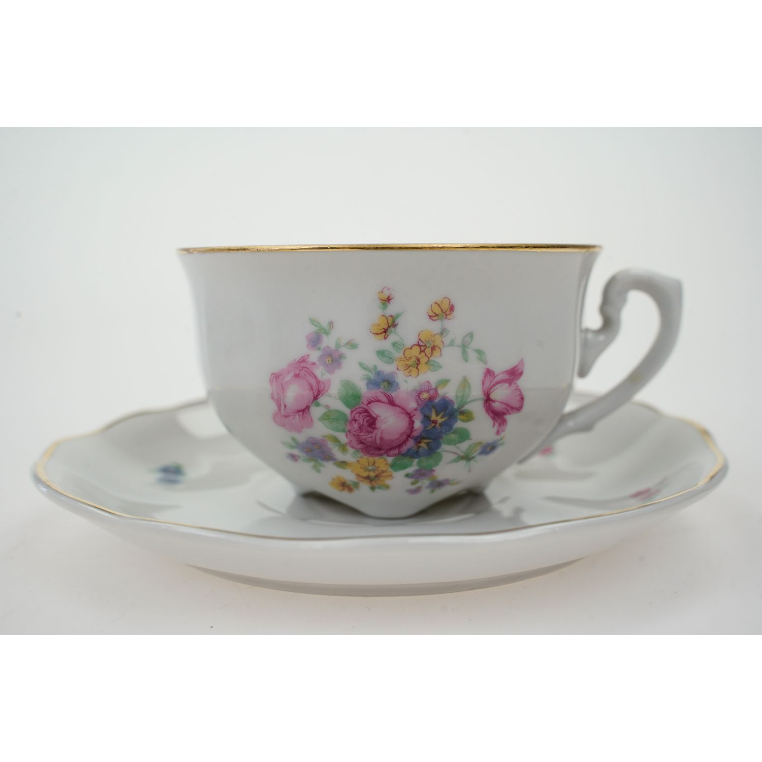 Urocza filiżanka ze spodkiem. Przepiękne, kwiatowe dekoracje.