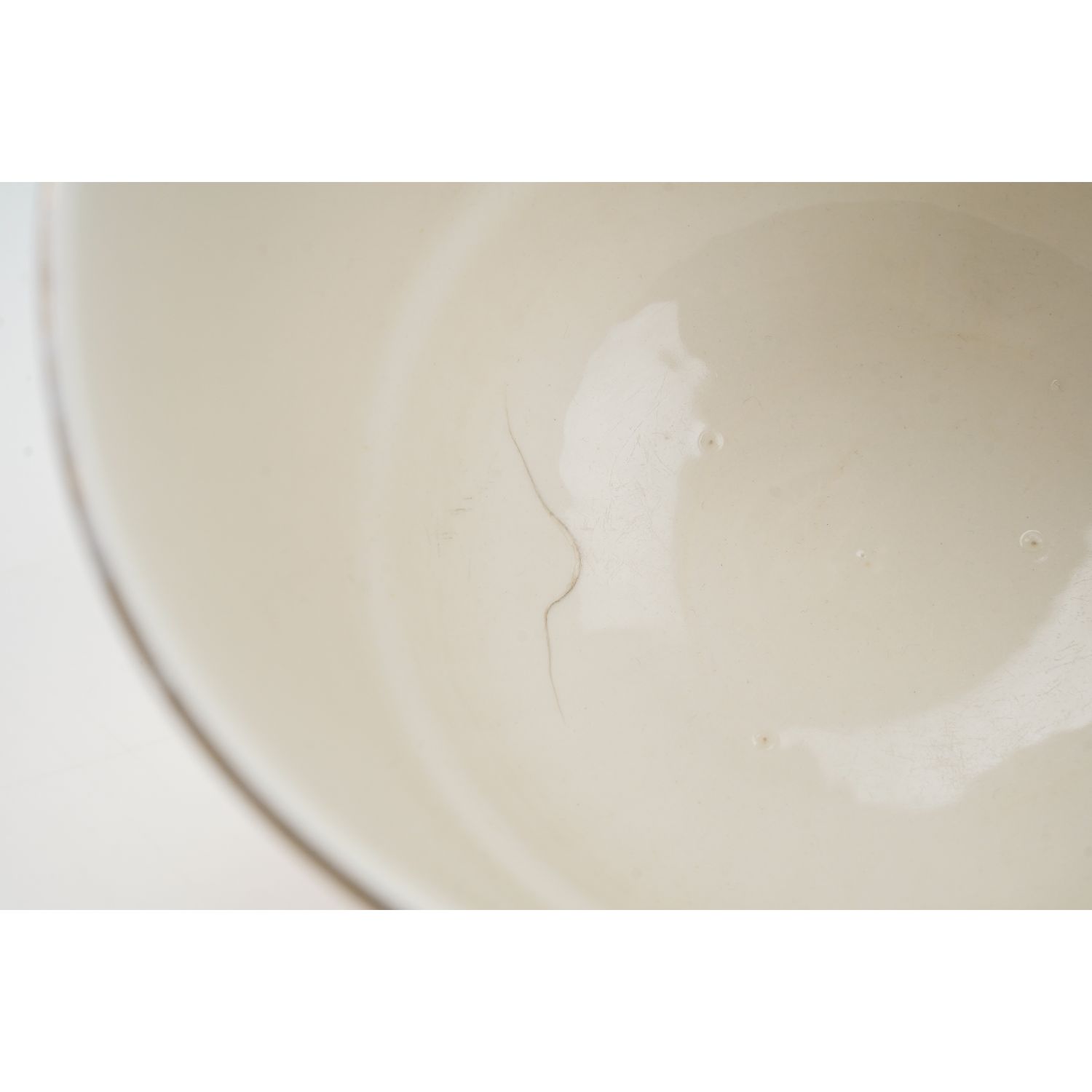 Stan dobry z włosowatym pęknięciem widocznym bardziej od wewnątrz, Otarcia złocenia na górnej krawędzi.