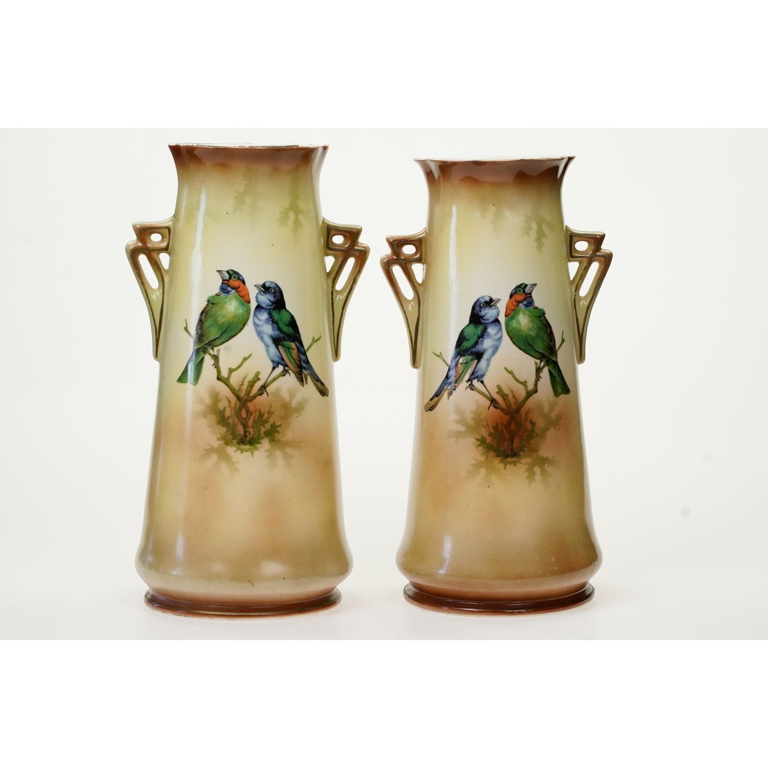 CZECHOSŁOWACJA ART-DECO PARA WAZONÓW I ŻARDINIERA NA KOMINEK PTAKI