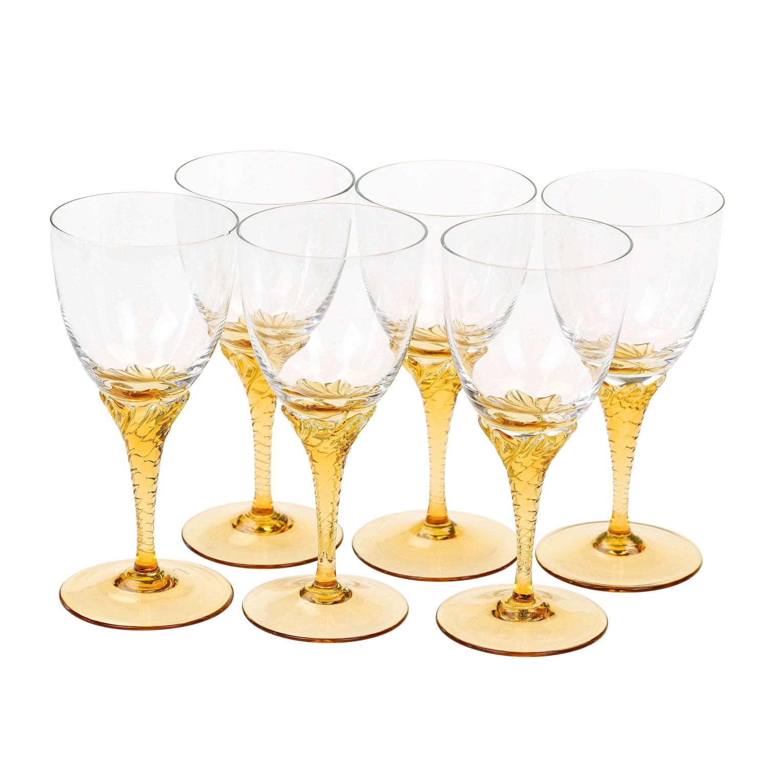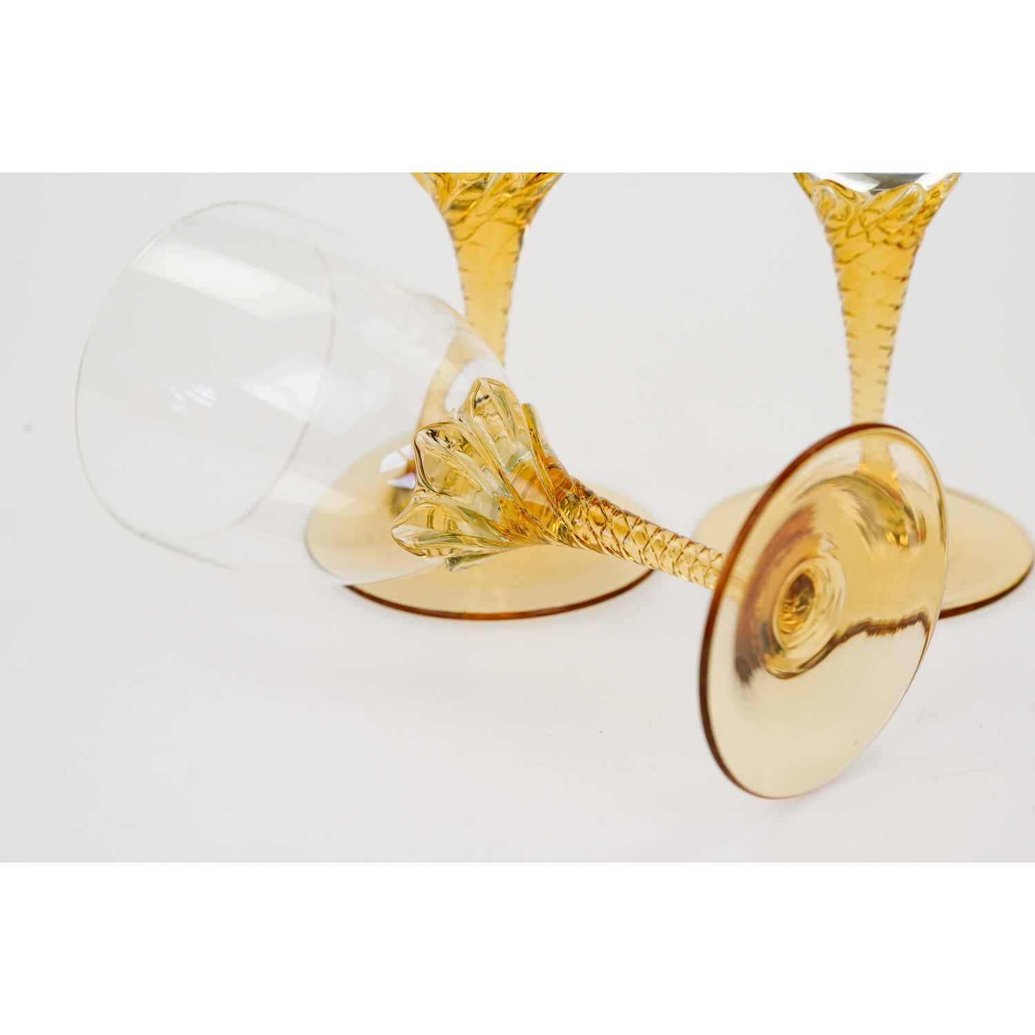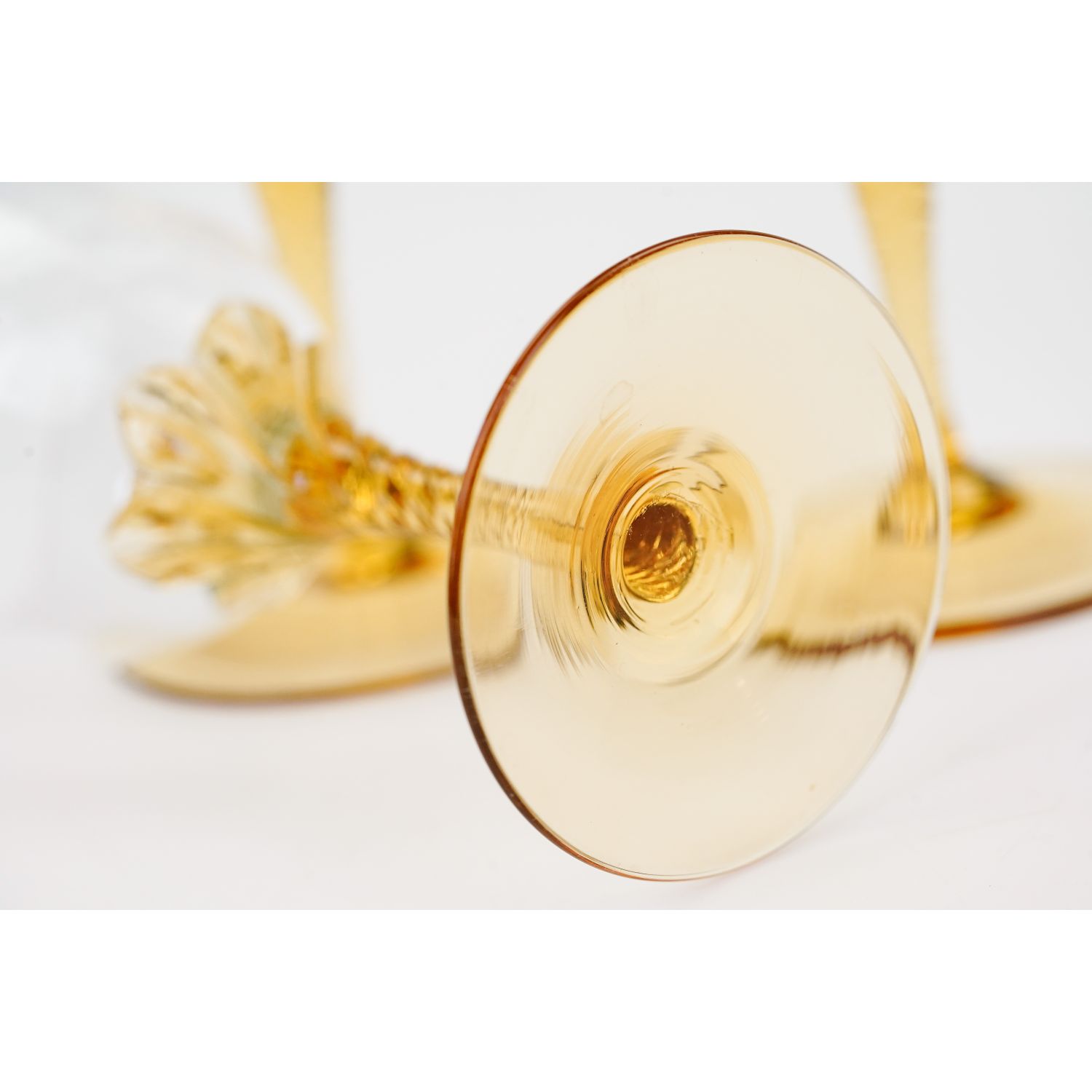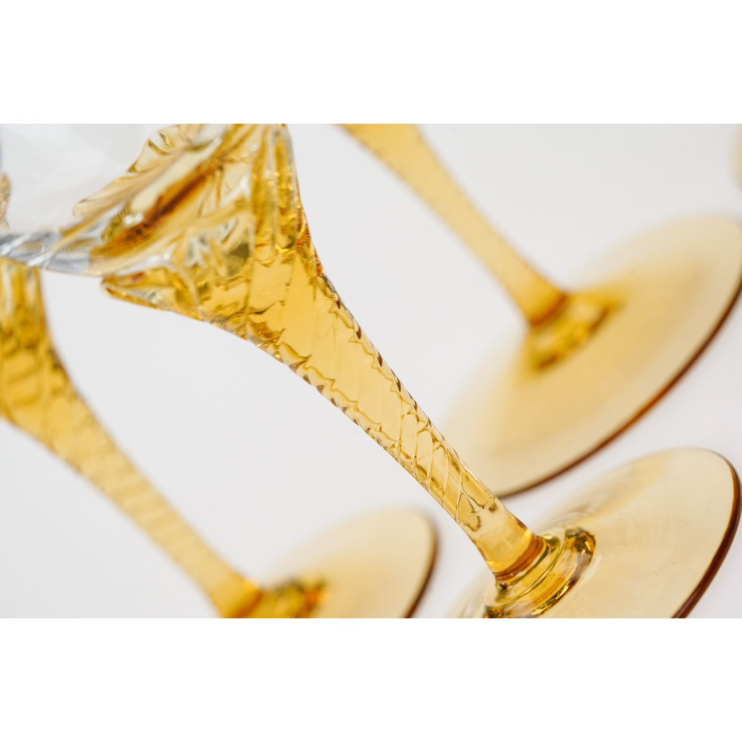 CZECHOSŁOWACJA KOMPLET 6 KIELISZKÓW NA BURSZTYNOWYCH SPIRALNYCH NÓŻKACH