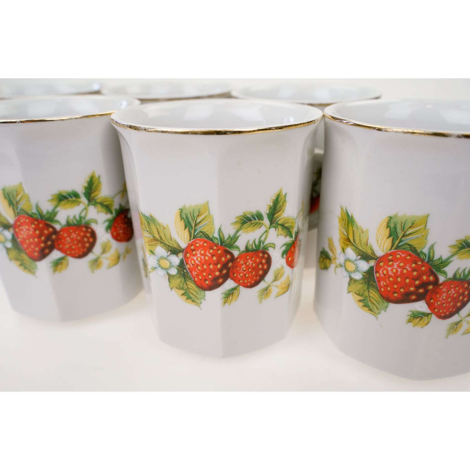 DUBI KOMPLET SZEŚCIU GRANIASTYCH KUBKÓW Z TRUSKAWKAMI