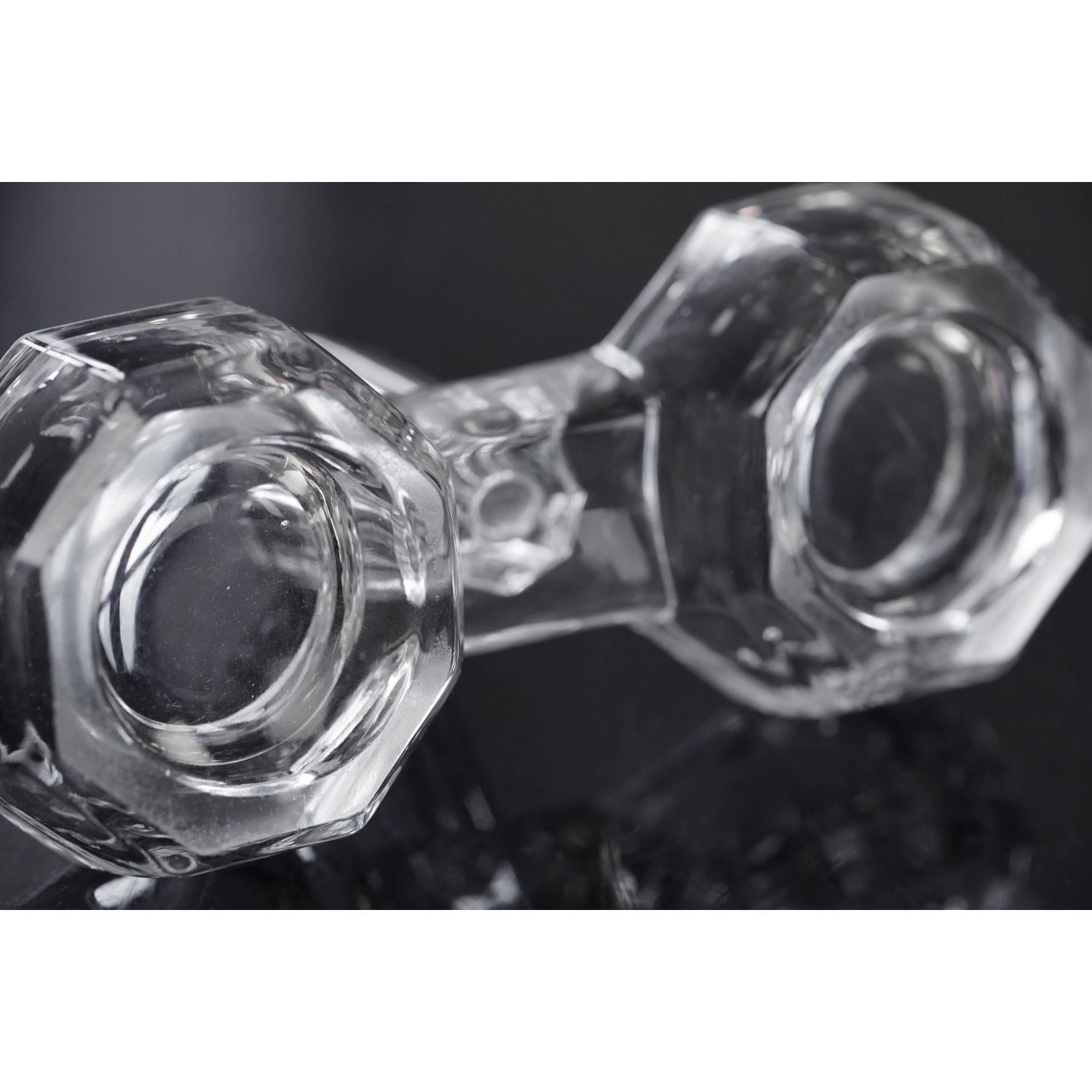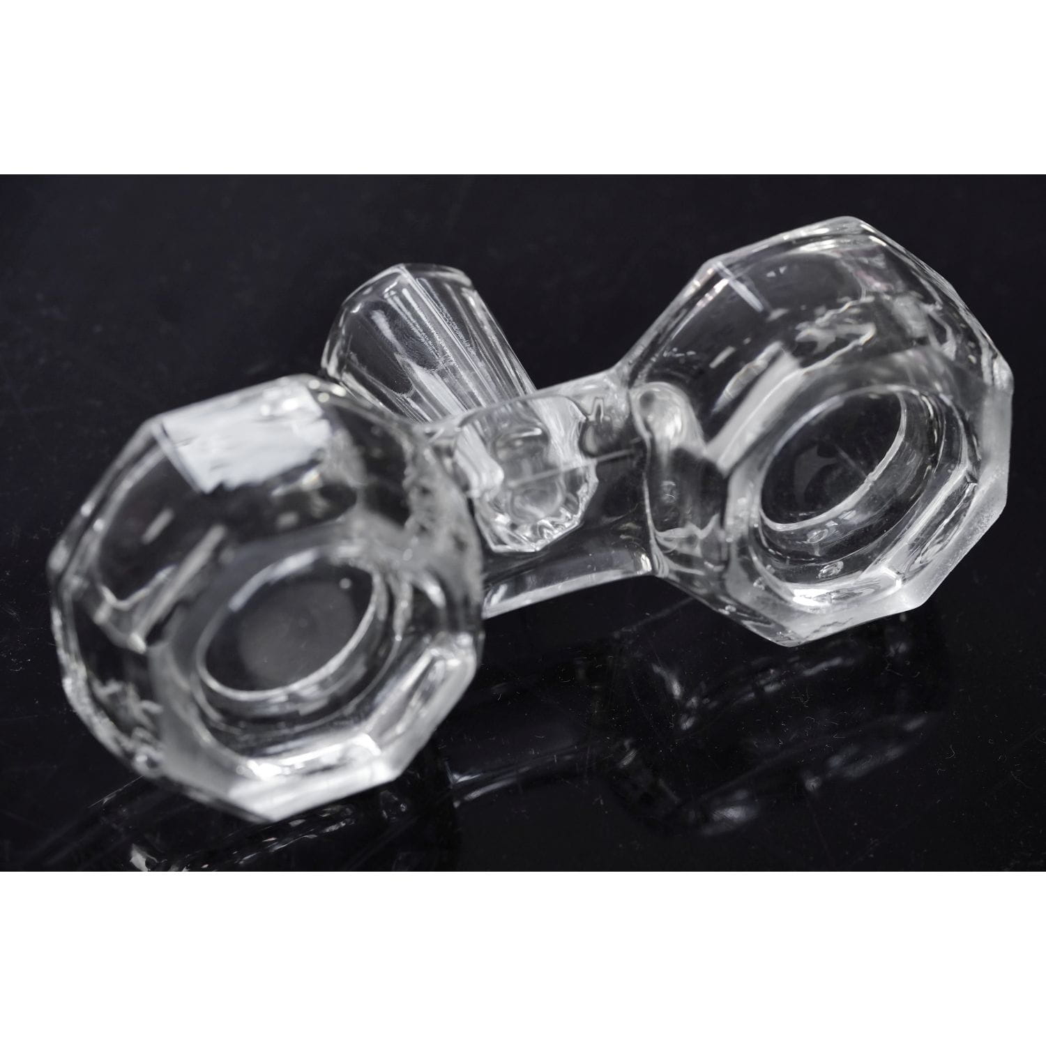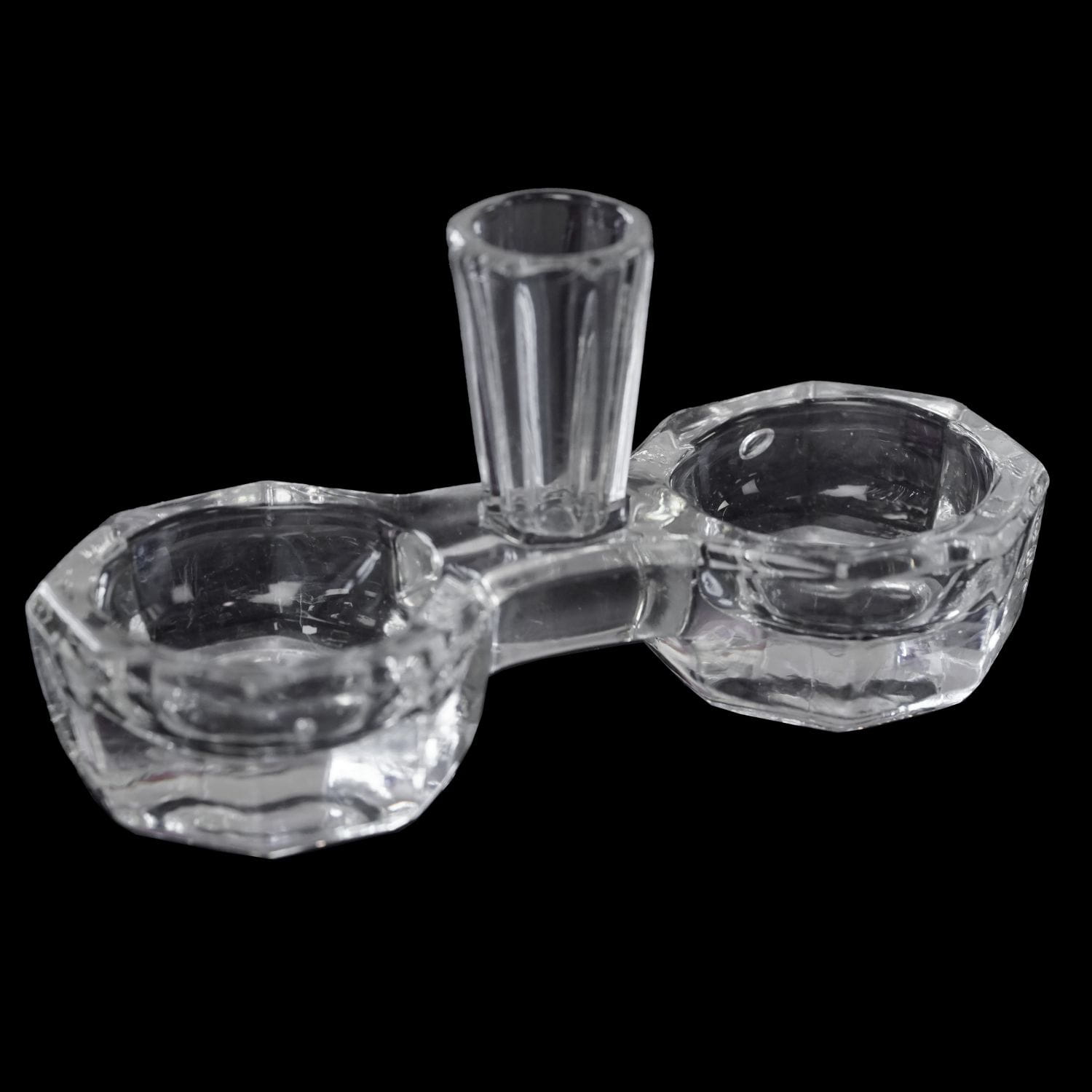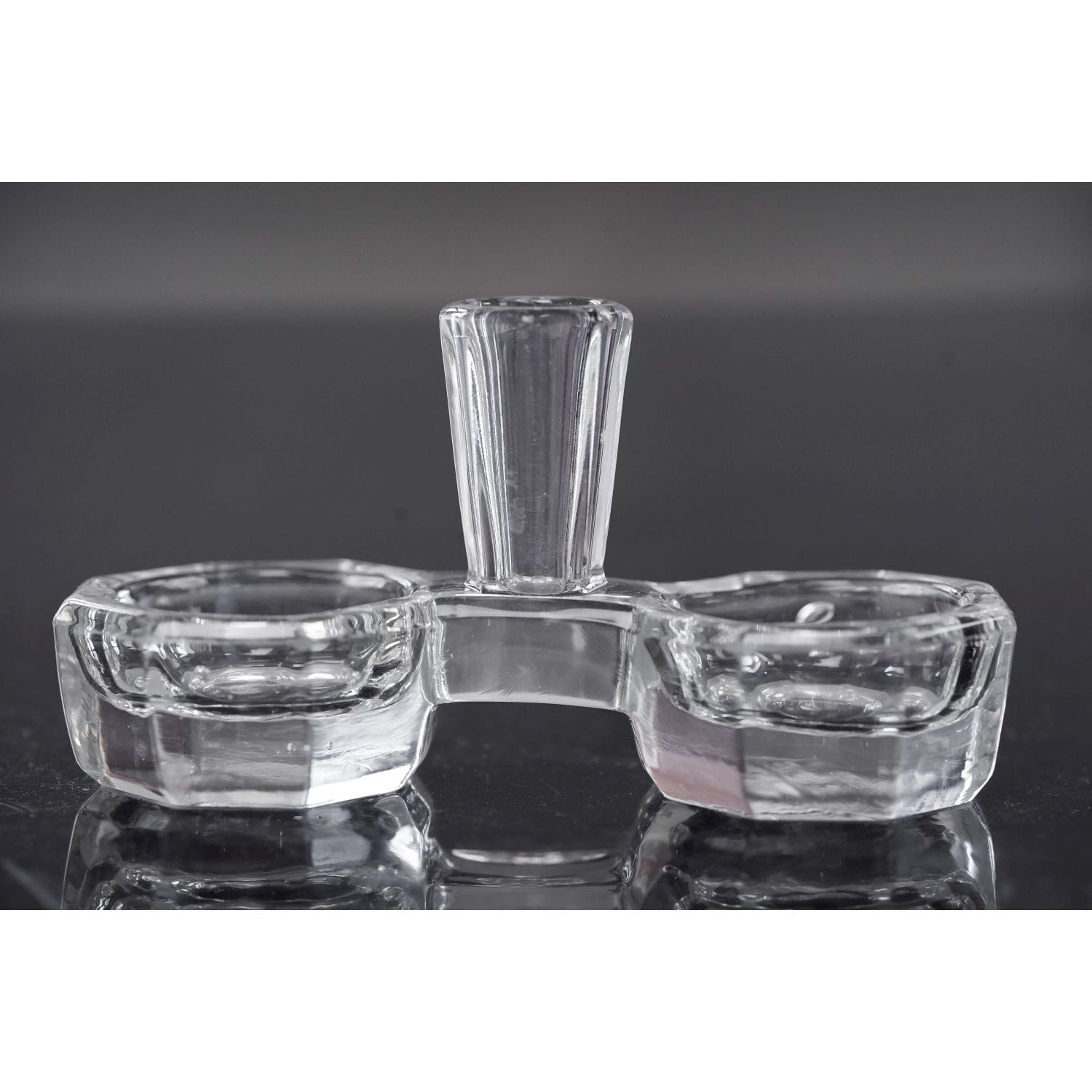 Pochodzi z S. Reich & Co. w Wiedniu, która miała też liczne fabryki w Czechach i na Morawach. (od 1936 CMS - Czesko-Morawska huta AG). Kabarecik powstał w latach 30-tych XX wieku. Wykonany ze szkła prasowanego, bezbarwnego. Forma dość prosta; połączone dwie miseczki na sól i pieprz i wyniosła tutka na wykałaczki. Naczynka o graniastych kształtach. Podstawa szlifowana.