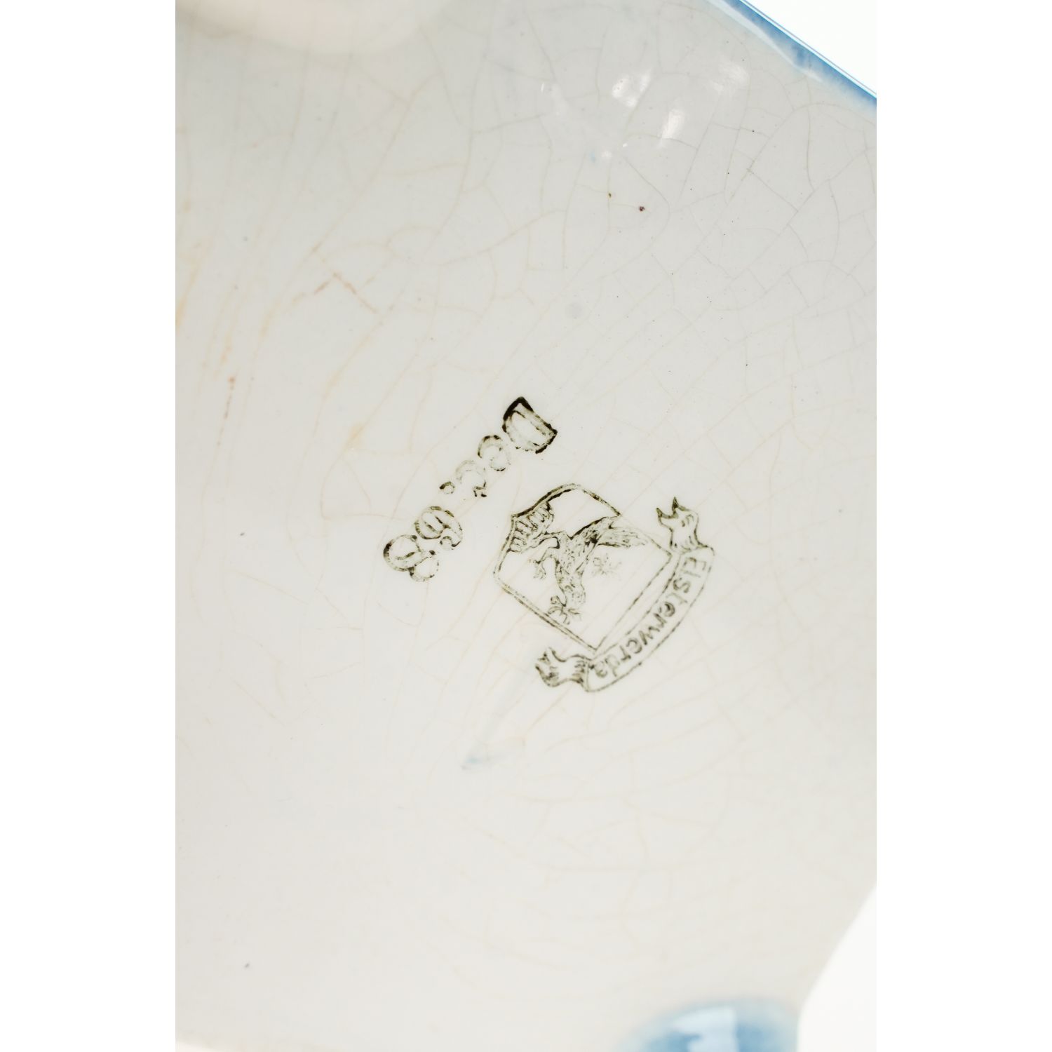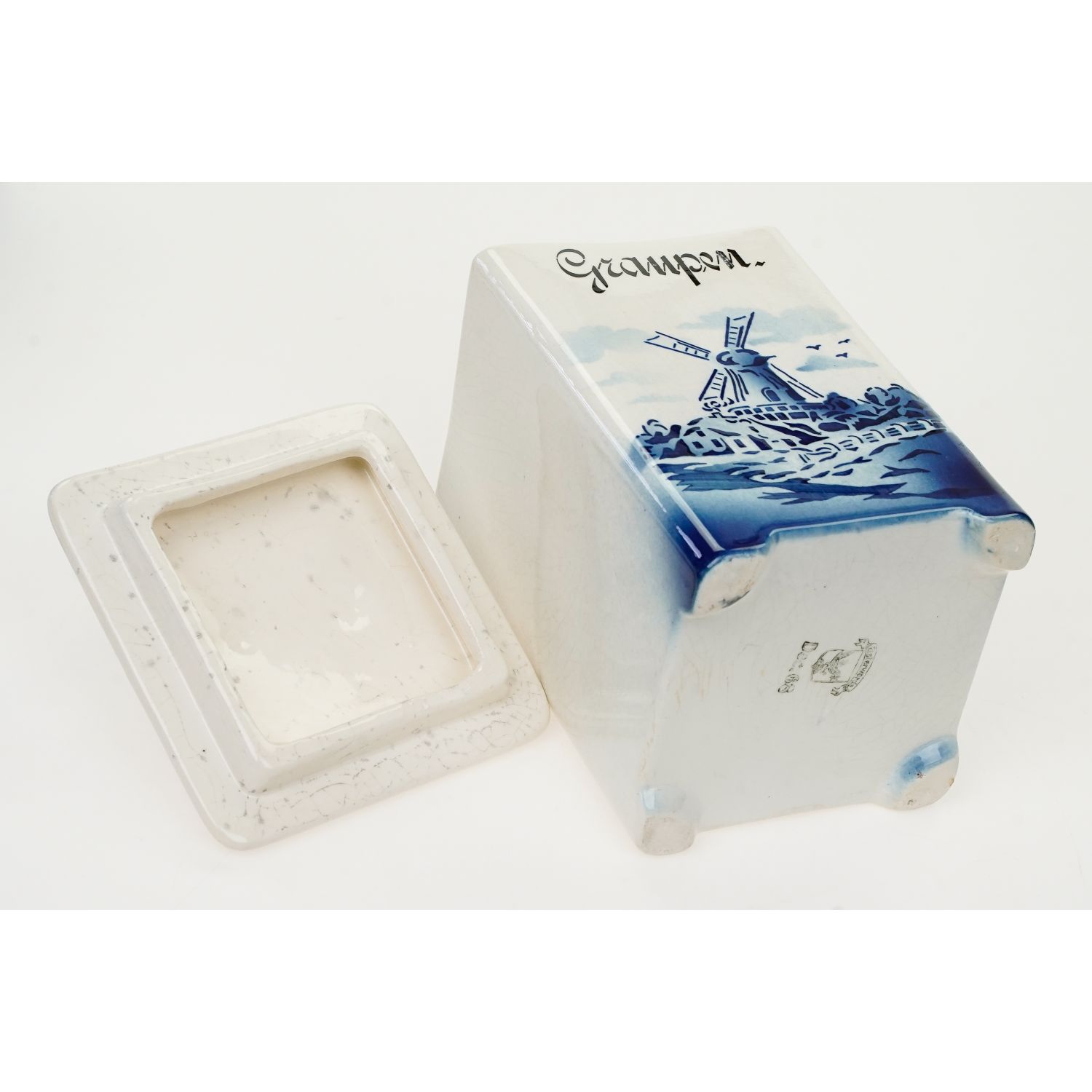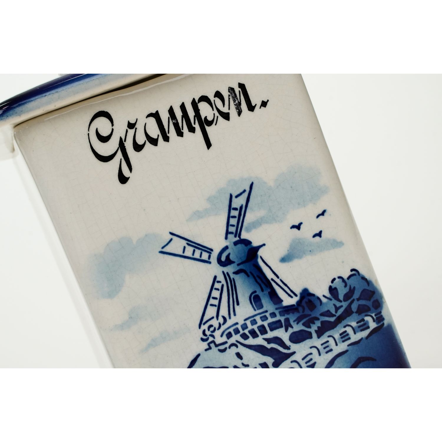 Pochodzi z Niemiec z Saksonii z miejscowości Elsterwerda z Steingutfabrik Elsterwerda GmbH. Sygnowana znakiem stosowanym od 1910 roku. Całość w odcieniu złamanej bieli. Z jednej strony zdobiony pejzażem z wiatrakiem naniesionym metodą natryskową za pomocą szablonu. Całość w niebieskich odcieniach. Nad krajobrazem napis w języku niemieckim "Graupen" (kasza perłowa).