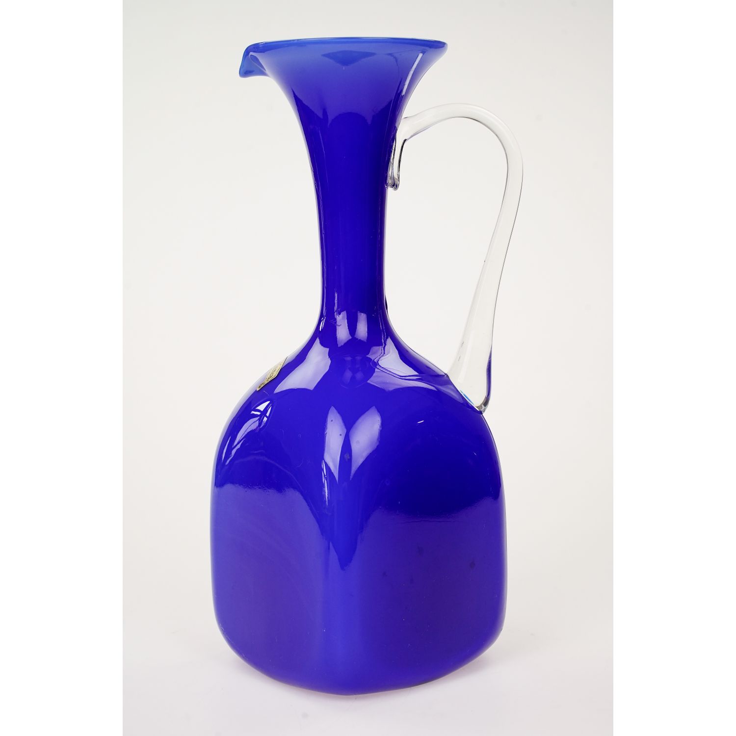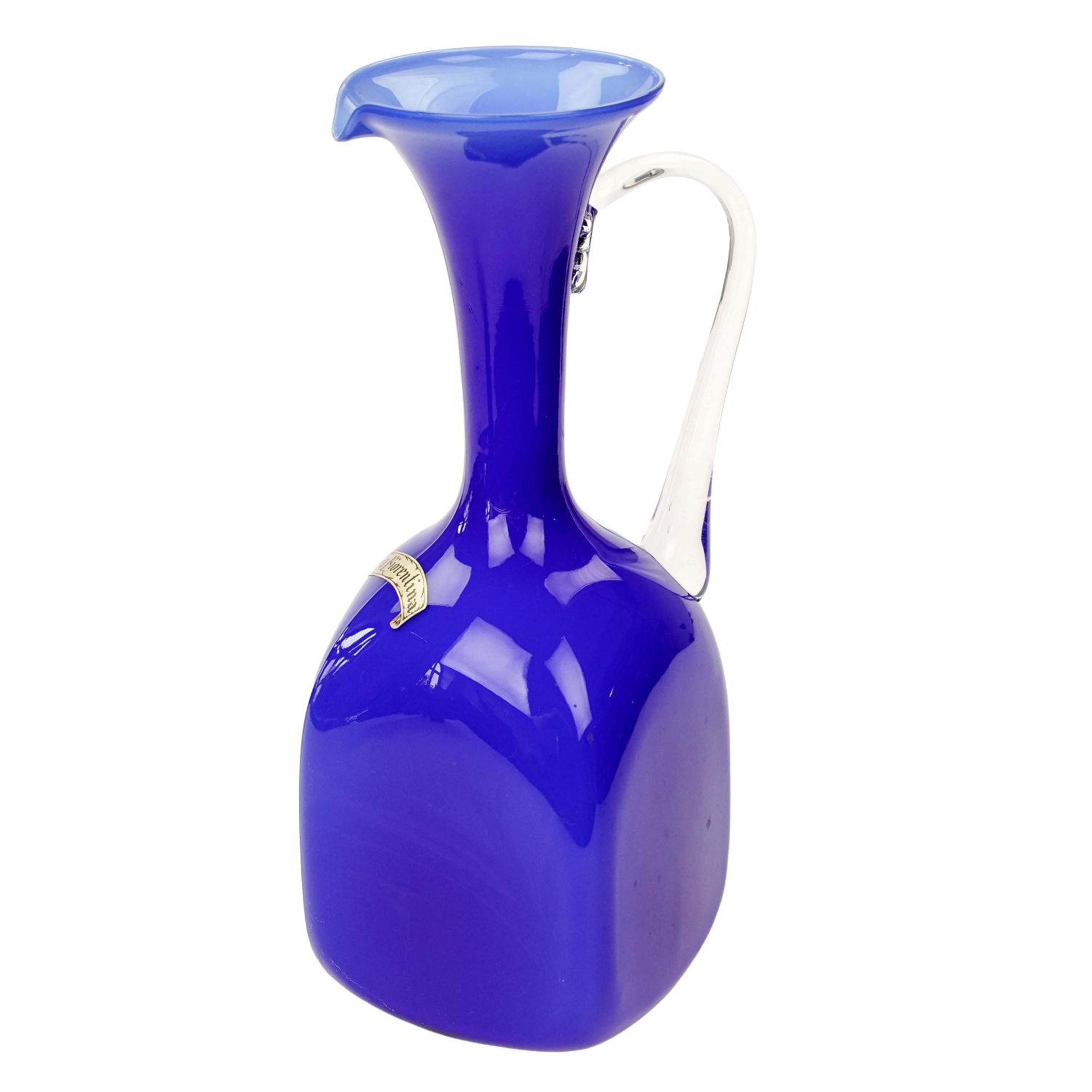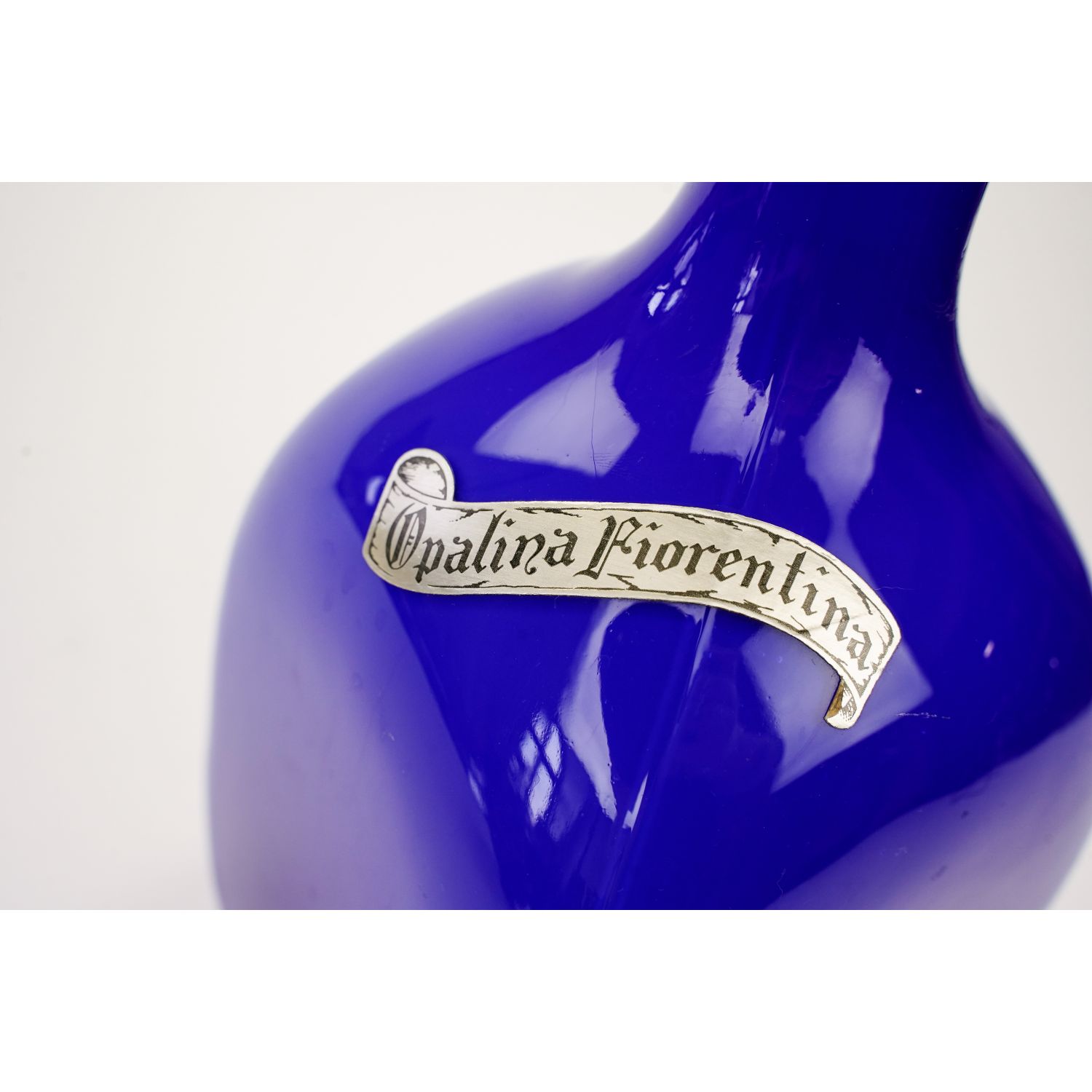 Pochodzi z regionu Empoli z V.B. Opaline Florence. Zachowała się naklejka z napisem "Opalina Fiorentina". Szkło o wyjątkowo atrakcyjnej formie, dwuwarstwowe; wewnątrz białe, na zewnątrz szafirowe/kobaltowe. Graniasty brzusiec. Szyjka długa, smukła i wąska z wyraźnie zaznaczonym wlewem.