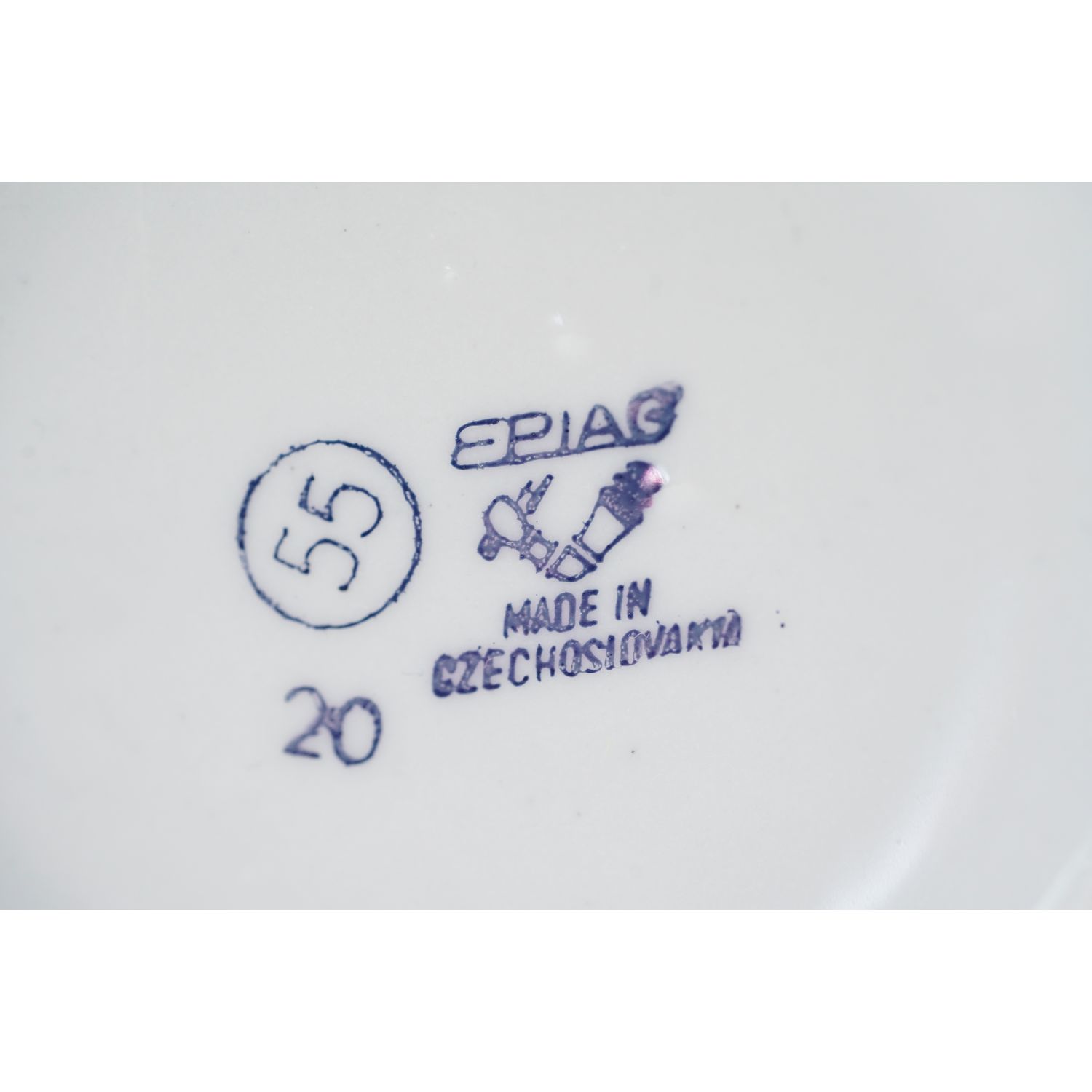 Pochodzi z Czech z miejscowości Loket (niem. Elbogen), z wytwórni EPIAG - Erste Porzellan-Industrie AG / Karlsbad. Sygnowane znakiem stosowanym po 1920 roku. Porcelana biała, solidna, o prostej formie. Z obu dekoracja przedstawiająca odpowiednio wiśnie, winogrona, jabłko i gruszka. U góry brązowy szlaczek.