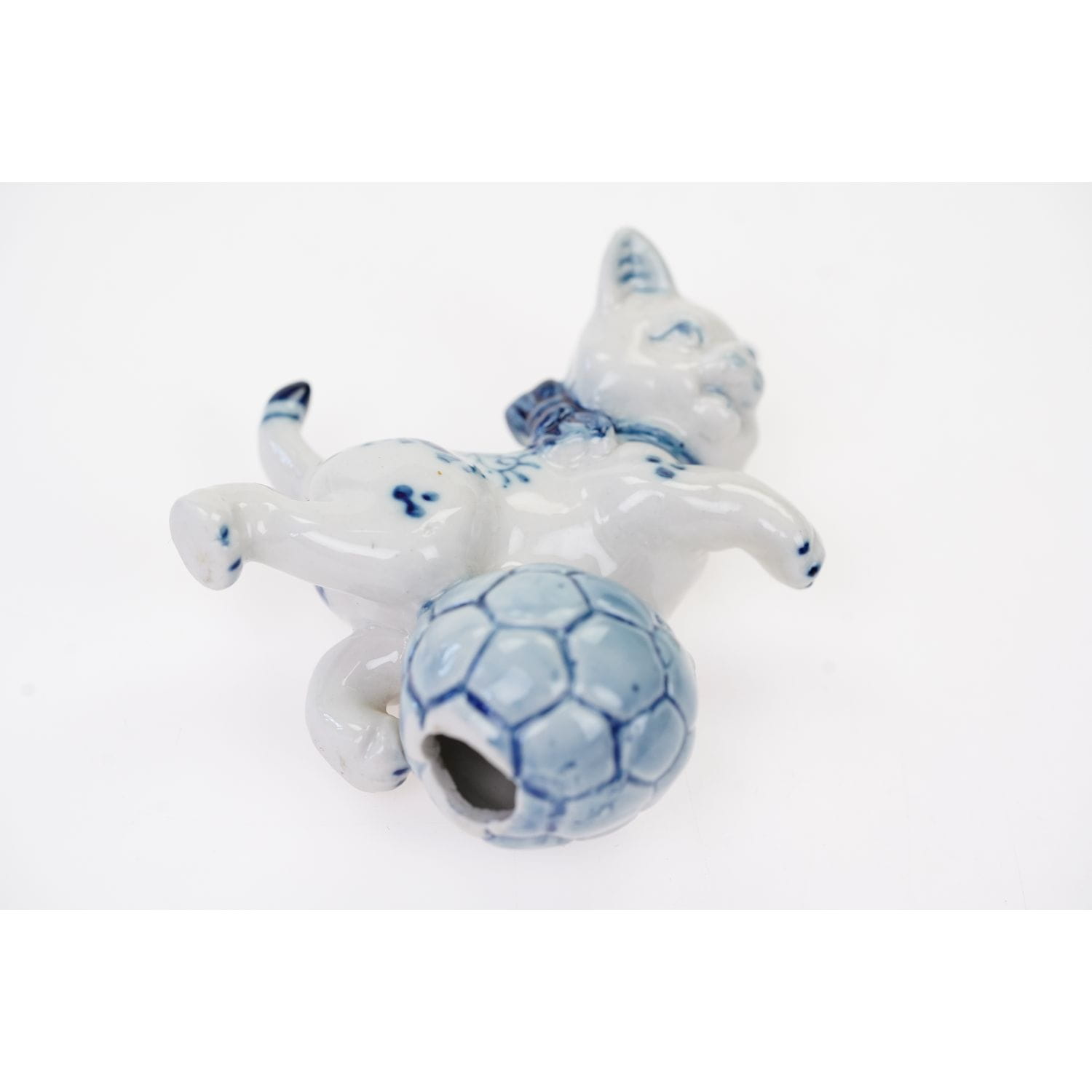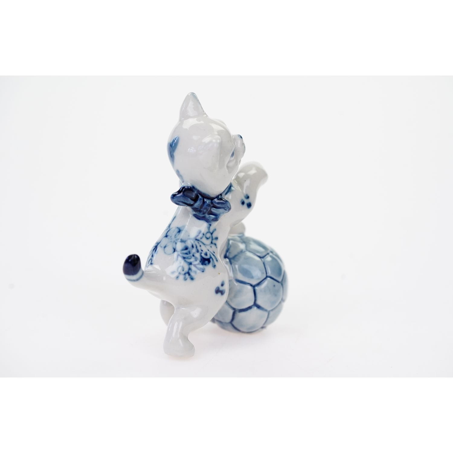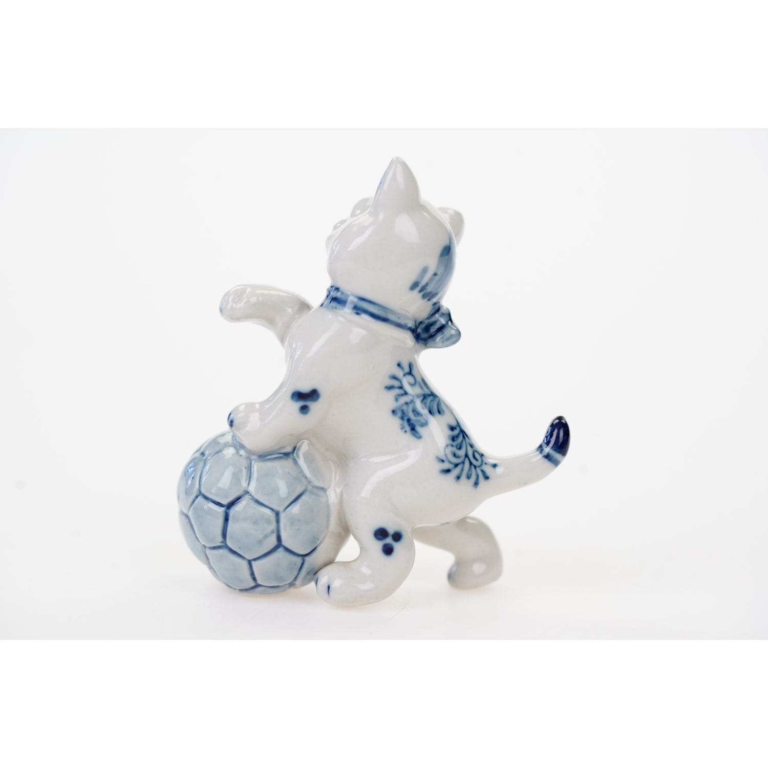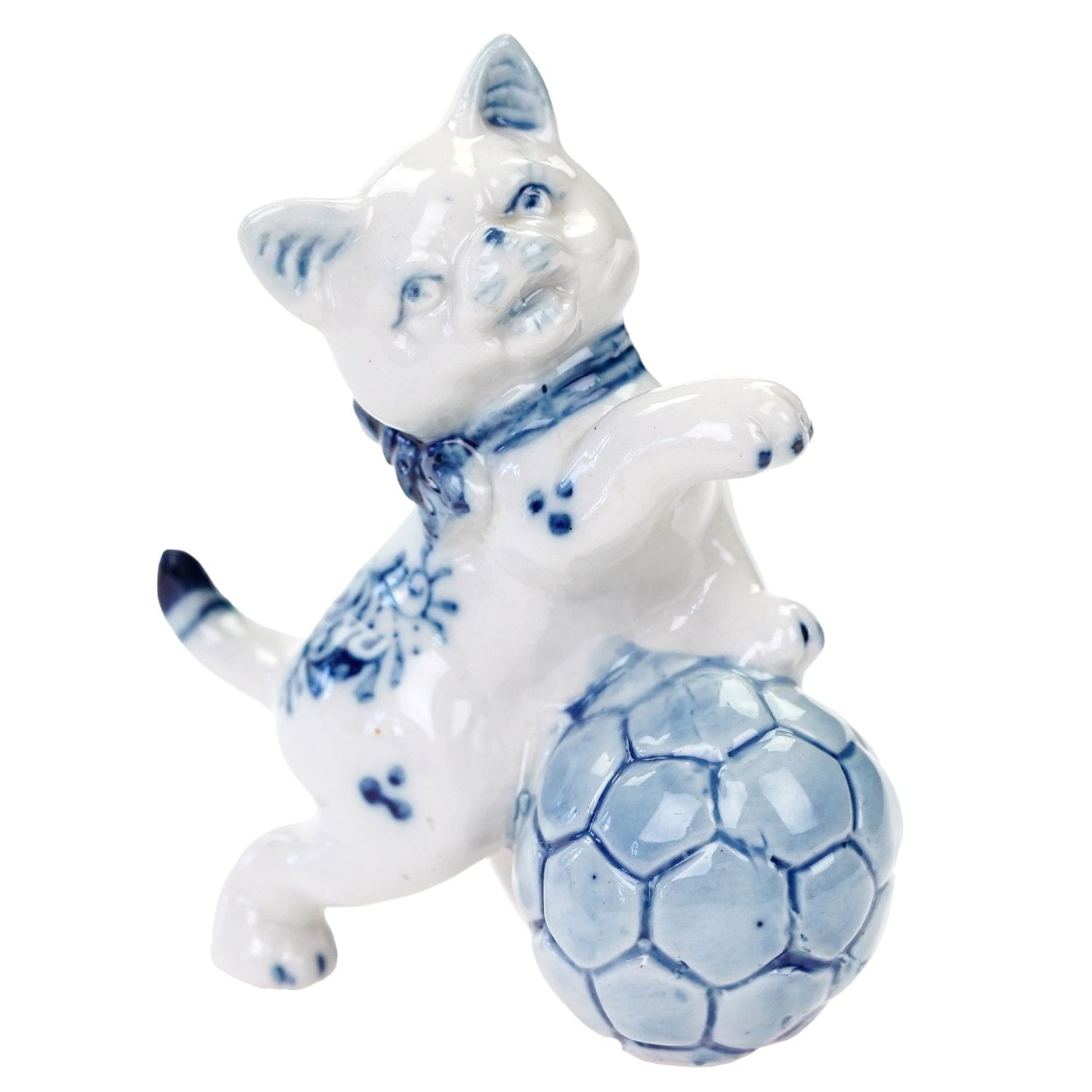 FIGURKA KOTKA KOBALTEM MALOWANA KOT Z PIŁKĄ