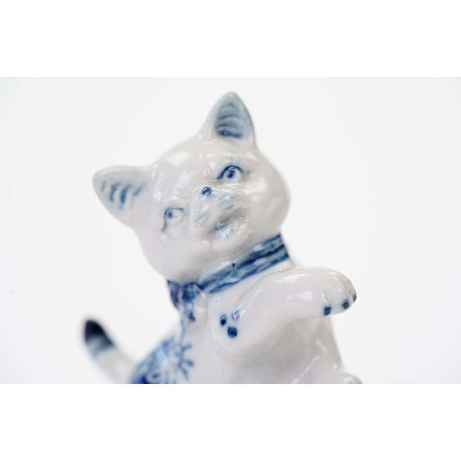 Sygnowany jak na zbliżeniu. Porcelana biała. Kotek ozdobiony ręcznie kobaltem: pyszczek i oczy. Na tułowiu ma kobaltowe kwiaty z obu stron.