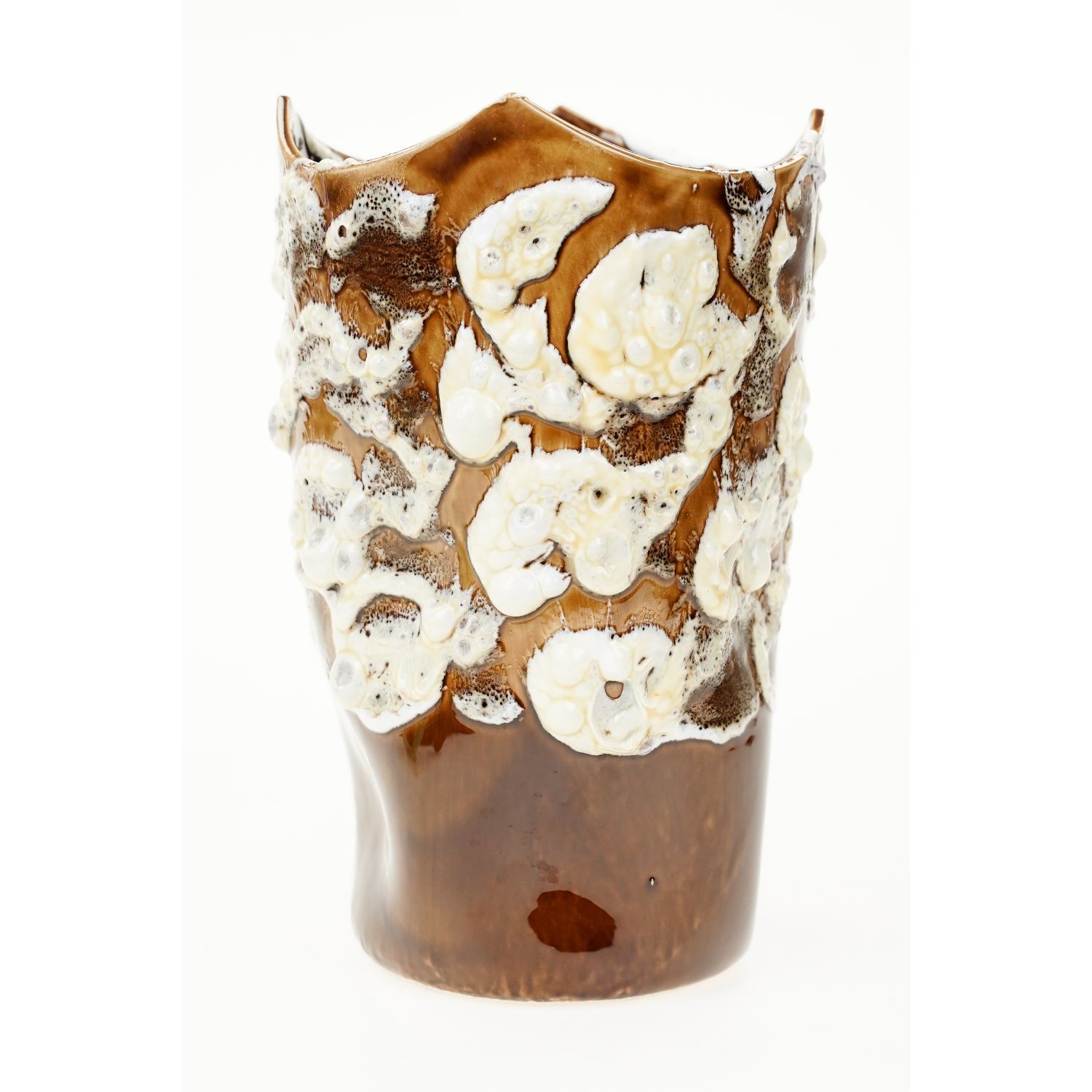 Ceramiczny wazon o nieregularnej krawędzi.