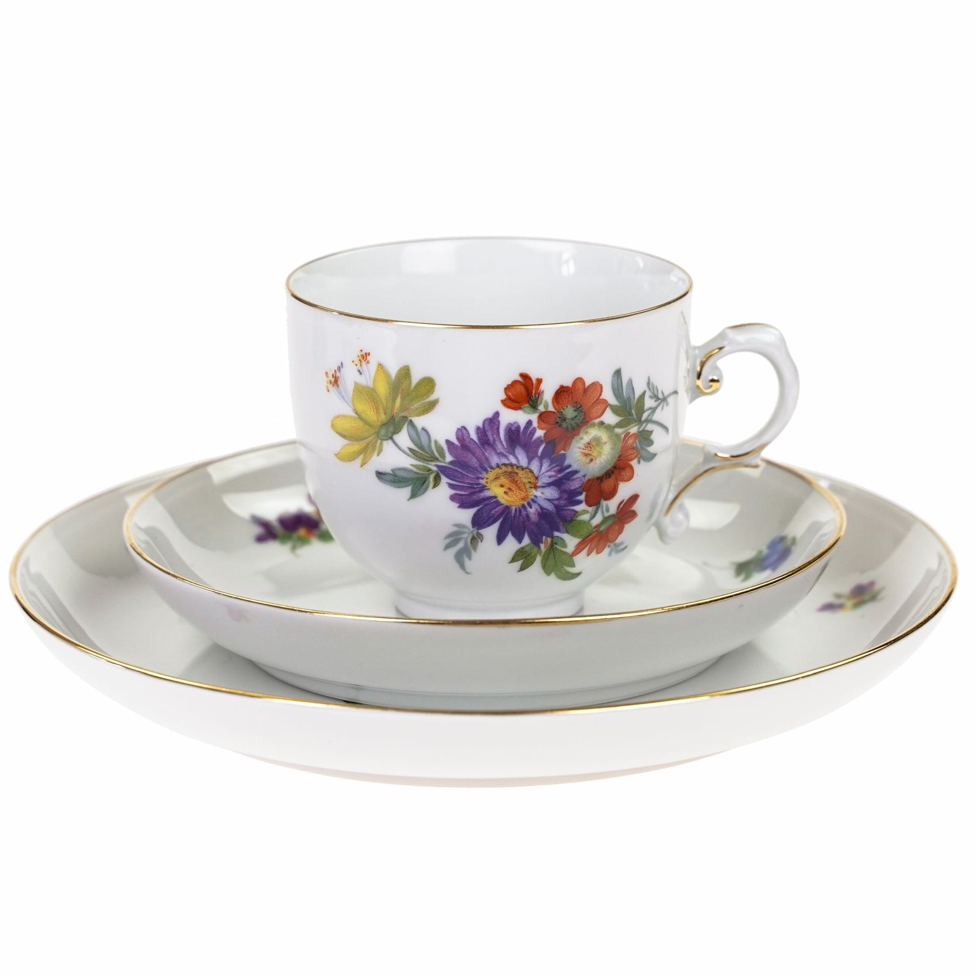 Pochodzi z wytwórni porcelany Fürstenberg z Brunszwiku. Zestaw inspirowany wzornictwem i malaturą z Miśni. Jest wykonany z najwyższej jakości, ekskluzywnej, grubo szkliwionej, lśniącej porcelany w kolorze białym. Ręcznie zdobiony kolorowymi bukietami różnorodnych kwiatów i gustowną, złotą tasiemką, dostosowaną do kształtu naczyń, a równocześnie go podkreślającą.