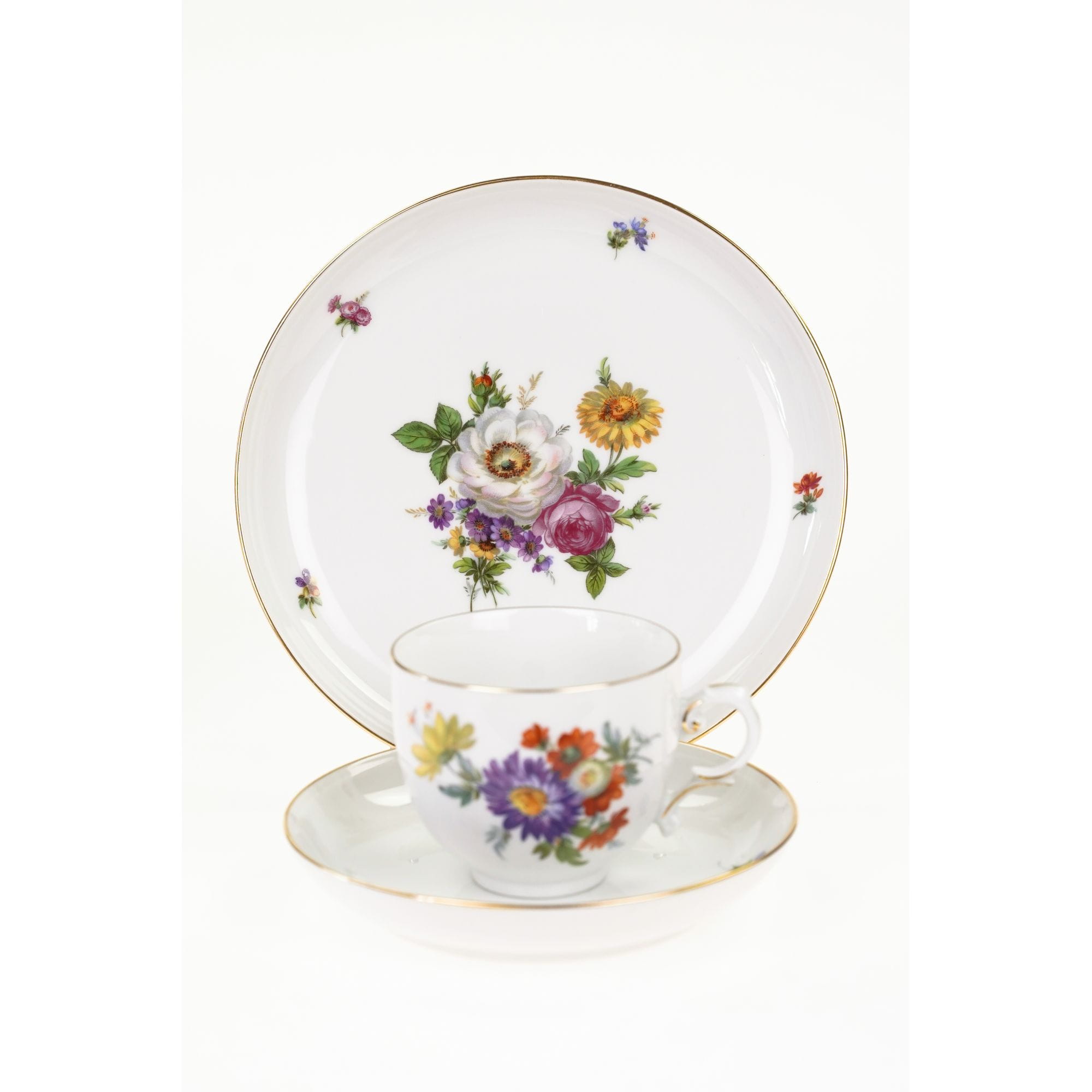 Pochodzi z wytwórni porcelany Fürstenberg z Brunszwiku. Zestaw inspirowany wzornictwem i malaturą z Miśni. Jest wykonany z najwyższej jakości, ekskluzywnej, grubo szkliwionej, lśniącej porcelany w kolorze białym. Ręcznie zdobiony kolorowymi bukietami różnorodnych kwiatów i gustowną, złotą tasiemką, dostosowaną do kształtu naczyń, a równocześnie go podkreślającą.