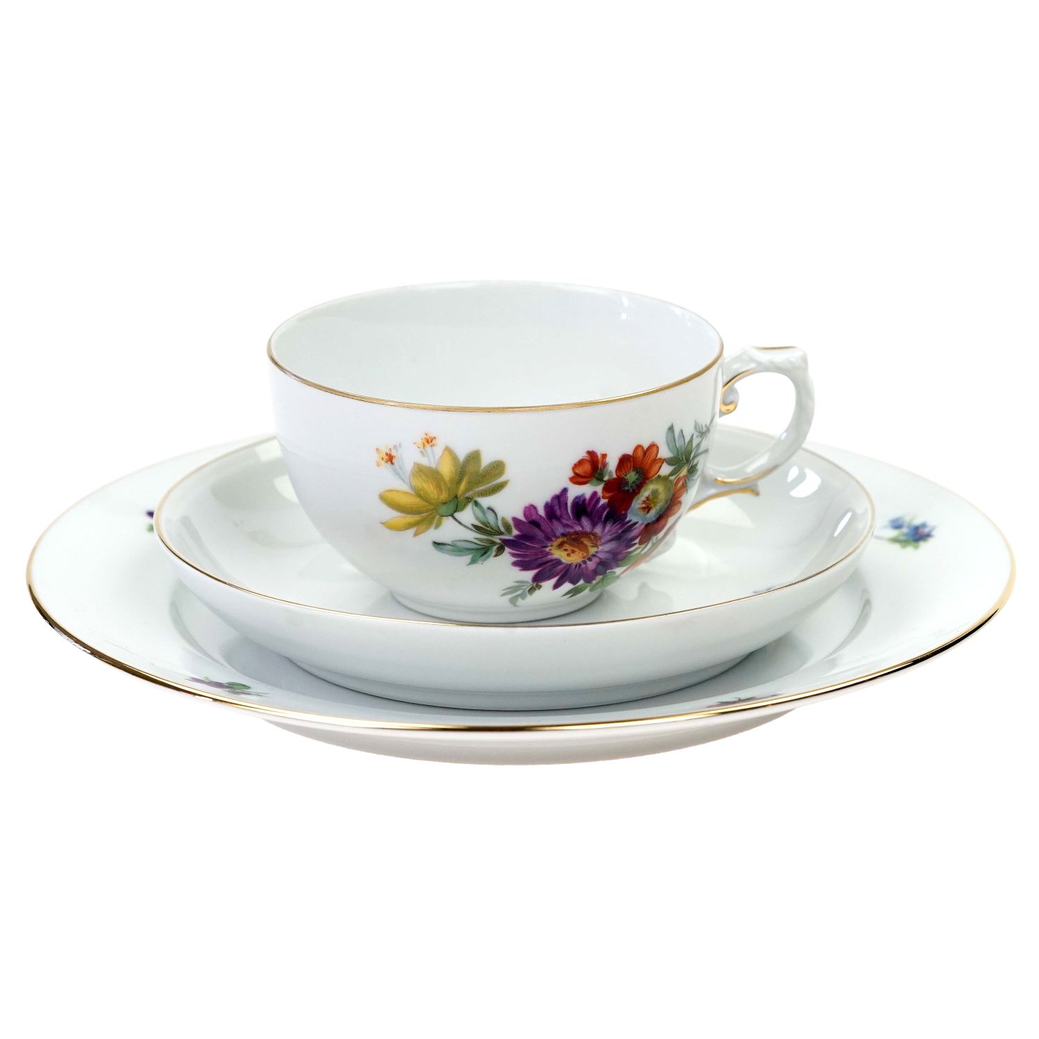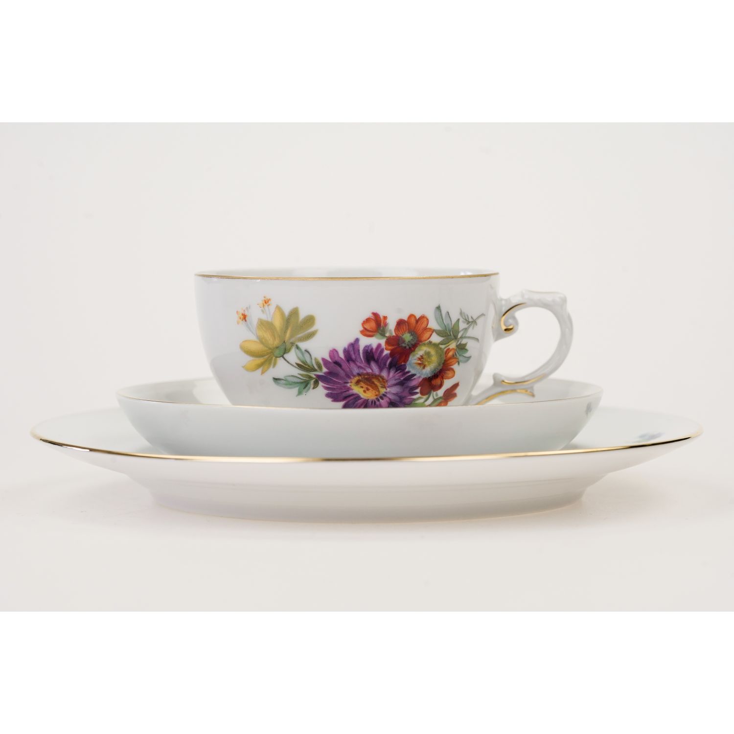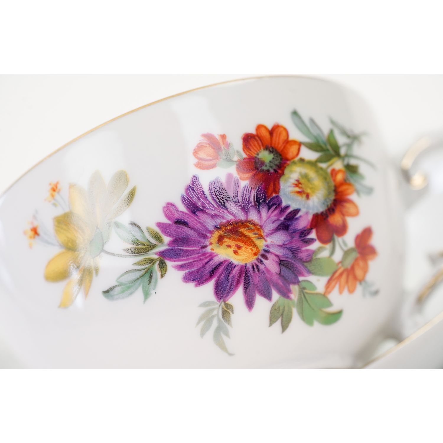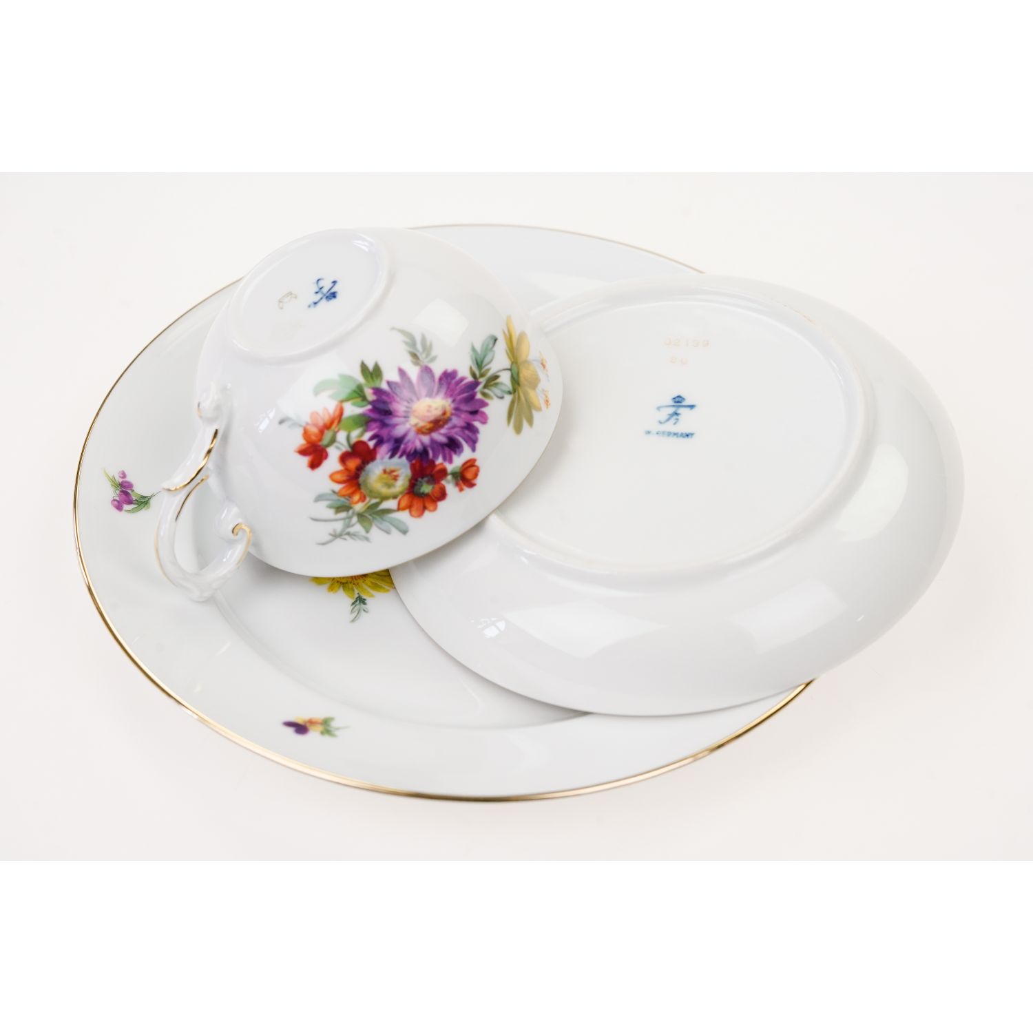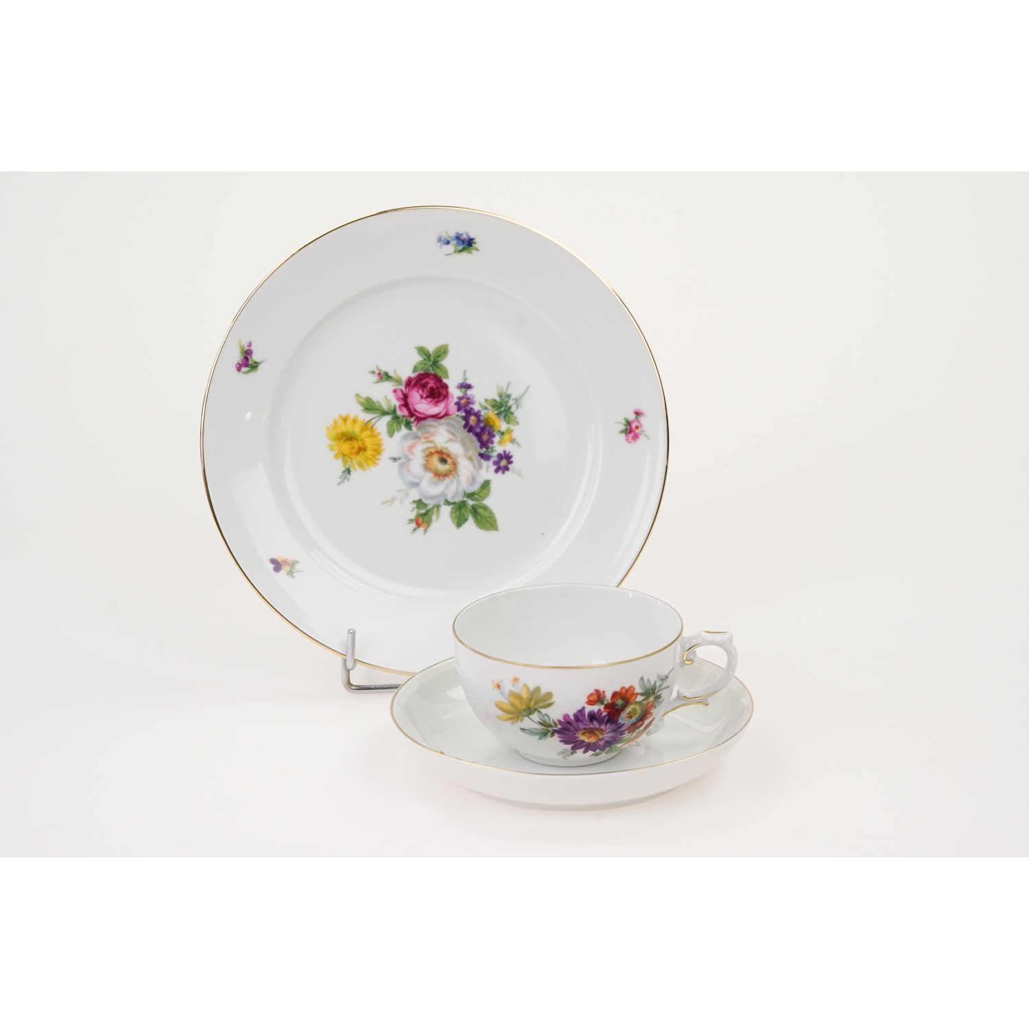Pochodzi z wytwórni porcelany Fürstenberg z Brunszwiku. Zestaw inspirowany wzornictwem i malaturą z Miśni. Jest wykonany z najwyższej jakości, ekskluzywnej, grubo szkliwionej, lśniącej porcelany w kolorze białym. Ręcznie zdobiony kolorowymi bukietami różnorodnych kwiatów i gustowną, złotą tasiemką, dostosowaną do kształtu naczyń, a równocześnie go podkreślającą. Uszko podwójnie zakrzywione. Fason zwany jest często Alt Fürstenberg (według wytwórni powstał w 1750 roku i jest nadal produkowany), w oryginalnym stylu, który można by nazwać rokoko.